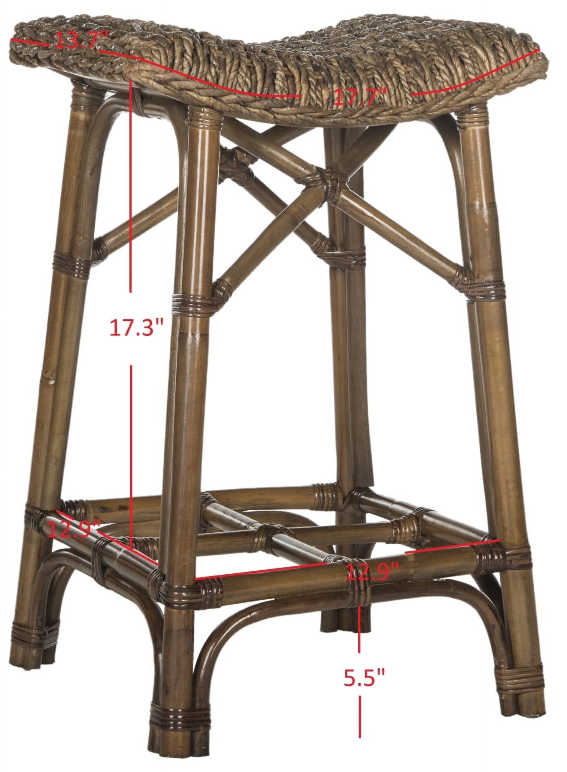 SAFAVIEH Ramiro Wicker Bar Stool Brown The perfect marriage of form and function, this beautifully woven bar stool of natural brown banana and abaca adds casual charm to a kitchen island. Crafted for comfort, it features wrapped legs and footrest, and a saddle seat that cradles the body. For over 100 years, SAFAVIEH has set the standard for finely crafted rugs and home furnishings. From coveted fresh and trendy designs to timeless heirloom-quality pieces, expressing your unique personal style has never been easier. Begin your rug, furniture, lighting, outdoor, and home decor search and discover over 100,000 SAFAVIEH products today.
