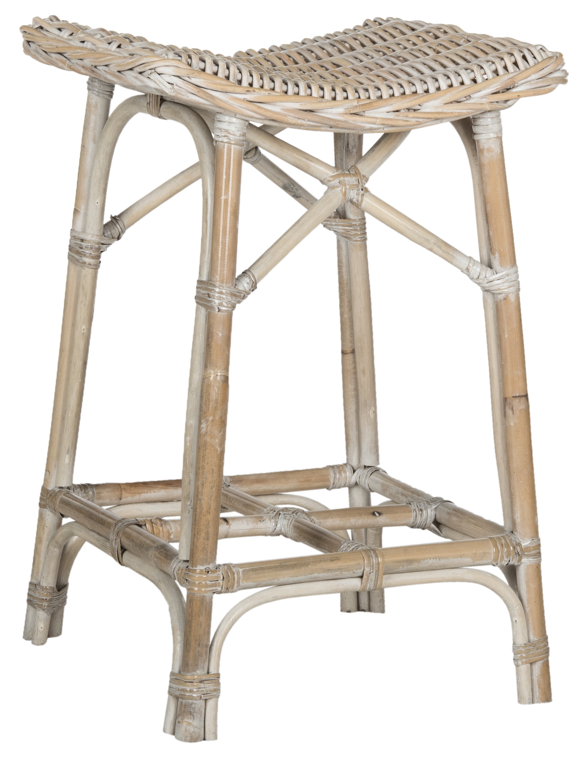 SAFAVIEH Rayna Wicker Bar Stool White Washed Intricately woven natural washed kubu rattan makes a stylish bar stool for a kitchen island or bar. Designed for comfort, the curved saddle seat cradles the body, while classic wrapped legs and footrest offer the perfect marriage of form and function. For over 100 years, SAFAVIEH has set the standard for finely crafted rugs and home furnishings. From coveted fresh and trendy designs to timeless heirloom-quality pieces, expressing your unique personal style has never been easier. Begin your rug, furniture, lighting, outdoor, and home decor search and discover over 100,000 SAFAVIEH products today.