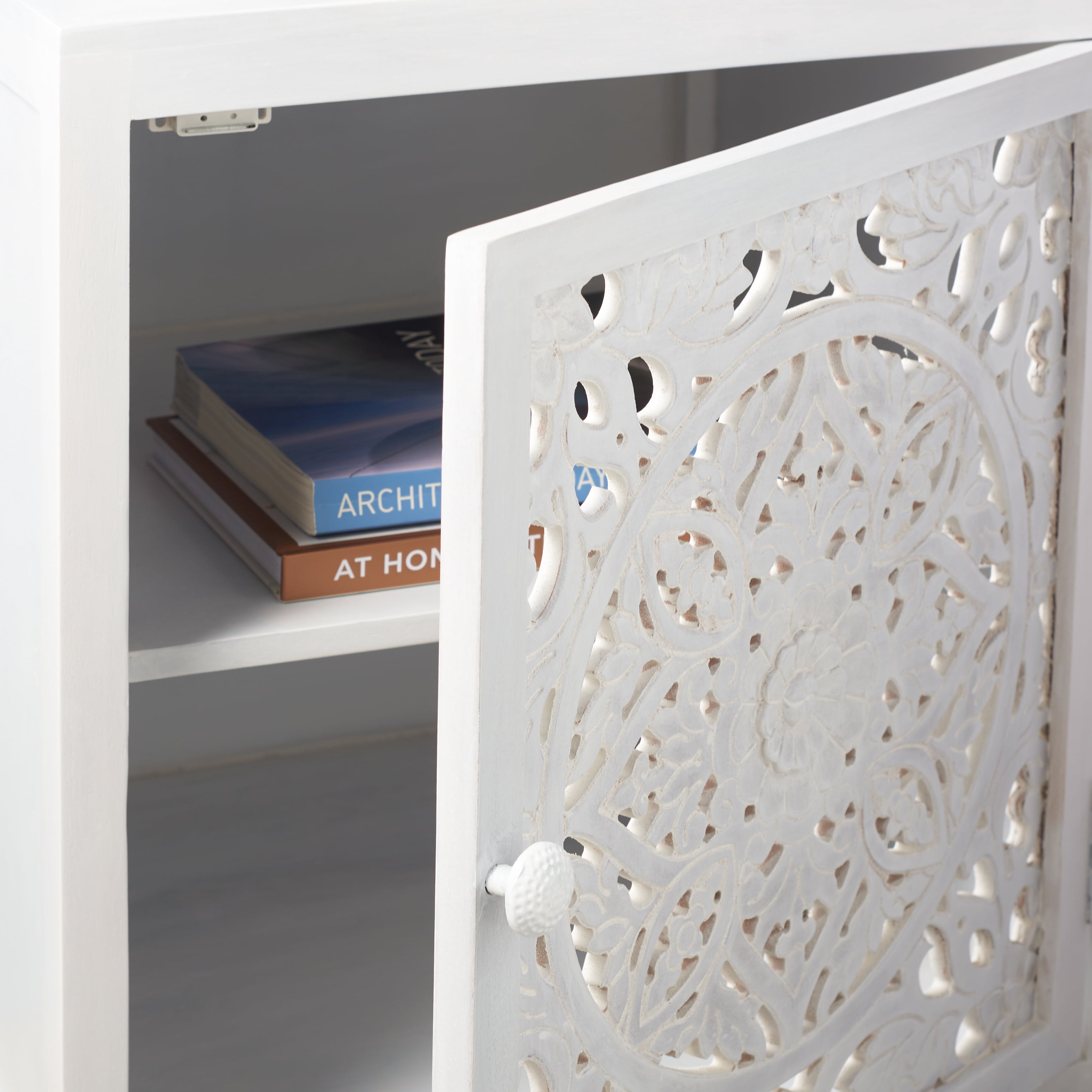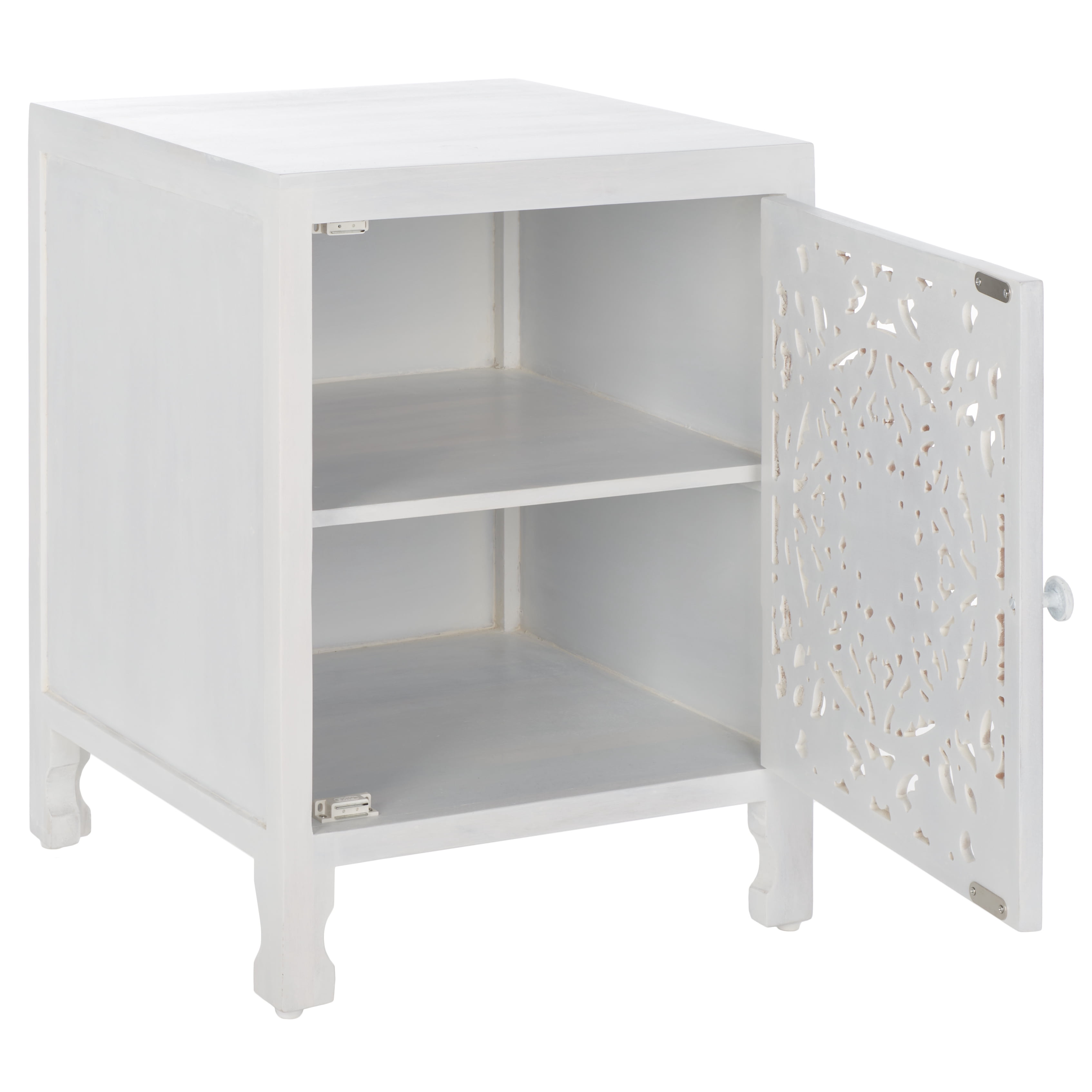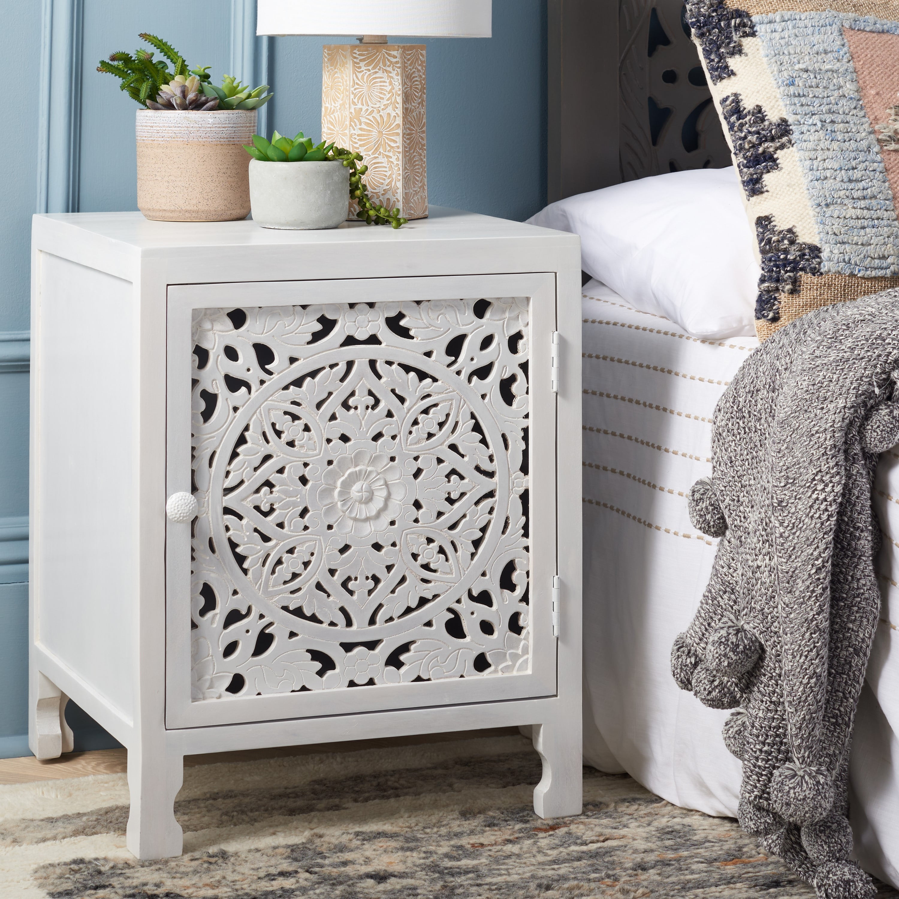 SAFAVIEH Reimu Bohemian 2 Shelf 1 Door Nightstand, White Wash (18 in. W x 18 in. D x 24 in. H)