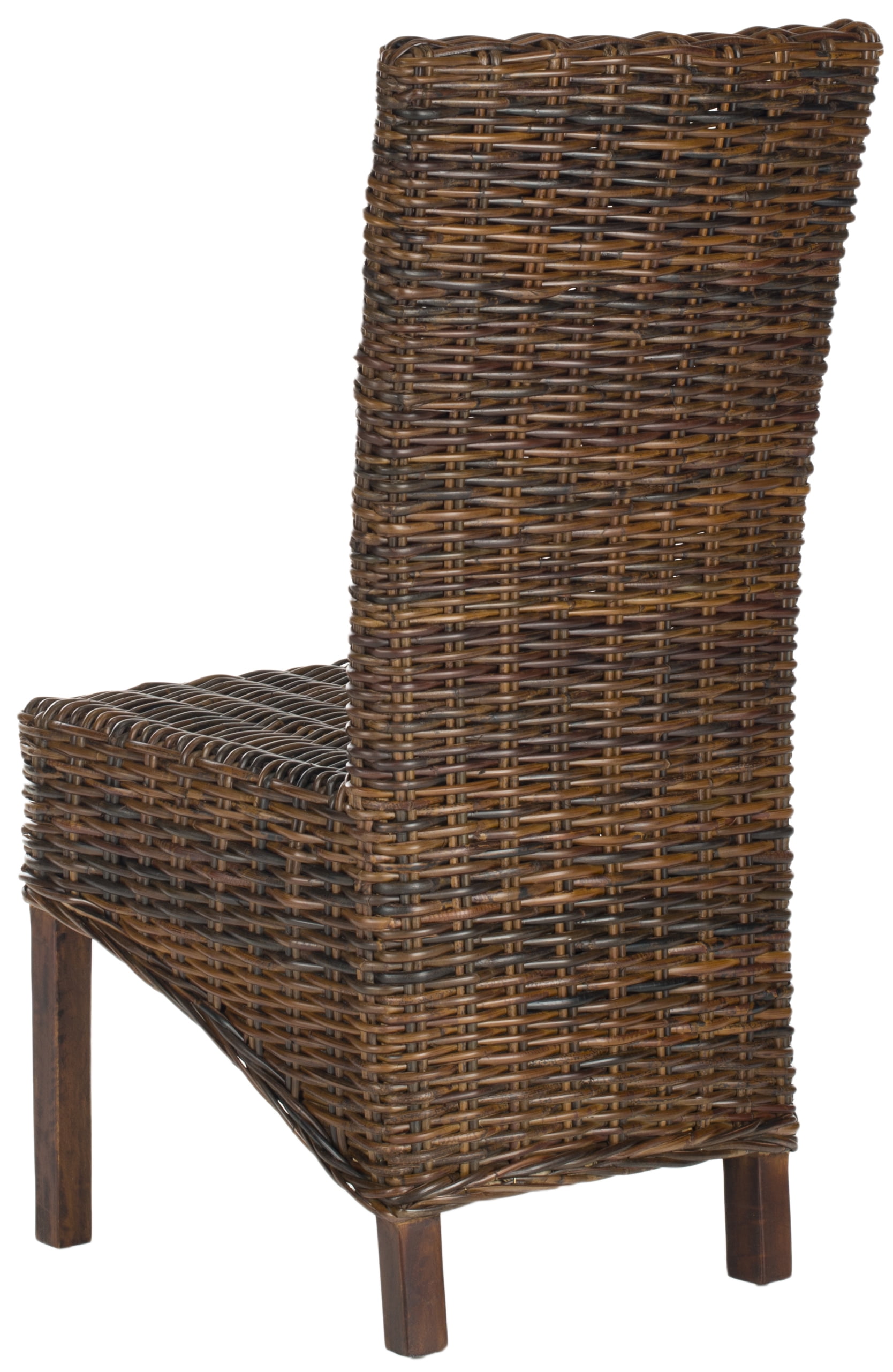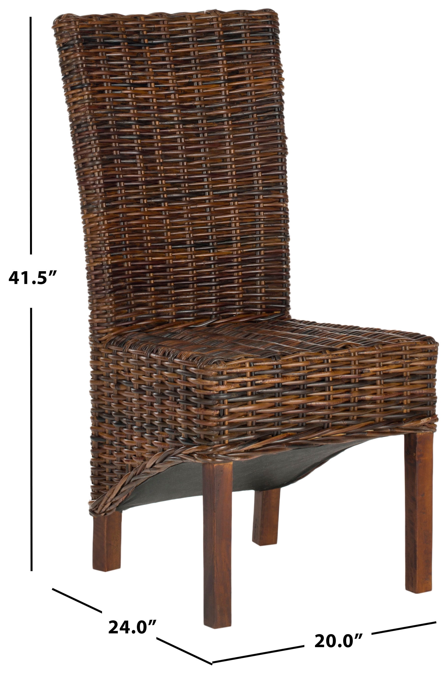 Shop Safavieh at . Save Money. Live Better. SAFAVIEH Ridge Bohemian Rattan Solid Dining Parsons Chair, Croco (Set of 2) A familiar, elegant dining room form gets updated in the Ridge side chair, crafted of rattan and sustainable mango wood and shown in tropical dark brown finish. Organic rattan wraps around a tall, gently tapered backrest and seat; shorter rear legs and exposed underbelly offer yet another contemporary twist.