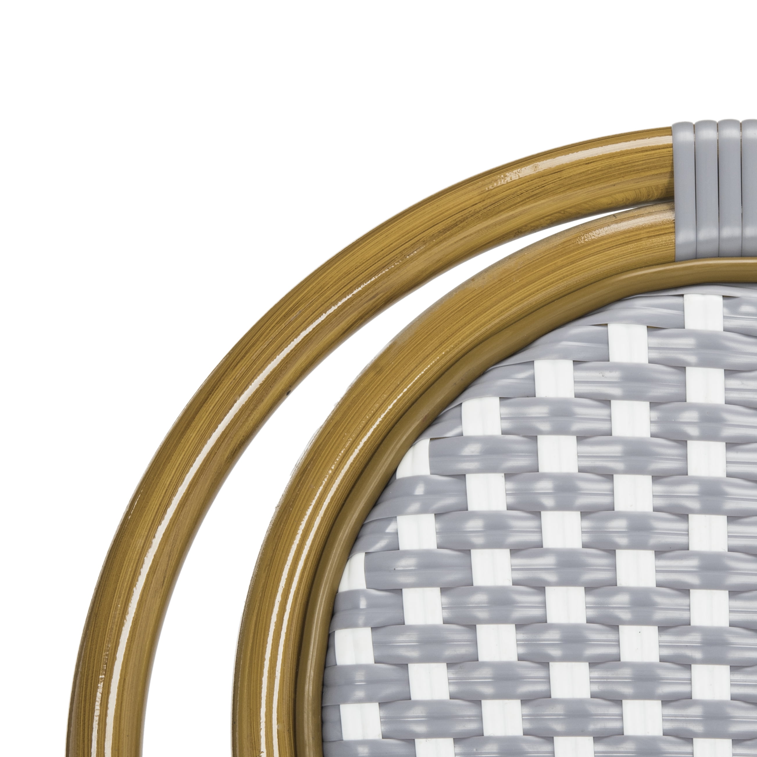 Contemporary design adds a chic look to your home Wicker and aluminium frame for longevity No Assembly Required Color: Grey/White Frame: Light Brown Item Dimensions: 20 in. W x 23.5 in. D x 35 in. H Seat Dimensions: 16.5 in. W x 16.5 in. D x 16.9 in. H Item Weight: 8.95 lbs Backrest: 19.7 in. Armrest: 25.2 in. Weight Capacity: 275 lbs. May be stacked for storage space saving Sold in a set of 2 Accessories in Life Style photo not included Please note: The images and product dimensions on our website are as accurate as possible. Due to differences in computer monitors, some item’s color may vary slightly. Store outdoor furniture indoors or cover well when not in use. Remove wooden furniture from standing water. Dust regularly with small brush or vacuum. Spills should be taken care of immediately before they harden or stain with a slightly dampened sponge.