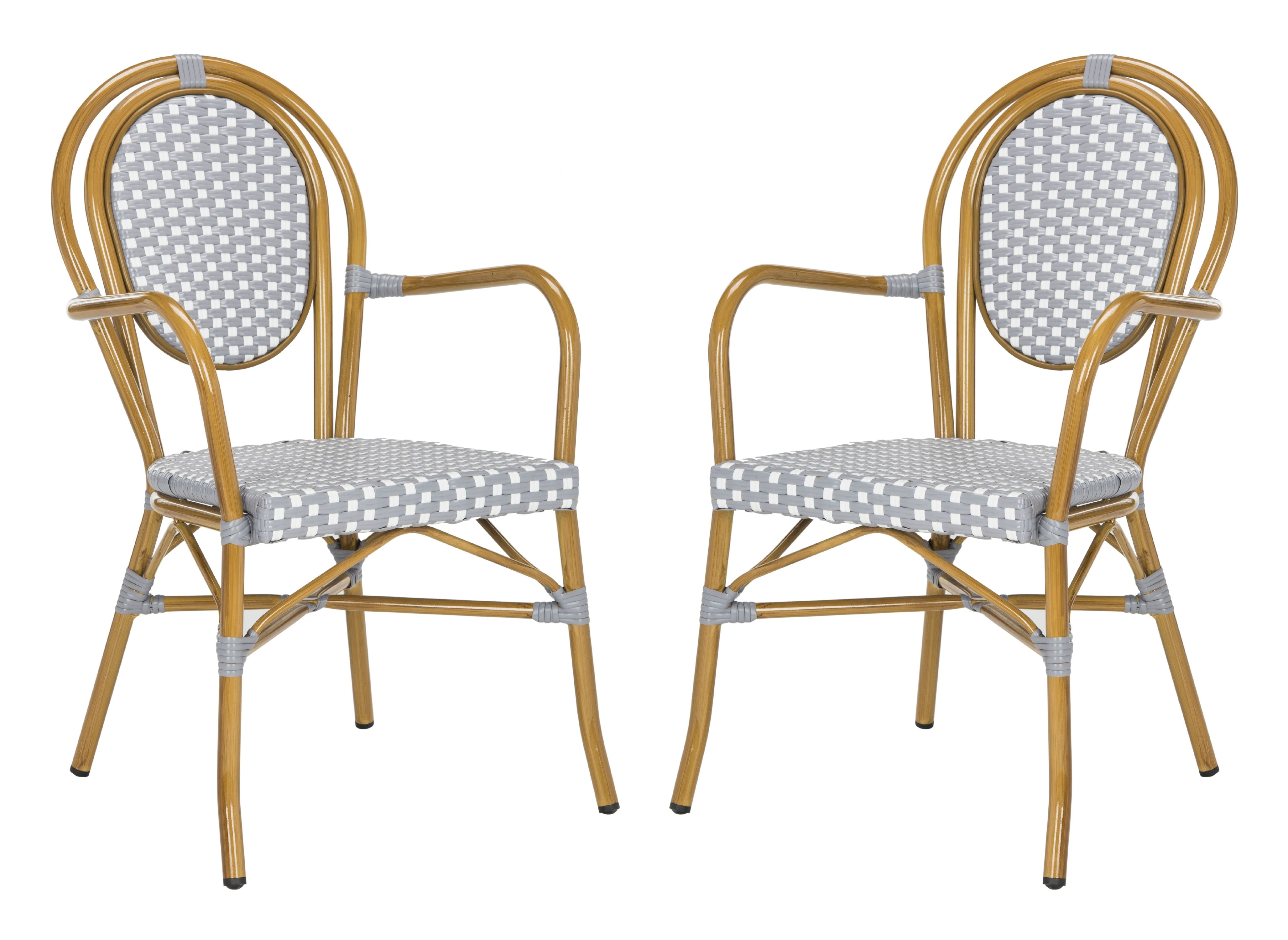 Safavieh Rosen Outdoor Patio Stacking Arm Chair, Set of 2 – Grey/White