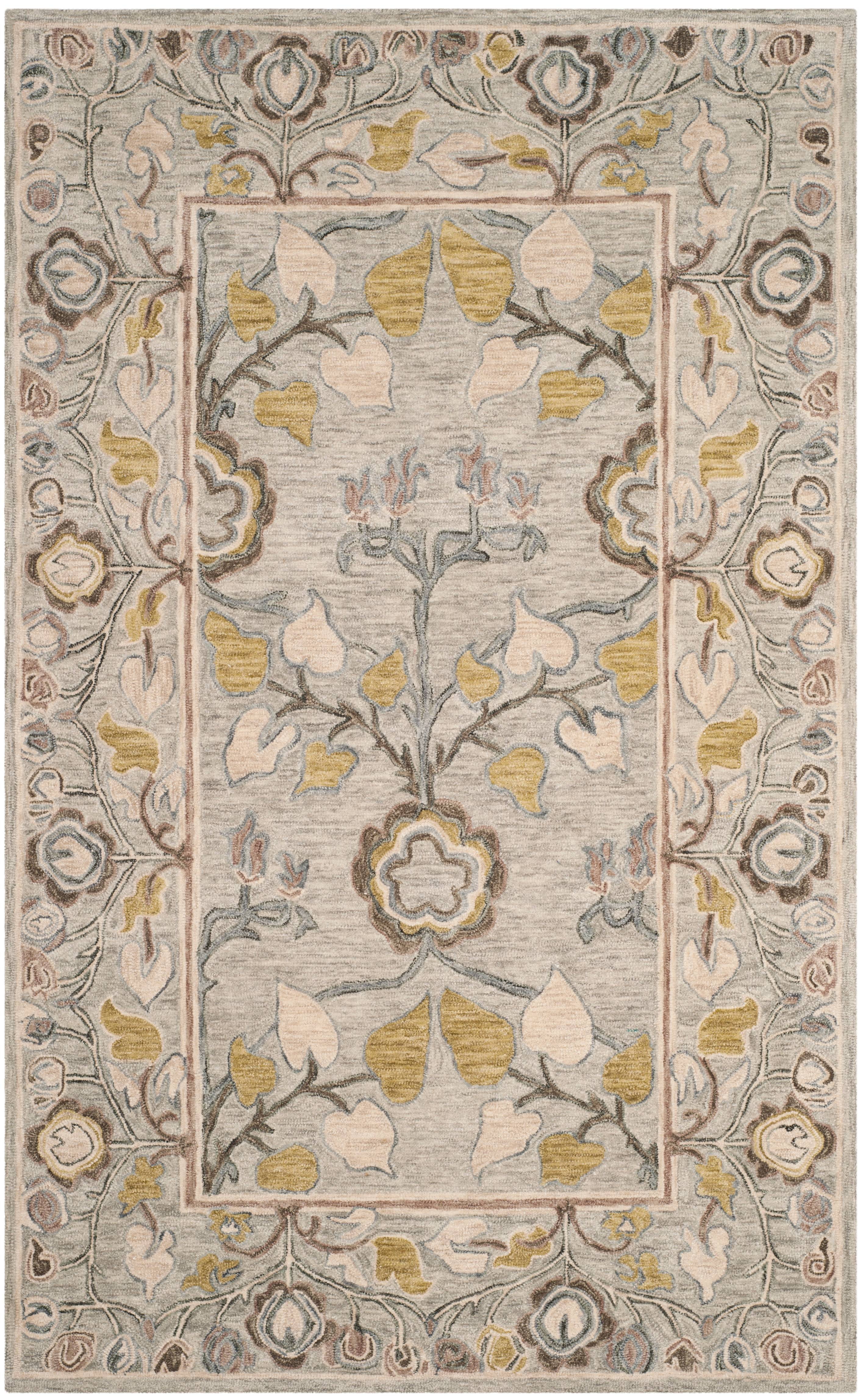 SAFAVIEH Roslyn Lennart Traditional Floral Wool Area Rug, Light Grey/Multi, 5′ x 8′