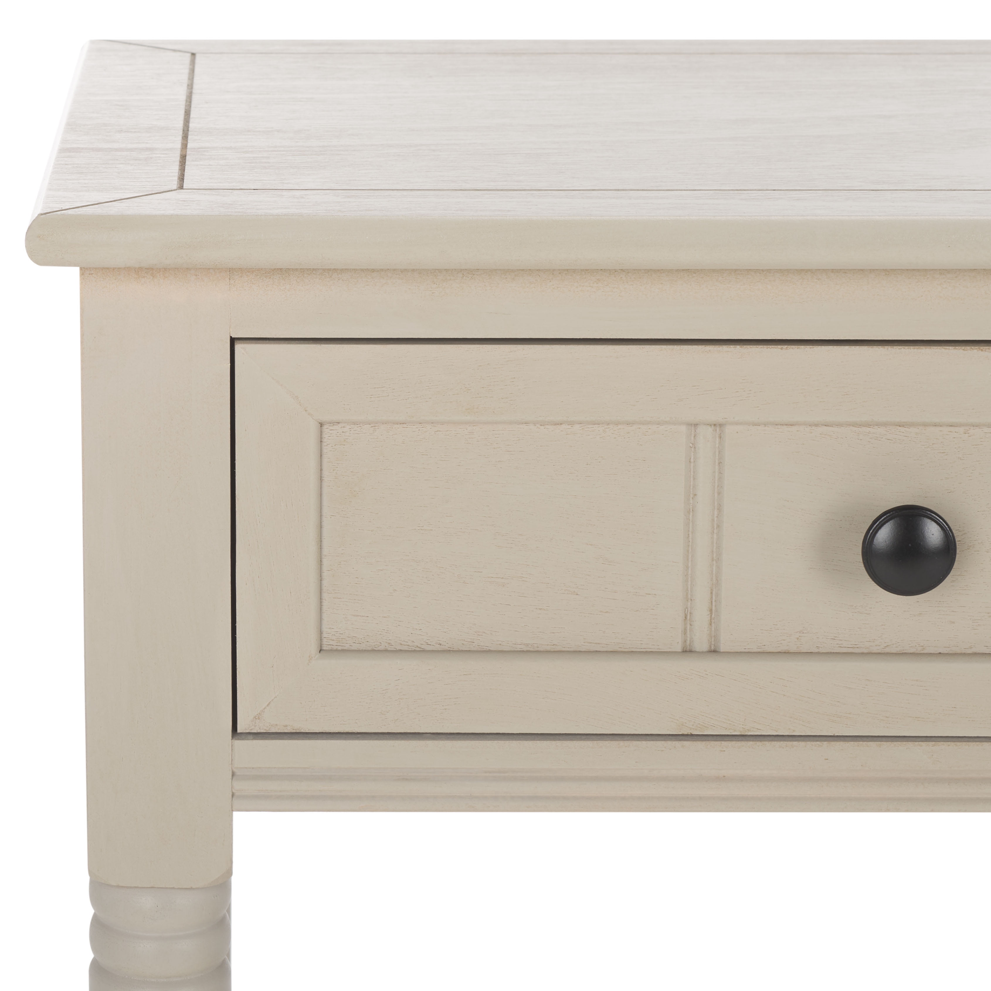 Contemporary design adds a chic look to your home Durable pine wood frame for long lasting longevity Minor assembly needed Color: Vintage Grey Item Weight: 26.5 lbs. Weight Capacity: 60 lbs. Assembled Dimensions: 29.5 in. H x 35.8 in. W x 13.8 in. D Drawer Dimensions: 15.2 in. X 11 in. X 4.7 in. Features 2 drawers Wood is a natural material with variations of color shade, configuration, streaks, and grain structure. Each individual piece of Safavieh furniture has characteristic markings that will differ from photo and showroom samples. Regular attention and maintenance of fine furniture can ensure its beauty for years to come. Always use felt pads under all articles to prevent discoloration or softening of the lacquer. Plastic and rubber bases on items can discolor wood. Accessories in life style photo(s) not included Please note: The images and product dimensions on our website are as accurate as possible. Due to differences in computer monitors, some furniture colors may vary slightly. Lengths and widths may vary from the published dimensions. We do our best to provide you with an exact measurement, but please be advised that some variation exists. Dust regularly with a soft, dry cloth. Never use oiled or treated cloths on lacquered finishes. Some finishes can be wiped with a damp (not wet) cloth, followed at once by rubbing with a dry cloth to remove fingerprints and smudges. For persistent spots, gently clean with a soft cloth and a solution of water and mild soap, make sure to wipe dry. Use adhesive felt pads, coasters and placemats to protect your furniture.