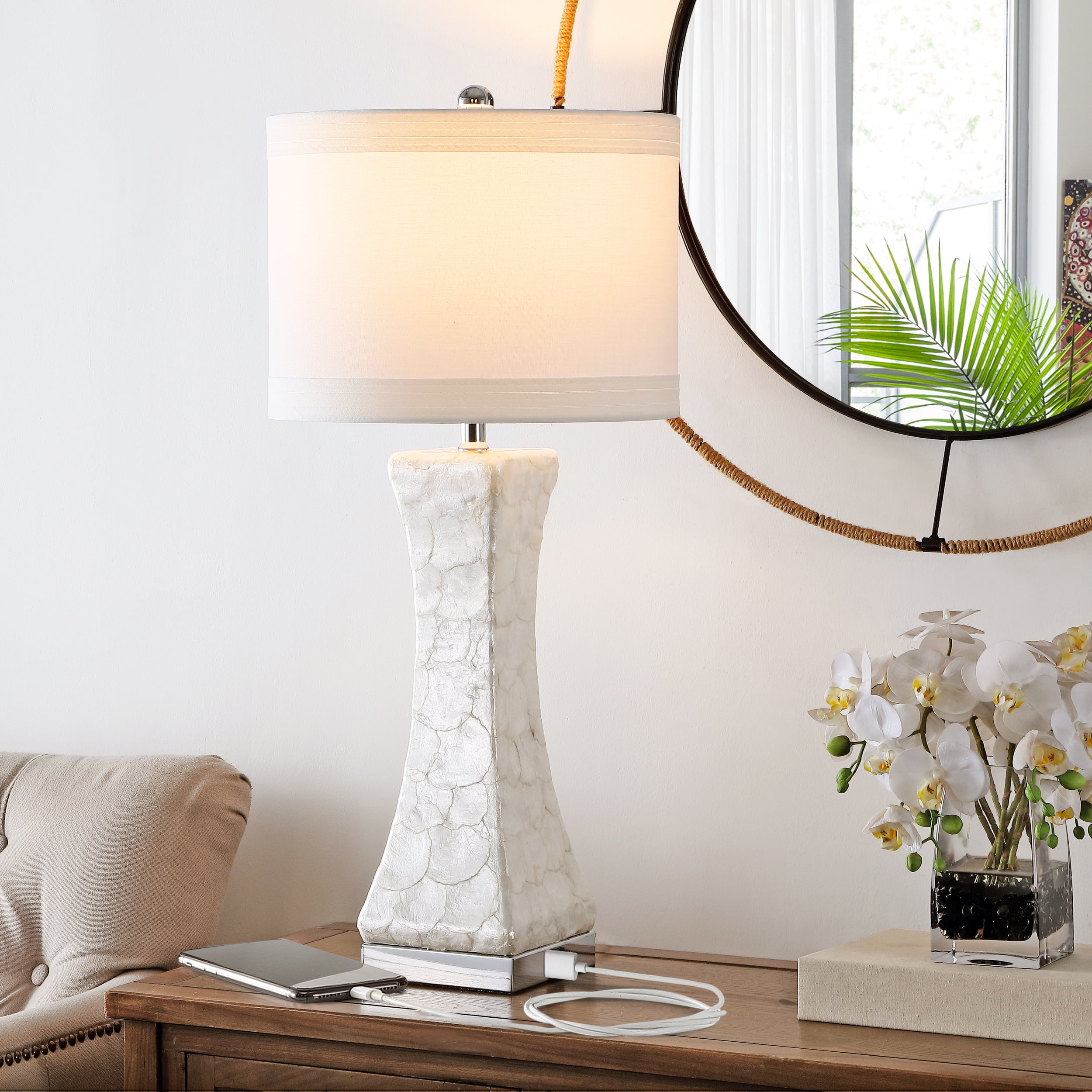 SAFAVIEH Shelley 30.5 in H Coastal Table Lamps with USB Port, White, Set of 2