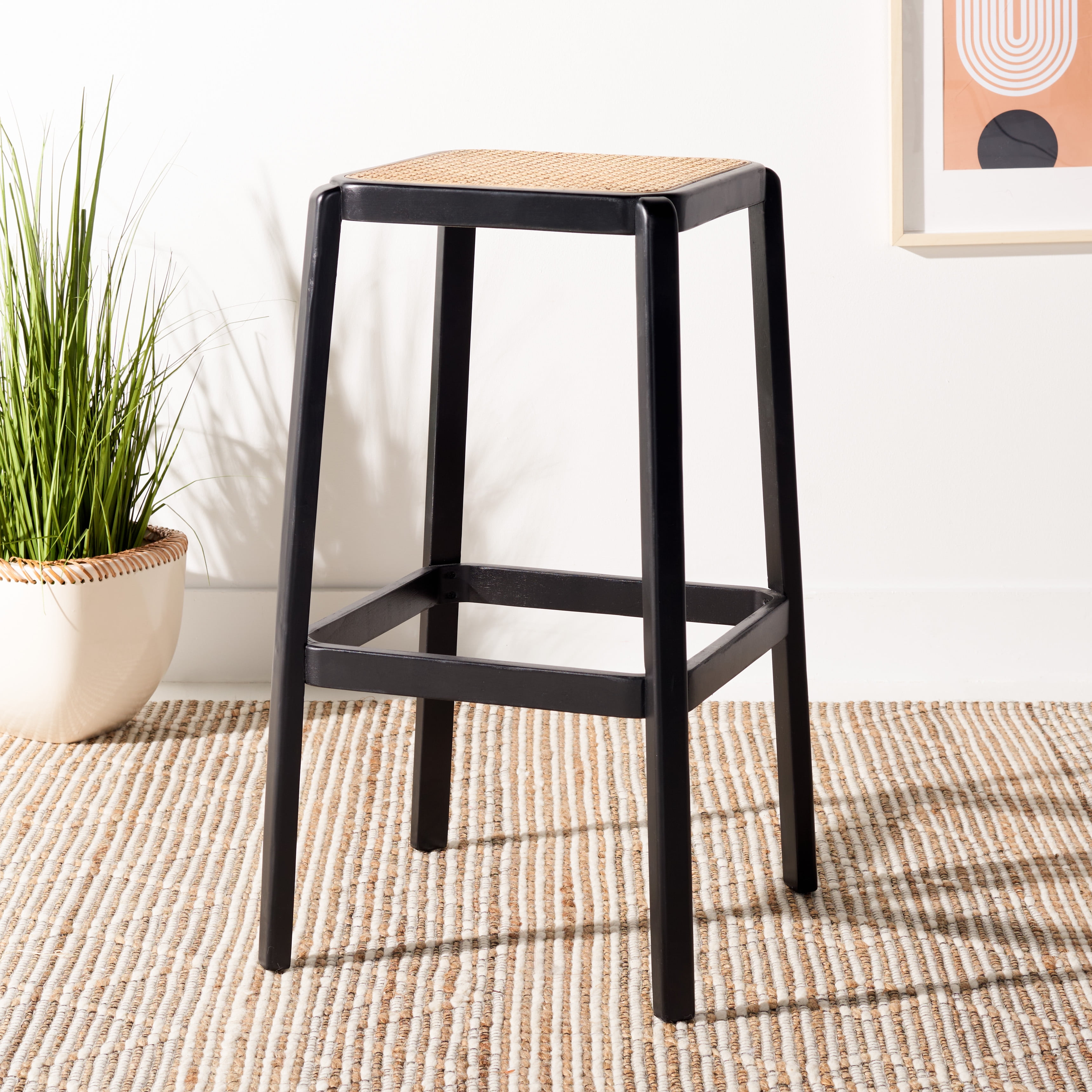 SAFAVIEH Silus Square Backless Bar Stool, Black/Natural