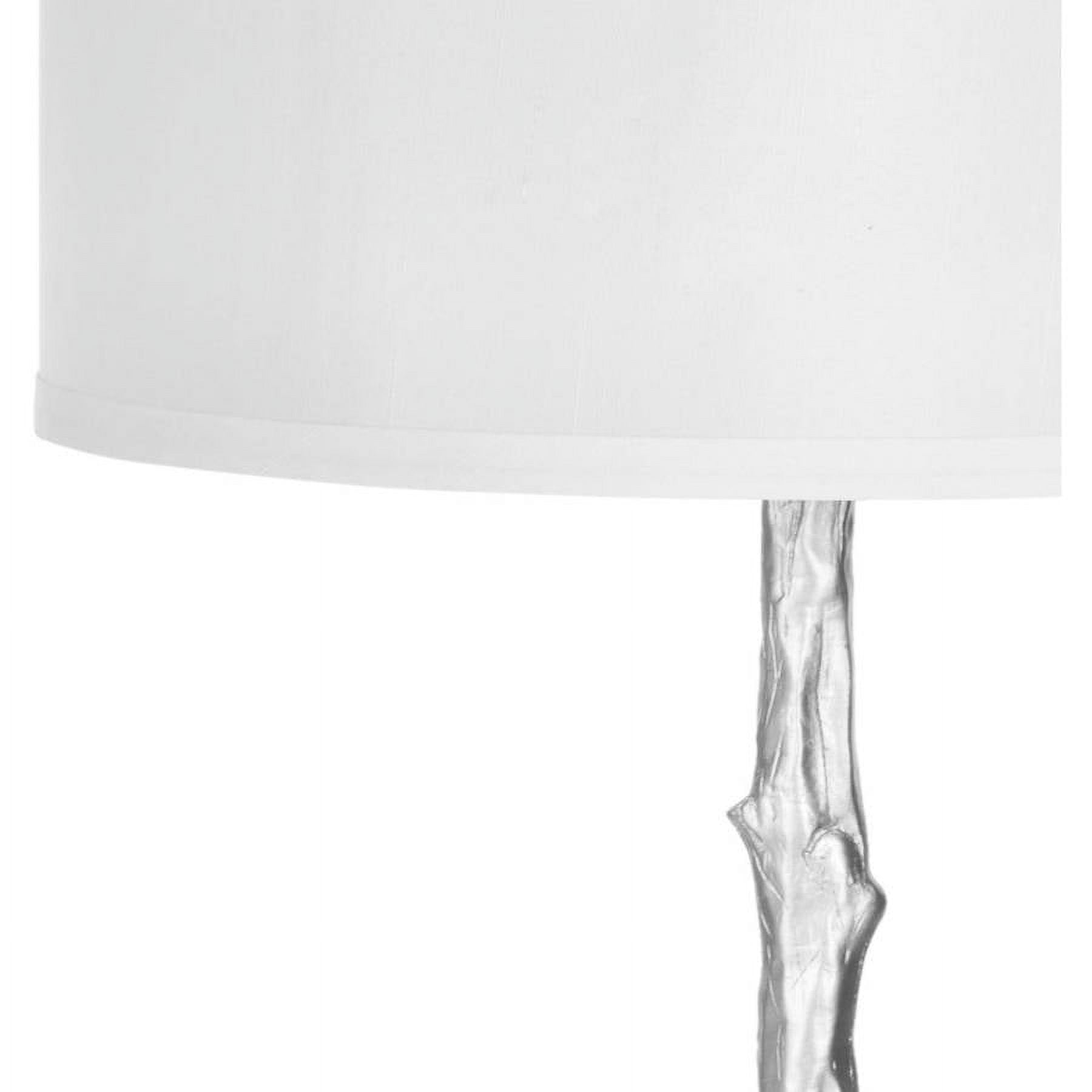 Contemporary design adds a chic look to your home Durable frame for long lasting longevity Easy to clean and maintain Minor assembly needed Color: Silver Shade Color: White Item Dimensions: 15 in. W x 15 in. D x 57 in. H Crafted with Resin Shade Material: 70% Polyester; 30% Cotton Shade Height: 10 in. H Shade Bottom Dimensions: 15 in. L x 15 in. W Shade Top Dimensions: 15 in. W x 15 in. L Traditional Harp Style Harp Color: Silver Harp Height: 7.5 in. H Cord Color: Light Grey Cord Length: 72 in. Lamp Body Dimensions: 13.5 in. W x 13.5 in. D x 47 in. H Pendant Dimension: 72 in. Lamp Certification: UL Light Bulb Base Type: E26 Switch Mechanism: Rotary Switch Type of Bulb Included: CFL Max Wattage: 13W Lumen: 830 Quantity of Bulbs: 1 Accessories in life style photo(s) not included Please note: The images and product dimensions on our website are as accurate as possible. Due to differences in computer monitors, some item’s color may vary slightly. Before cleaning any lamp shade or fixture, disconnect the power source. Wipe with a soft, dry cloth. Avoid the use of chemicals and household cleaners as they may damage the finish.