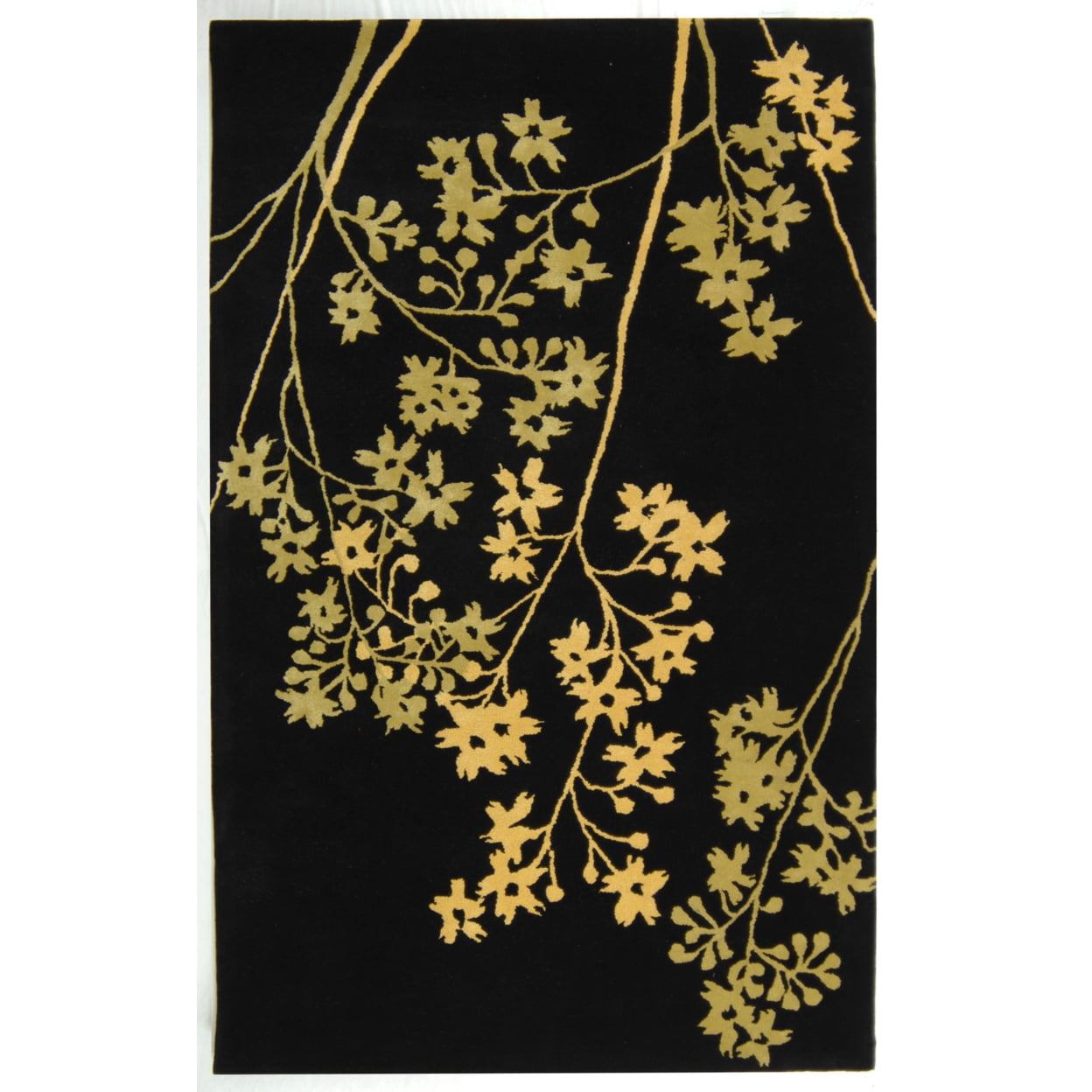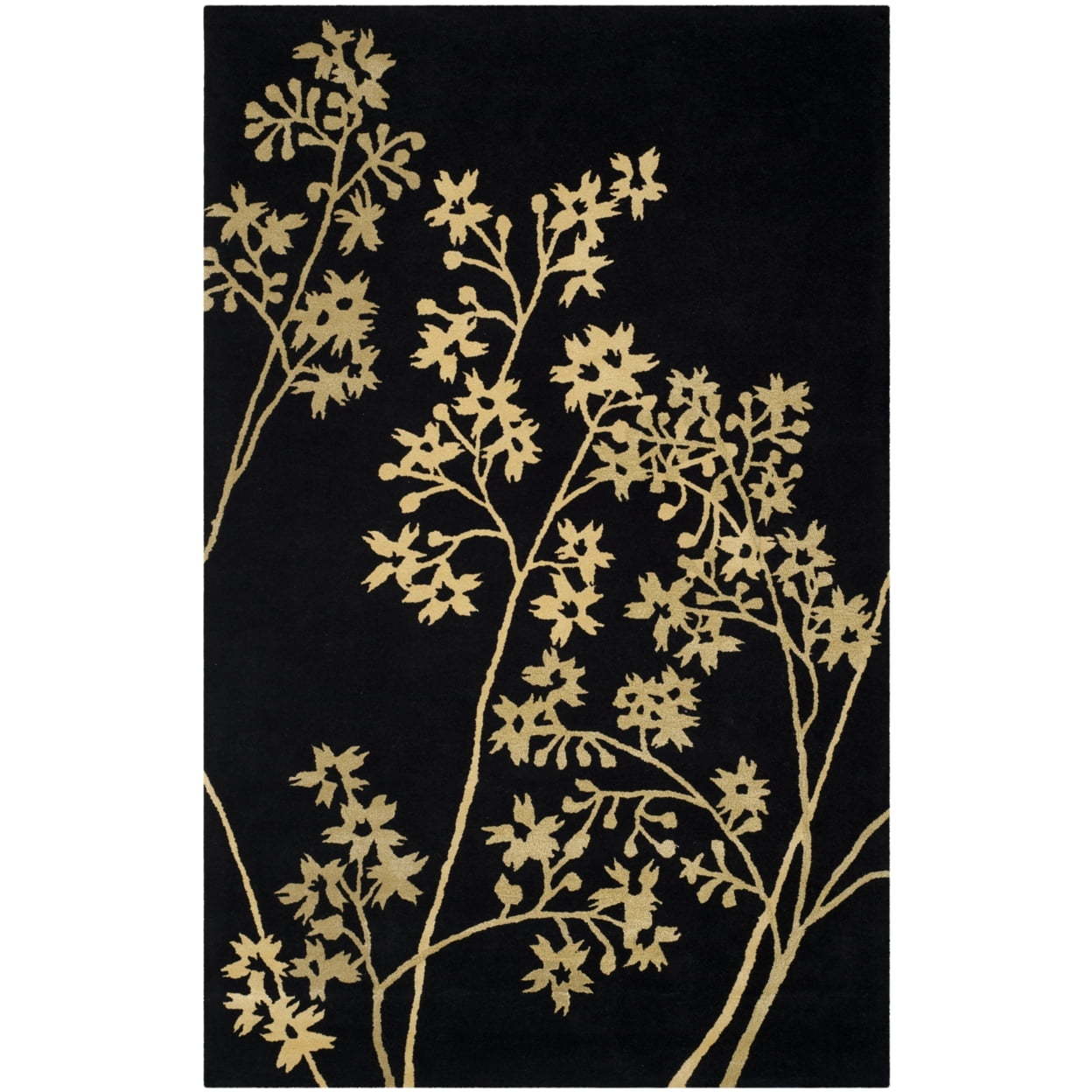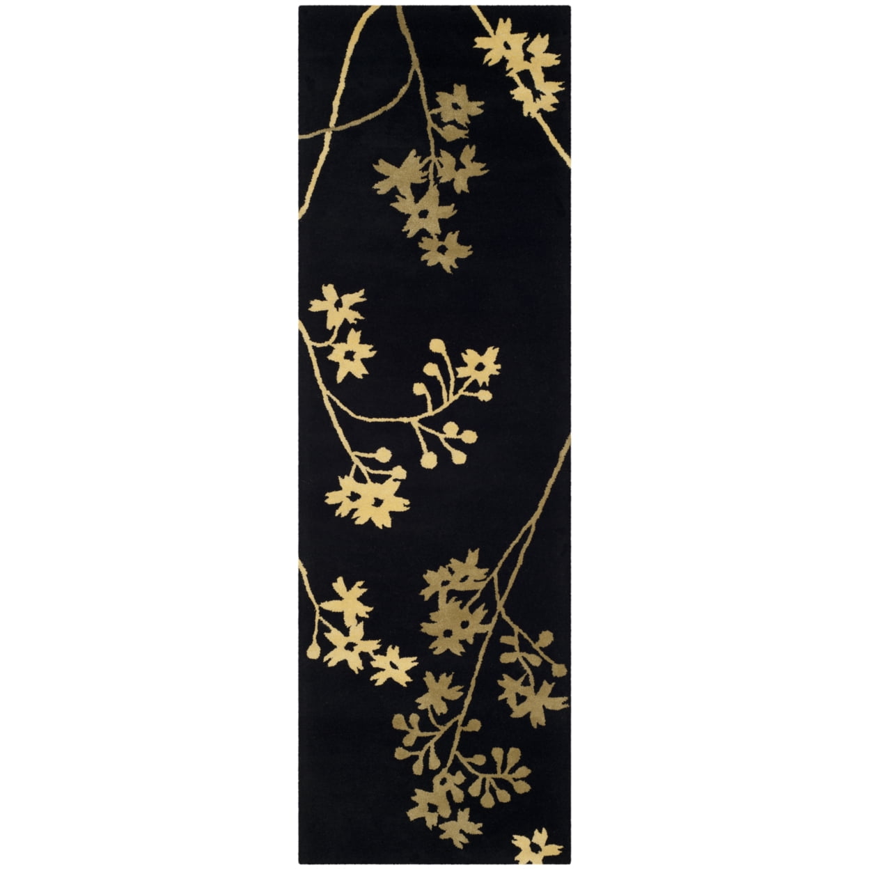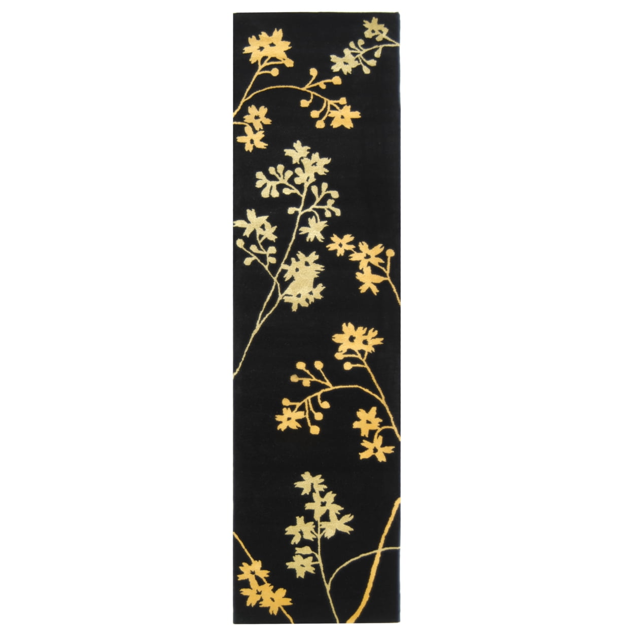 SAFAVIEH Soho Emerald Floral Wool Runner Rug, Black/Lime, 2’6″ x 8′