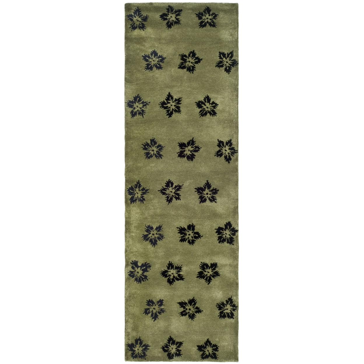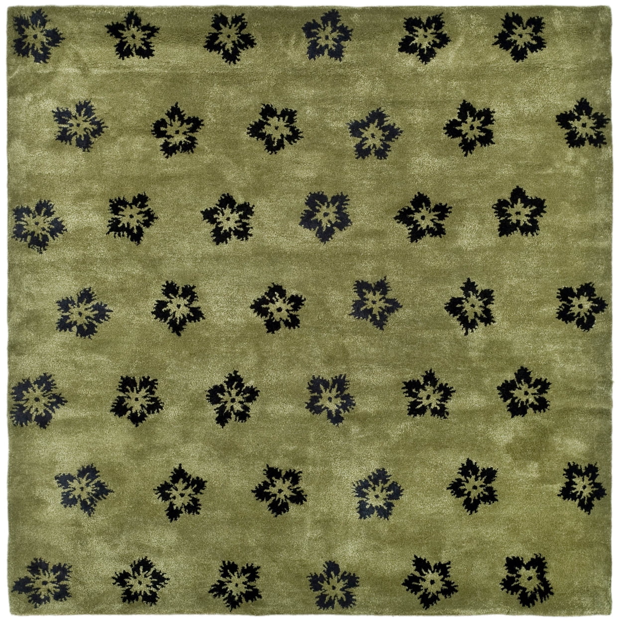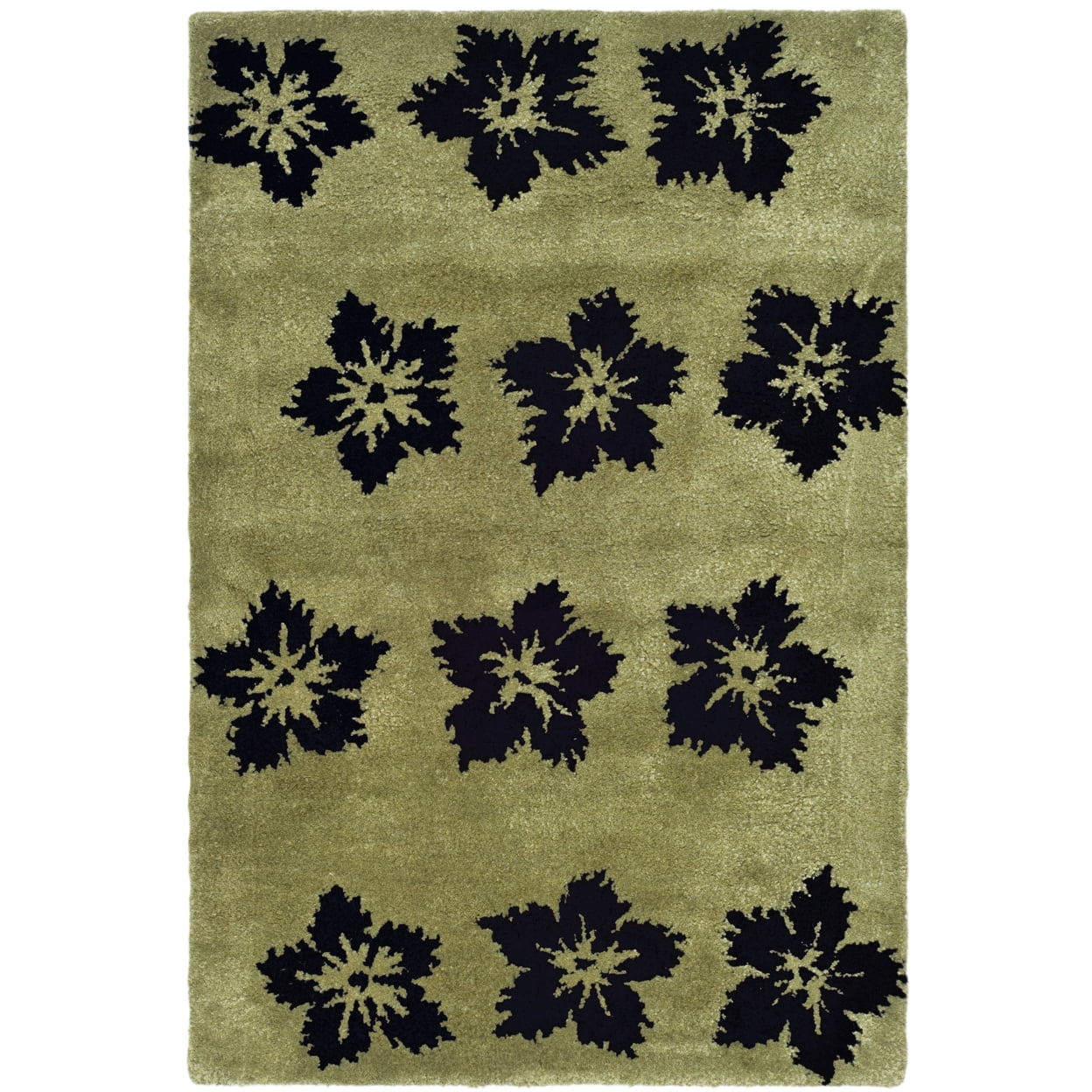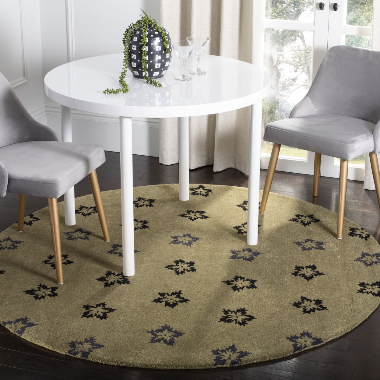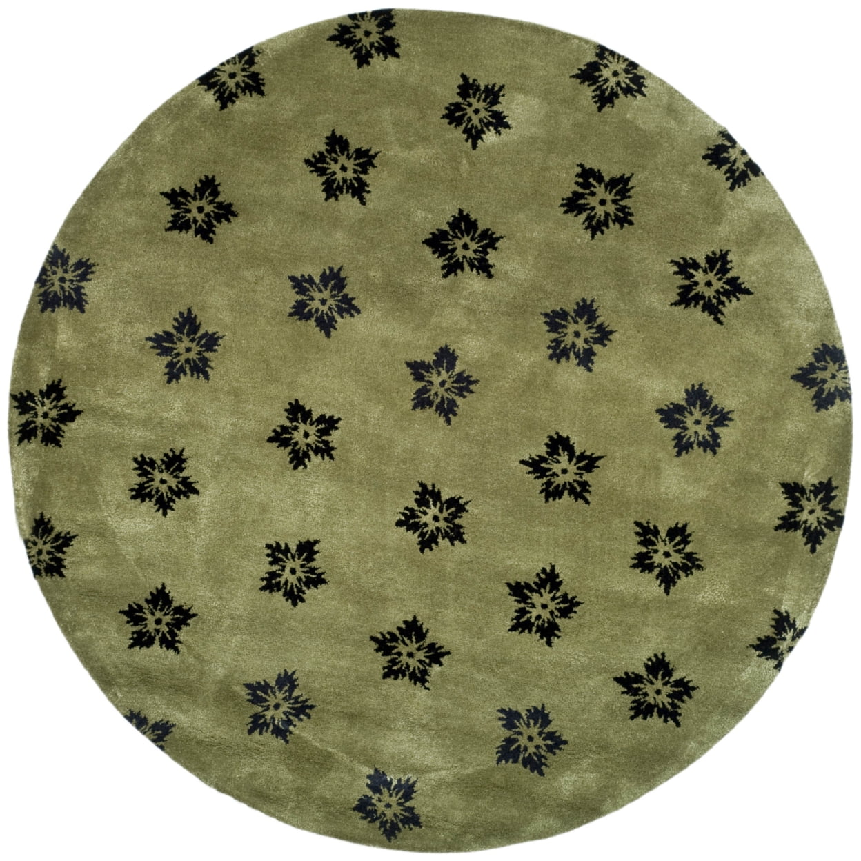 SAFAVIEH Soho Liam Floral Wool Area Rug, Sage/Black, 6′ x 6′ Round