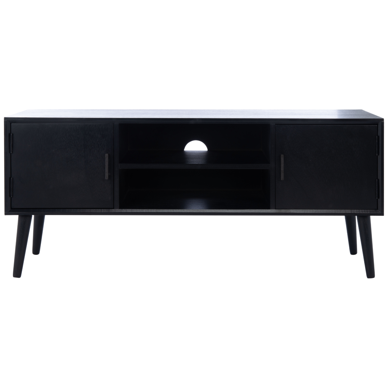 SAFAVIEH Sorrel Mid Century 2 Door 1 Shelf Media Stand, Black (47.3 in. W x 15.8 in. D x 20 in. H)