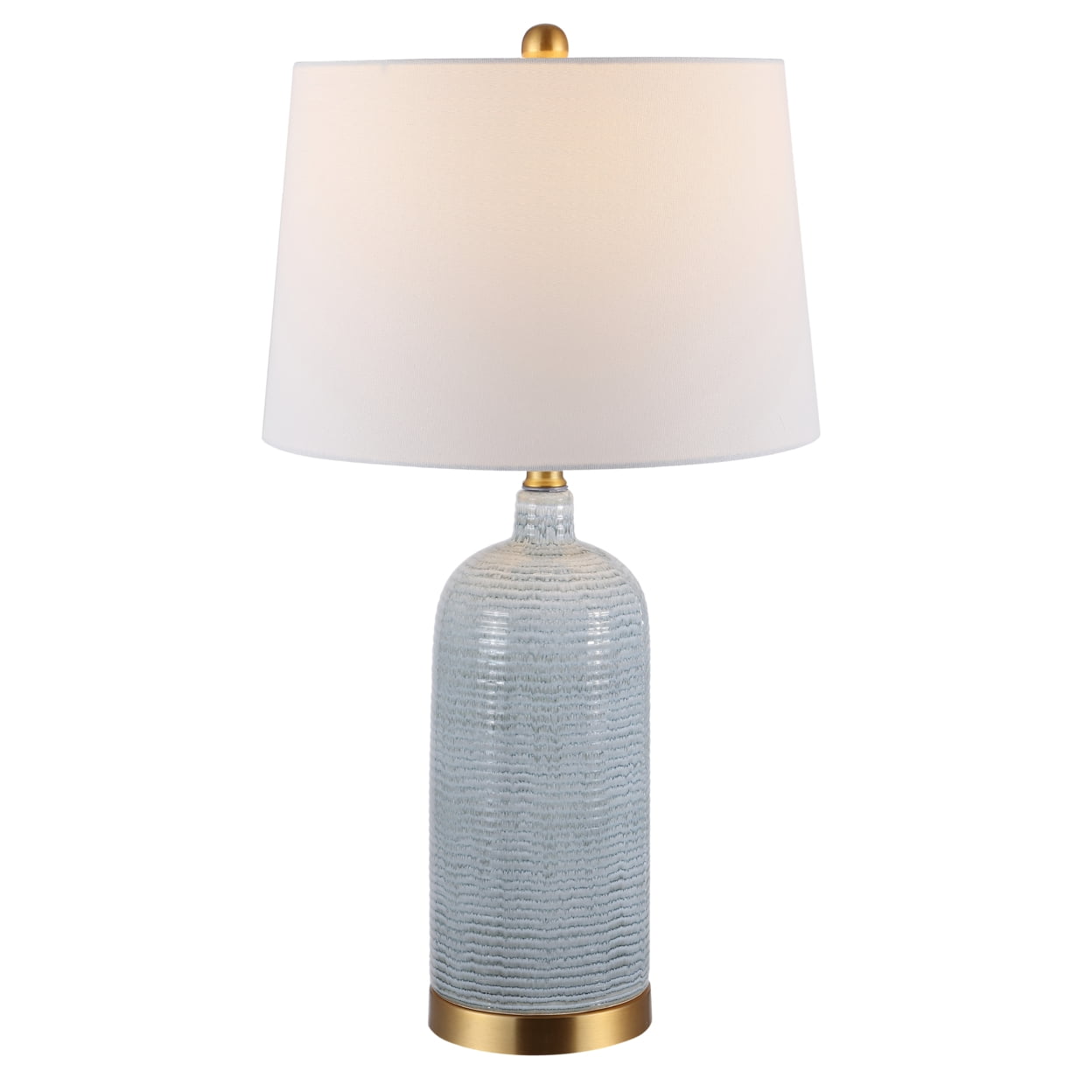 SAFAVIEH Stark 27″ Table Lamp | Blue | This Stark Table Lamp is an icon of artistic, glamorous living. Stark�s wine bottle silhouette and textured striations pair beautifully with its gently toned blue ceramic, perfectly highlighting the shining gold finish on its base and finial. Begin your rug, furniture, lighting, outdoor, and home decor search and discover over 100,000 SAFAVIEH products today.