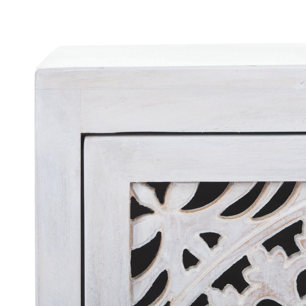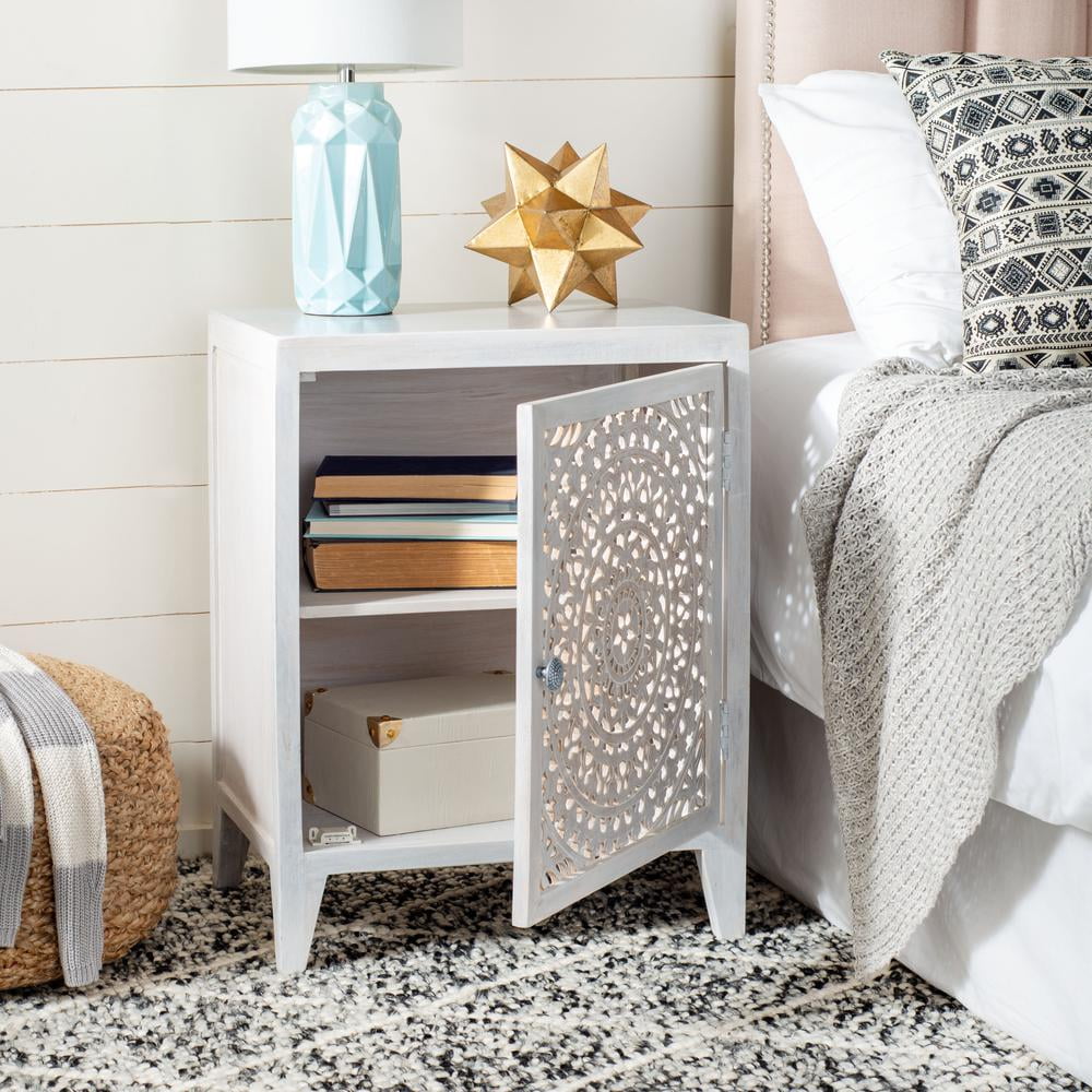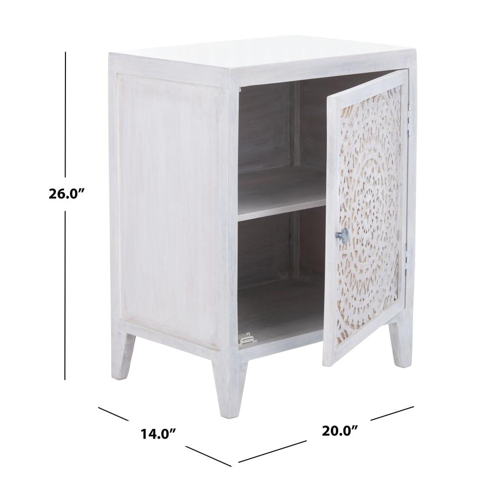 SAFAVIEH Thea Mid-Century Retro 1 Door Carved Nightstand, White Washed