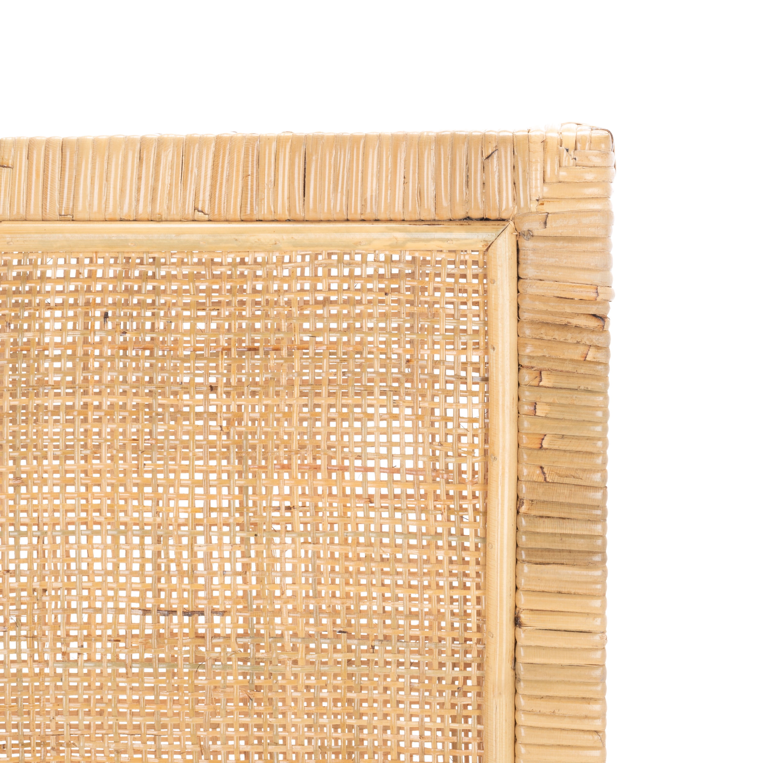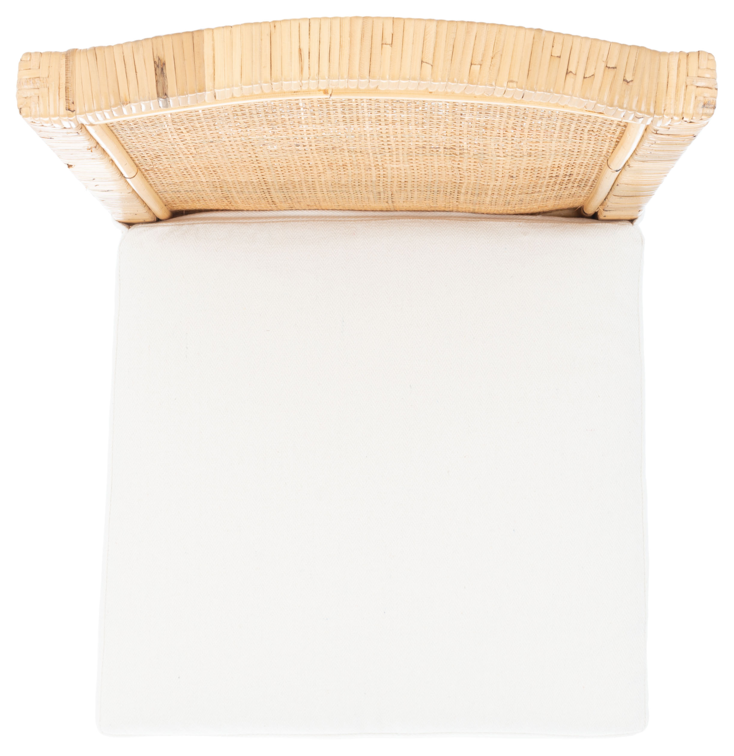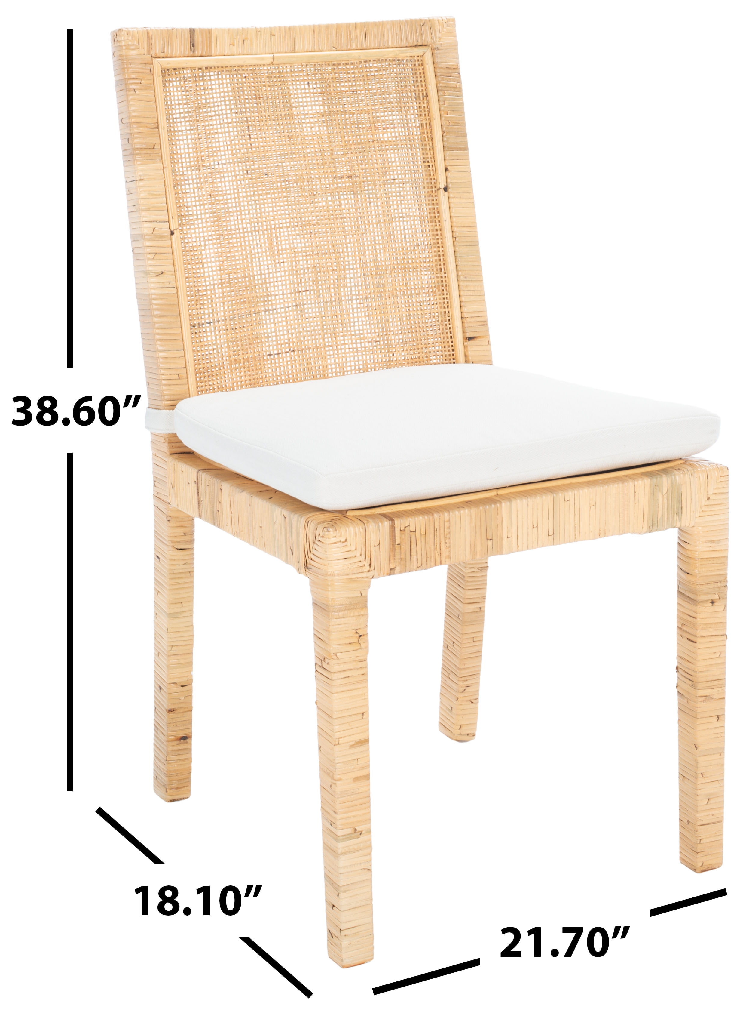 Durable rattan frame for long lasting longevity No assembly needed Color: Natural/White Overall Dimension: 21.7 in. W x 18.1 in. D x 38.6 in. H Item Weight: 14.1 lbs. Weight Capacity: 275 lbs. Dust regularly with a soft, dry cloth. Never use oiled or treated cloths on lacquered finishes. Some finishes can be wiped with a damp (not wet) cloth, followed at once by rubbing with a dry cloth to remove fingerprints and smudges. For persistent spots, gently clean with a soft cloth and a solution of water and mild soap, make sure to wipe dry. Use adhesive felt pads, coasters and placemats to protect your furniture. Upholstery with Linen