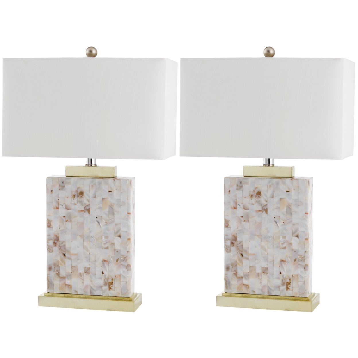 SAFAVIEH Tory 24 in. Gold Shell Table Lamp with White Polyester Shade, Set of 2