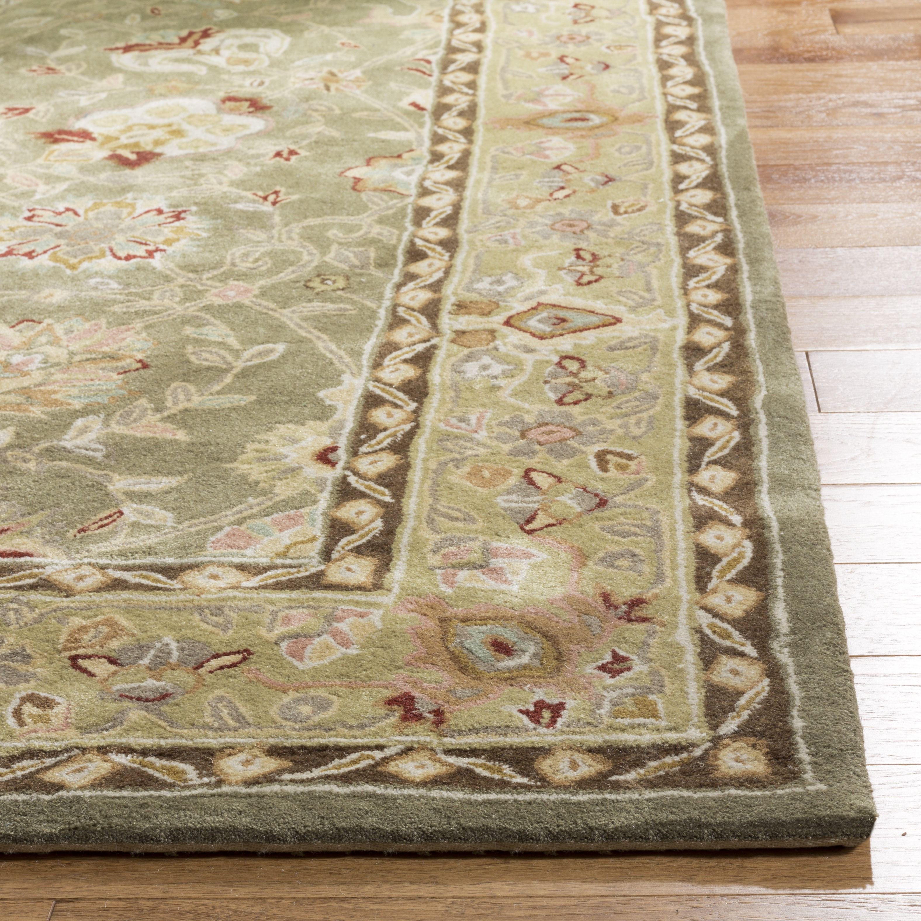 Color: Sage/Beige Size: 4′ x 6′ Hand Hooked in China Pile Height: 0.5 in. No backing, rug pad (sold separately) recommended to help prevent shifting and sliding 100% Acrylic Stylish addition for any room Accessories in lifestyle photos not included Vacuum regularly (preferably one without beater bars) and spot clean; for hard-to-remove stains, professional rug cleaning is recommended; rotating your rugs every 3-6 months will protect against uneven wear from foot traffic and furniture weight Use rug protectors under the legs of heavy furniture to avoid flattening piles Avoid direct sunlight as it will cause the colors in your area rug to fade over time; place your area rug away from direct sunlight whenever possible For an instant decorating makeover, this area rug is one of the easiest and most fashionable ways to refresh a room with character and style. Please note: The images and product dimensions on our website are as accurate as possible. Due to differences in computer monitors, some rug colors may vary slightly. Lengths and widths may vary from the published dimensions. We do our best to provide you with an exact measurement, but please be advised that some variation exists. Patterns may vary slightly according to shape and size selected. Packing and shipping of your rug may cause temporary creases; these surface waves are not imperfections or damages and will gradually recede; back-rolling or reverse rolling is the fastest and easiest way to remove creases in your area rug; allow ample time for your rug to settle, these creases and waves will normally flatten out Available in multiple sizes For carpet-to-carpet use, we recommend placing a hold pad in-between for protection