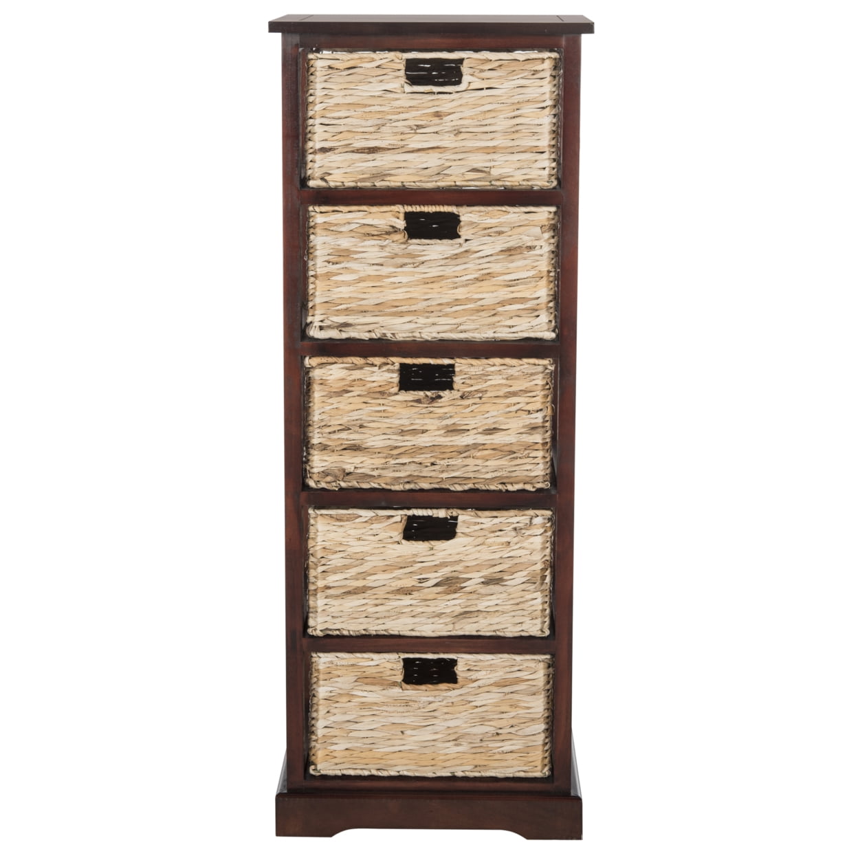 SAFAVIEH Vedette Country Nautical 5 Wicker Basket Storage Tower, Cherry