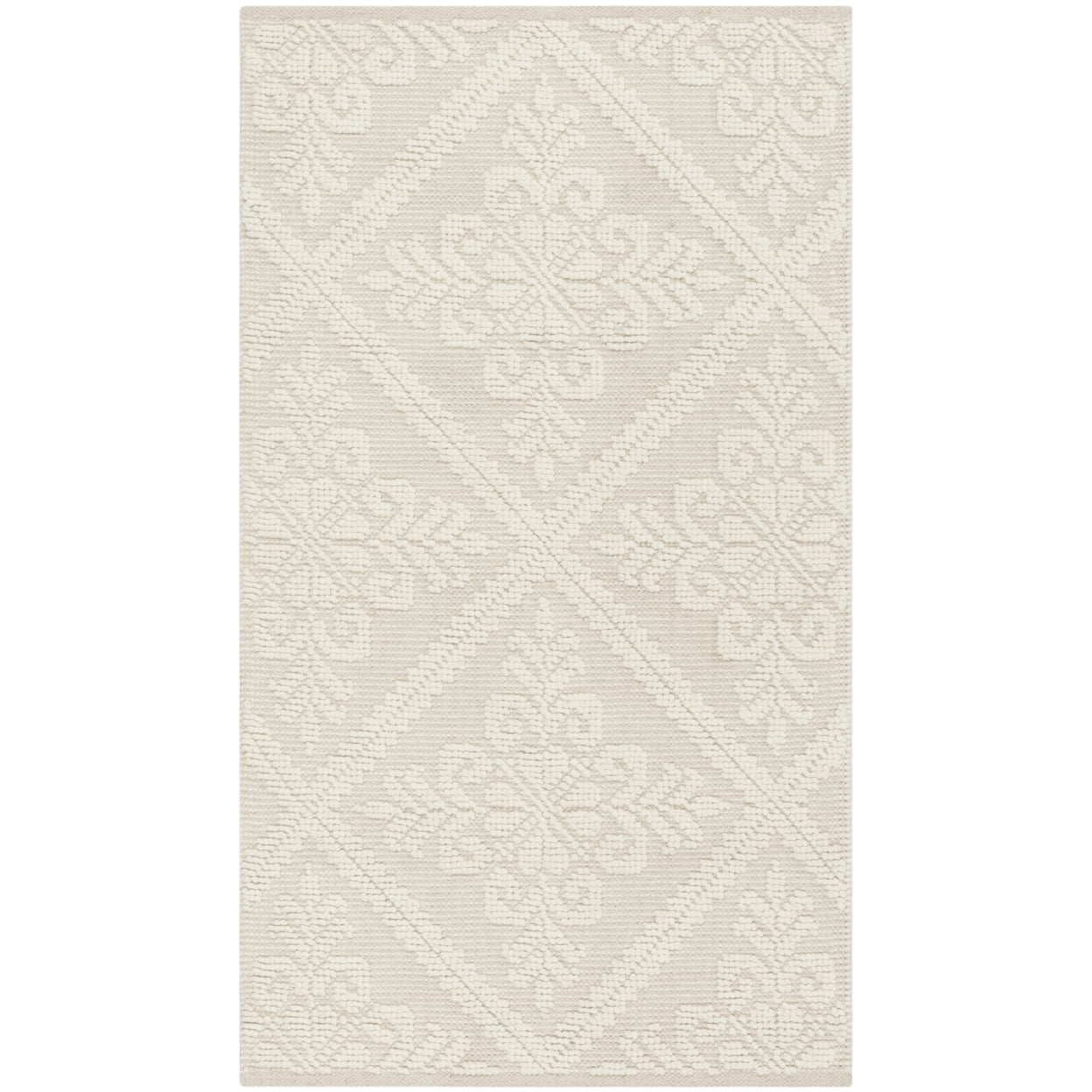 Color: Ivory 5′ x 8′ Hand Woven in India Pile Height: 0.25 in. 50% WOOL / 50% COTTON No Backing, rug pad (sold separately) recommended to help prevent shifting and sliding Indoor Use Accessories in lifestyle photos not included Vacuum regularly (preferably one without beater bars) and spot clean; for hard-to-remove stains, professional rug cleaning is recommended; rotating your rugs every 3-6 months will protect against uneven wear from foot traffic and furniture weight Use rug protectors under the legs of heavy furniture to avoid flattening piles Avoid direct sunlight as it will cause the colors in your area rug to fade over time; place your area rug away from direct sunlight whenever possible For an instant decorating makeover, this area rug is one of the easiest and most fashionable ways to refresh a room with character and style. Please note: The images and product dimensions on our website are as accurate as possible. Due to differences in computer monitors, some rug colors may vary slightly. Lengths and widths may vary from the published dimensions. We do our best to provide you Packing and shipping of your rug may cause temporary creases; these surface waves are not imperfections or damages and will gradually recede; back-rolling or reverse rolling is the fastest and easiest way to remove creases in your area rug; allow ample ti Available in multiple sizes For carpet-to-carpet use, we recommend placing a hold pad in-between for protection