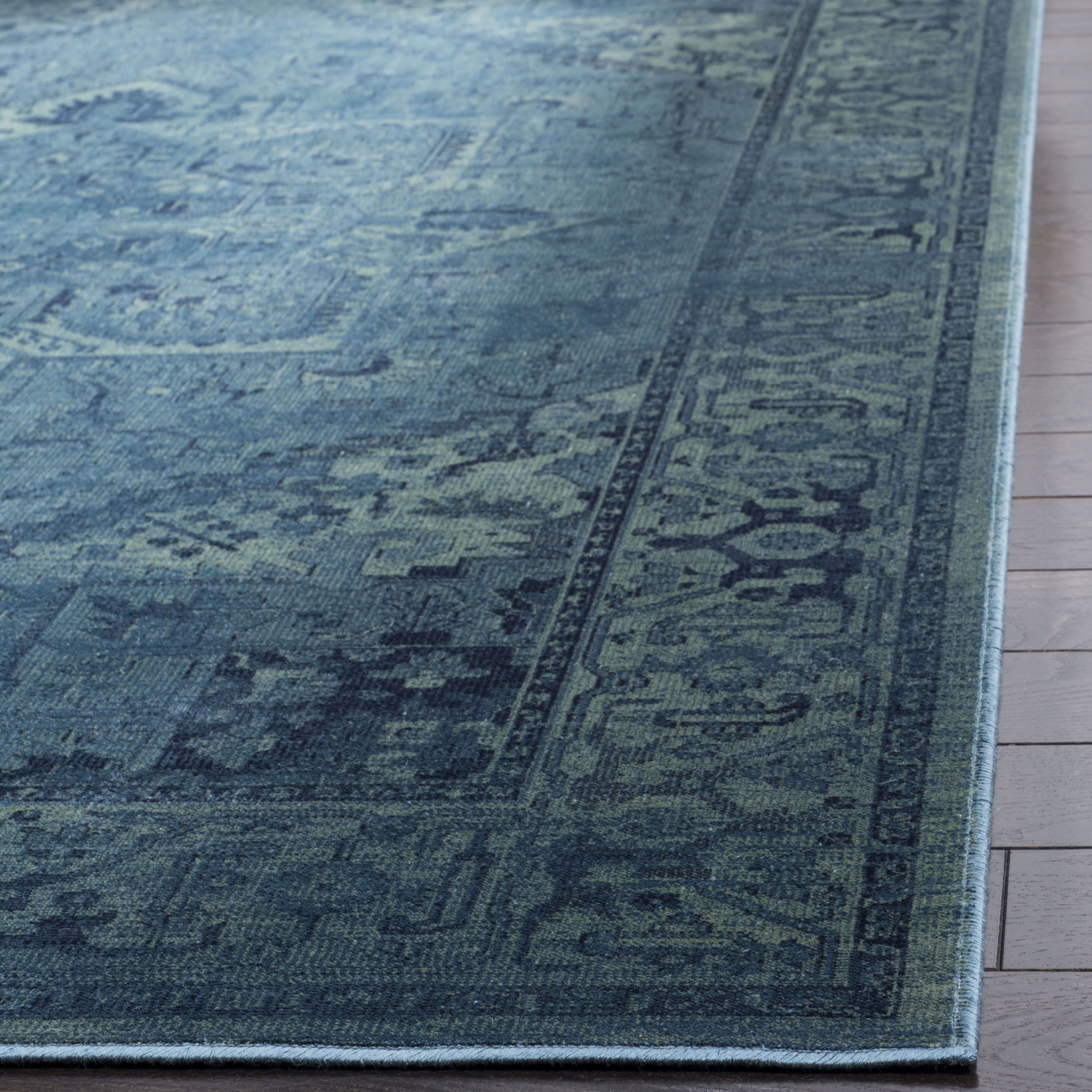 SAFAVIEH Vintage Rug Collection SAFAVIEH Vintage Adrian Bordered Area Rug, Turquoise, 8′ x 10′ The Vintage Collection features antique styled, transitional area rugs. Each rug displays classic motifs revived in a fashion-now color palette and a silky-smooth feel underfoot. The ideal choice to satisfy modern decor preferences for heirloom character with modern flair. Elegantly designed, each rug provides comfort and luxury to complement your style. Durably construction, these Vintage rugs are the perfect addition in your home for a chic upgrade.