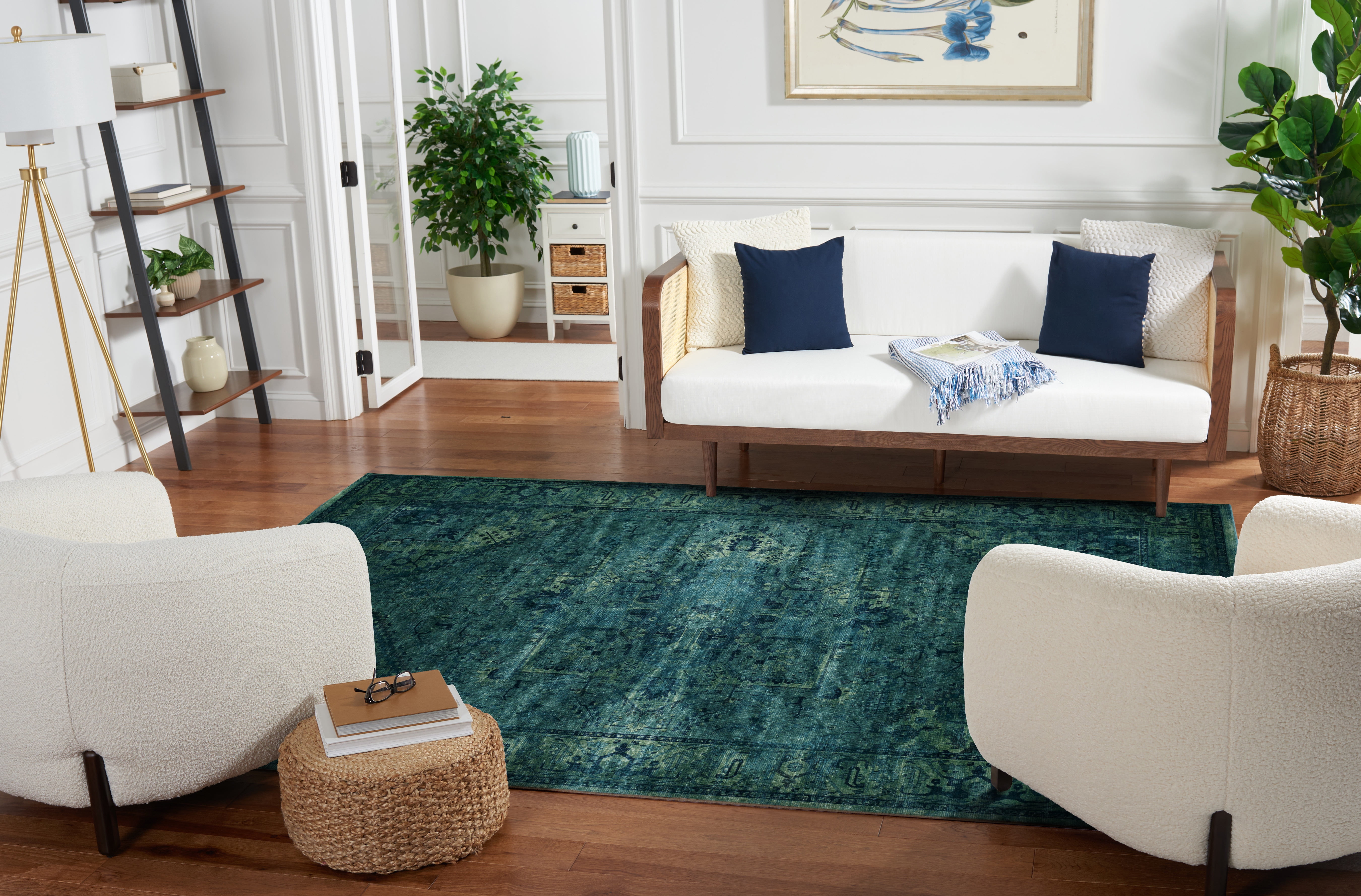 [COLOR]: Turquoise [SIZE]: 8′ x 10′ [COUNTRY OF ORIGIN]: Power Loomed in Belgium [PILE HEIGHT]: 0.25″ [MATERIAL]: 67.7% Viscose; 20.6% Polyester; 11.8% Cotton [BACKING]: Backing contains cotton with latex. Rug pad (sold separately) recommended to help prevent shifting and sliding [HOLD PAD]: For carpet-to-carpet use, we recommend placing a hold pad in-between for protection [RUG PROTECTORS]: Use rug protectors under the legs of heavy furniture to avoid flattening piles [CLEANING]: Vacuum regularly (preferably one without beater bars) and spot clean; for hard-to-remove stains, professional rug cleaning is recommended; rotating your rugs every 3-6 months will protect against uneven wear from foot traffic Avoid direct sunlight as it will cause the colors in your area rug to fade over time; place your area rug away from direct sunlight whenever possible The images and product dimensions are as accurate as possible. Due to differences in resolutions, some rug colors may vary slightly. Please be advised that some variation exists. Patterns may vary slightly according to shape and size selected. Packing and shipping may cause temporary creases; surface waves are not imperfections or damages; reverse rolling is the fastest and easiest way to remove creases; allow ample time for rug to settle, these creases and waves will normally flatten out Accessories in lifestyle photos not included Check out our other products on : SAFAVIEH