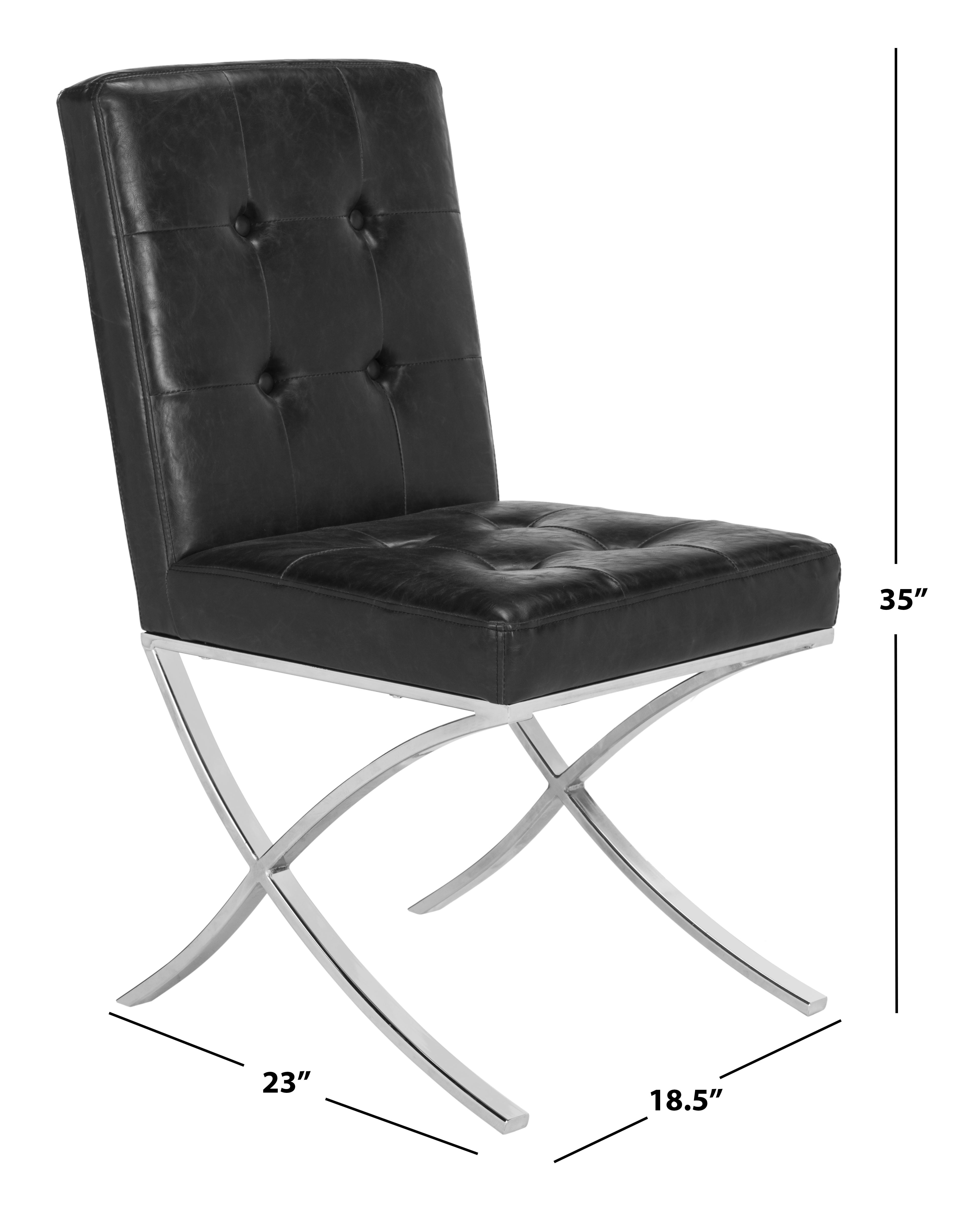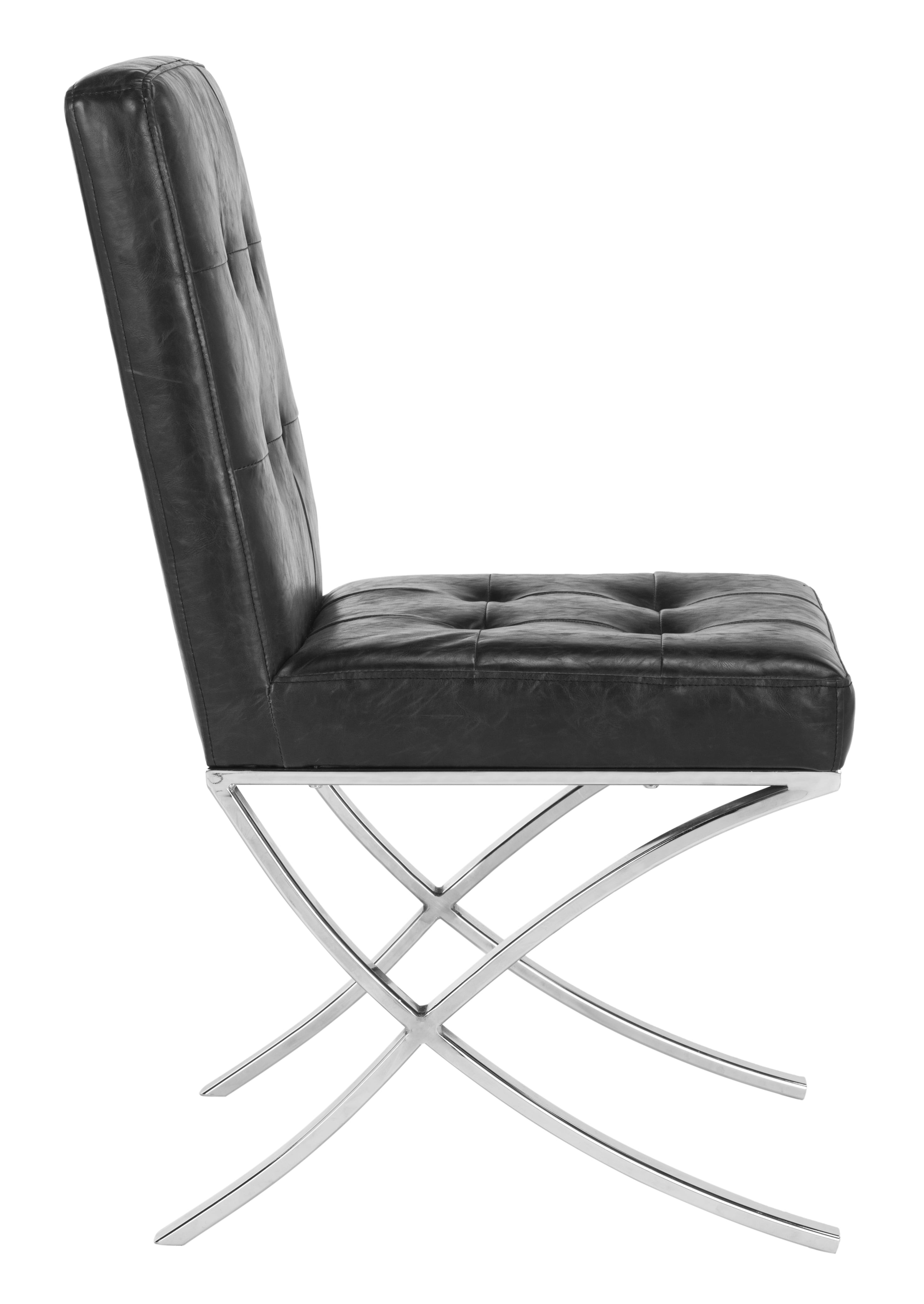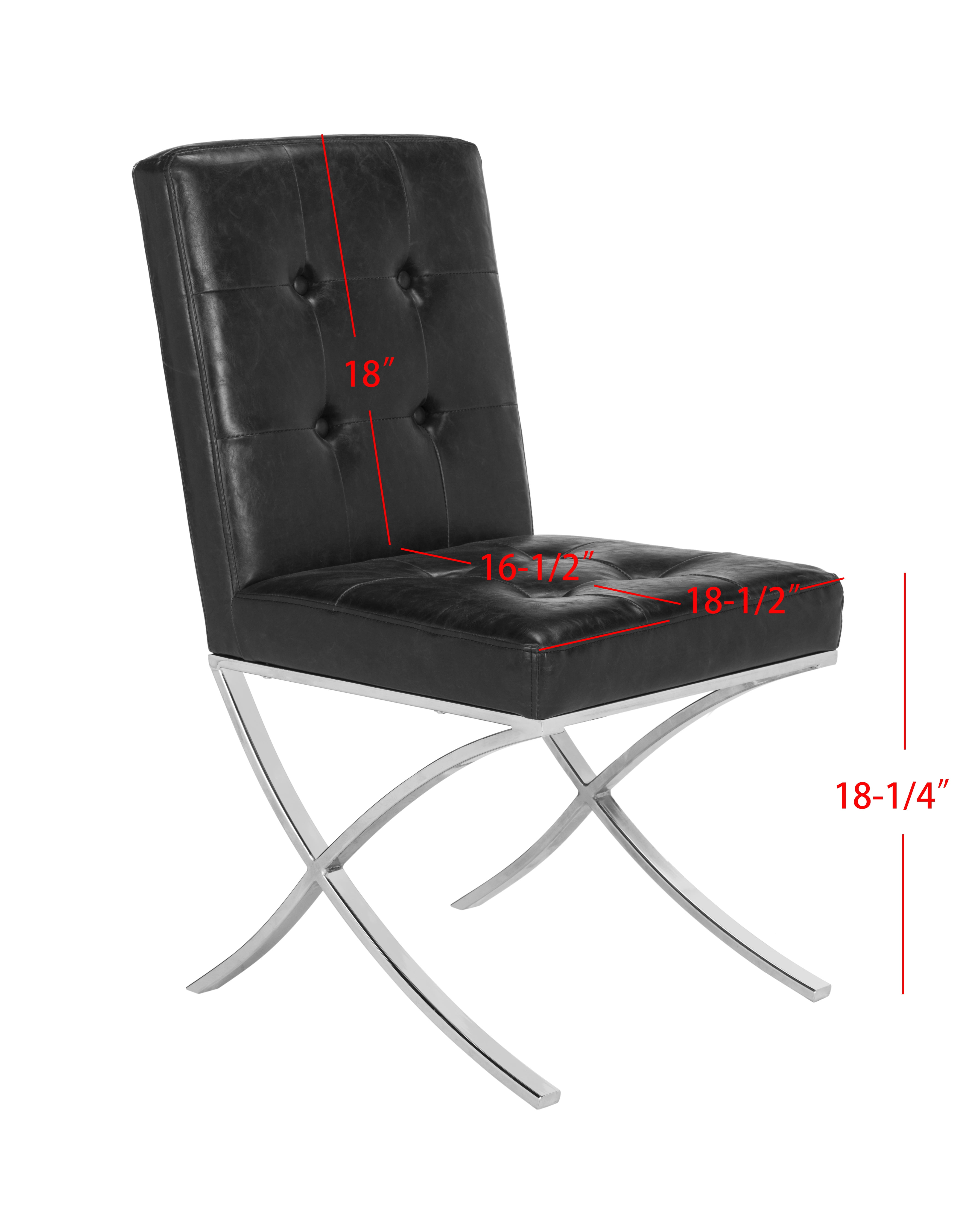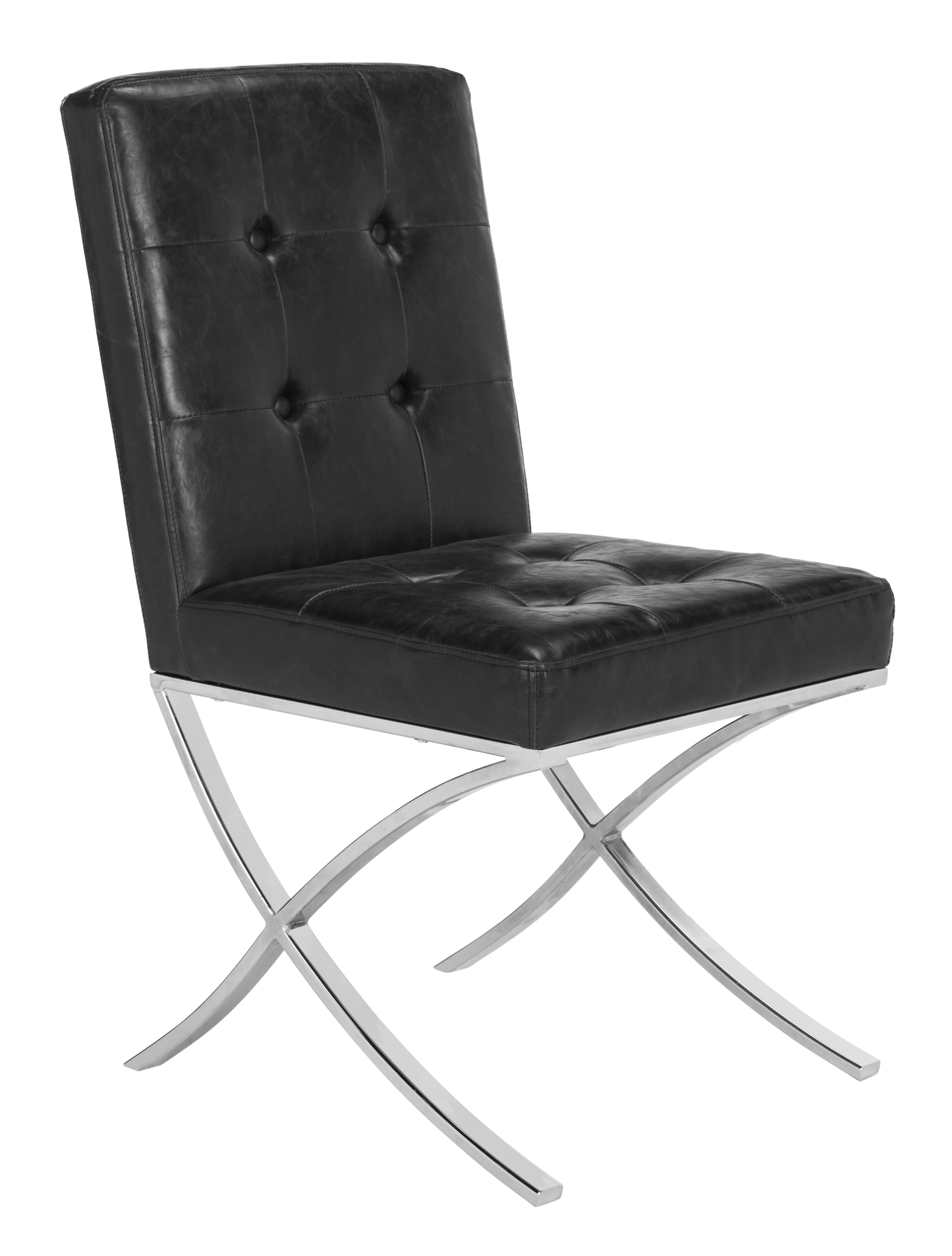 Shop Safavieh at . Save Money. Live Better. Safavieh Walsh Modern Glam X-Legs Tufted Side Chair An instant sign of sophistication, this contemporary black tufted side chair brings refined relaxation to any living room. Designed with modern geometric lines and generously tufted leather-style upholstery, its polished chrome legs make it a new classic.