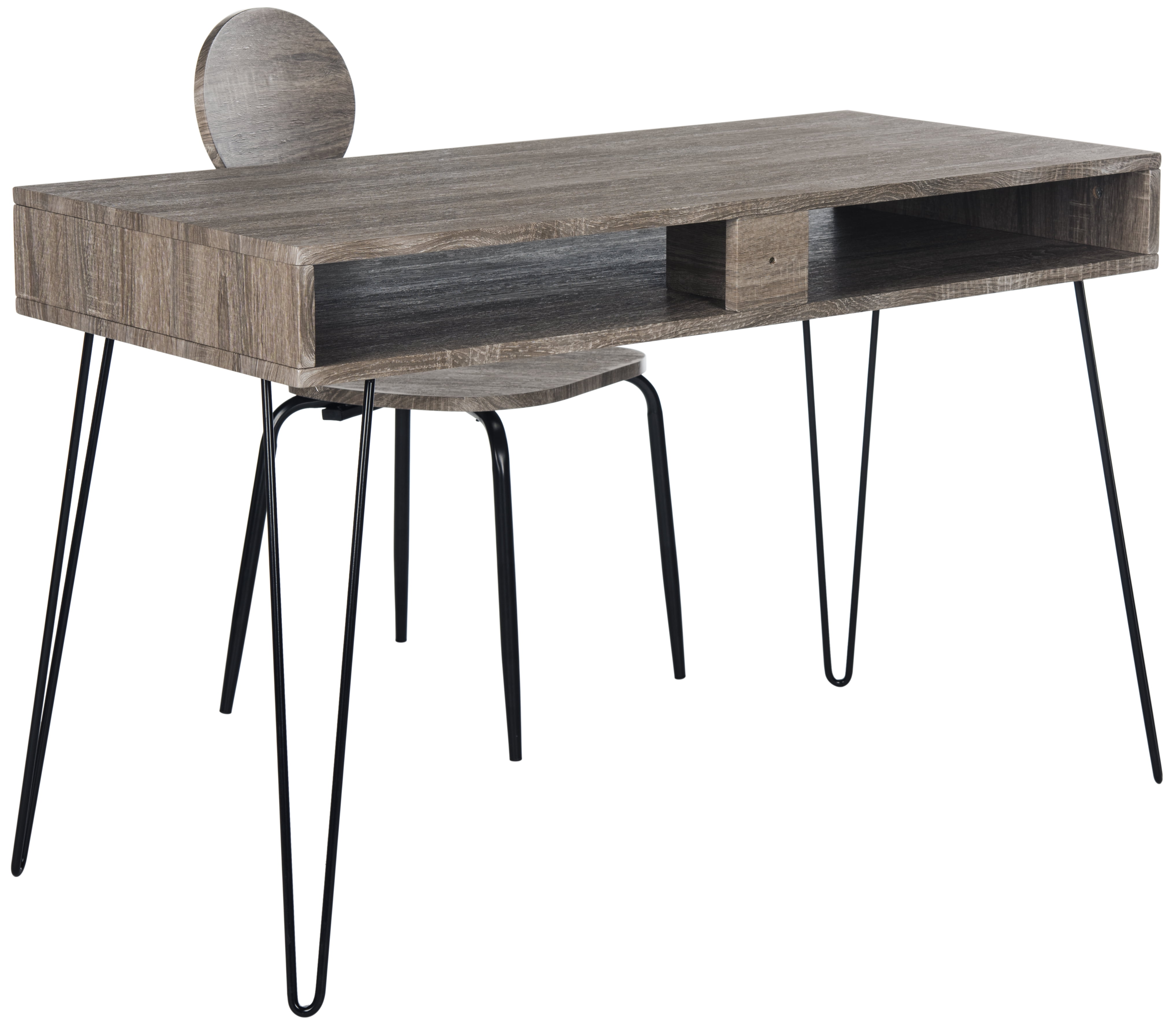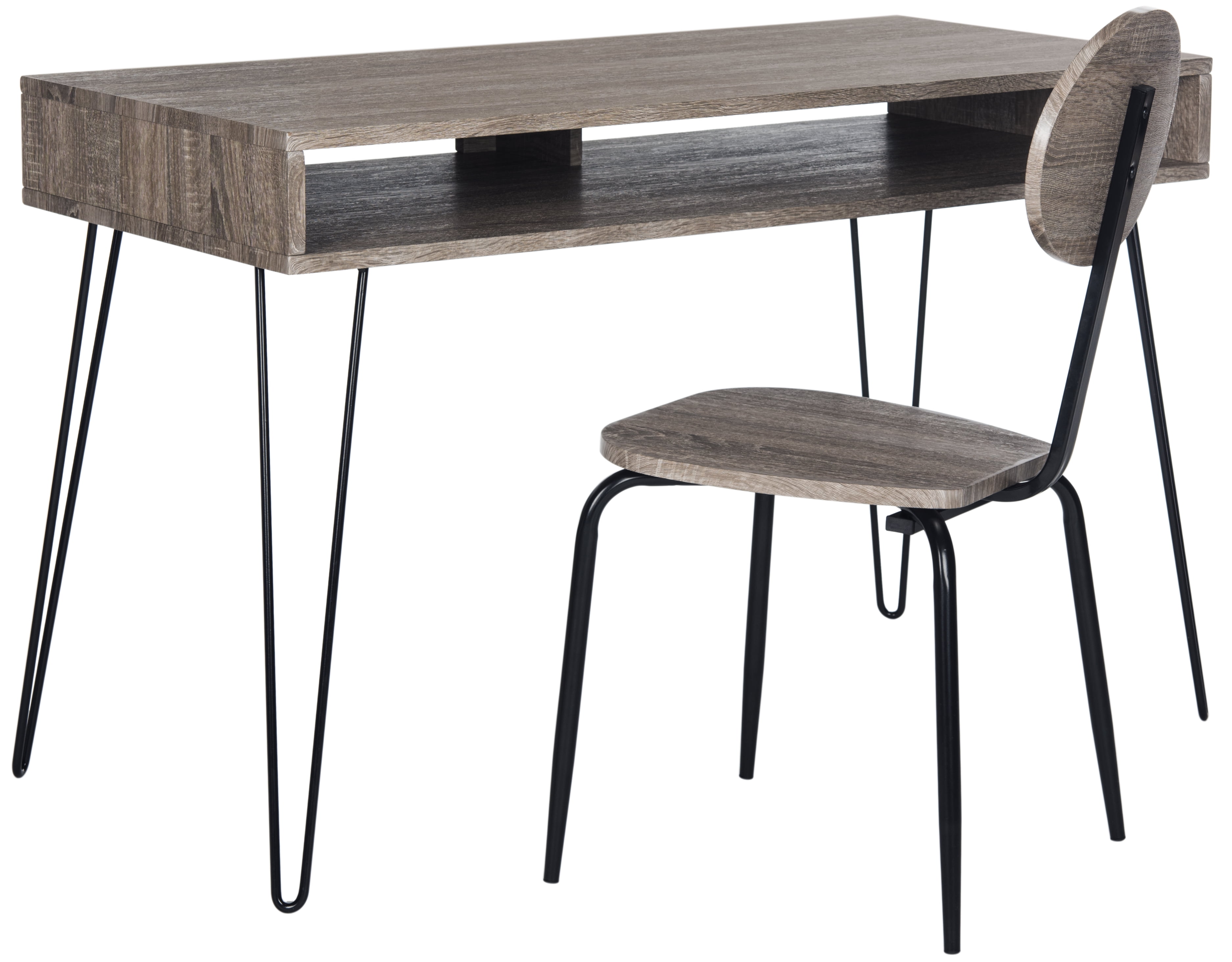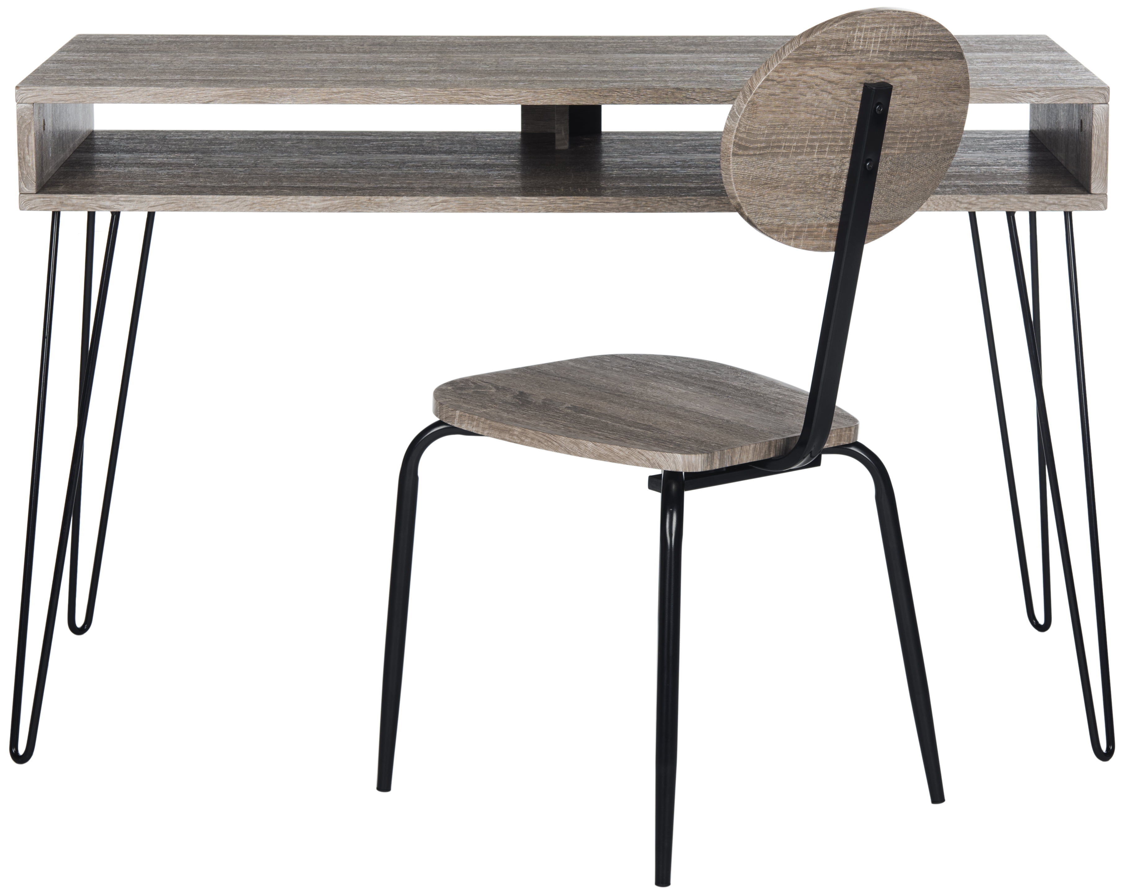 SAFAVIEH Winta 47” Mid-Century Retro Writing Desk/Chair, Grey/Black