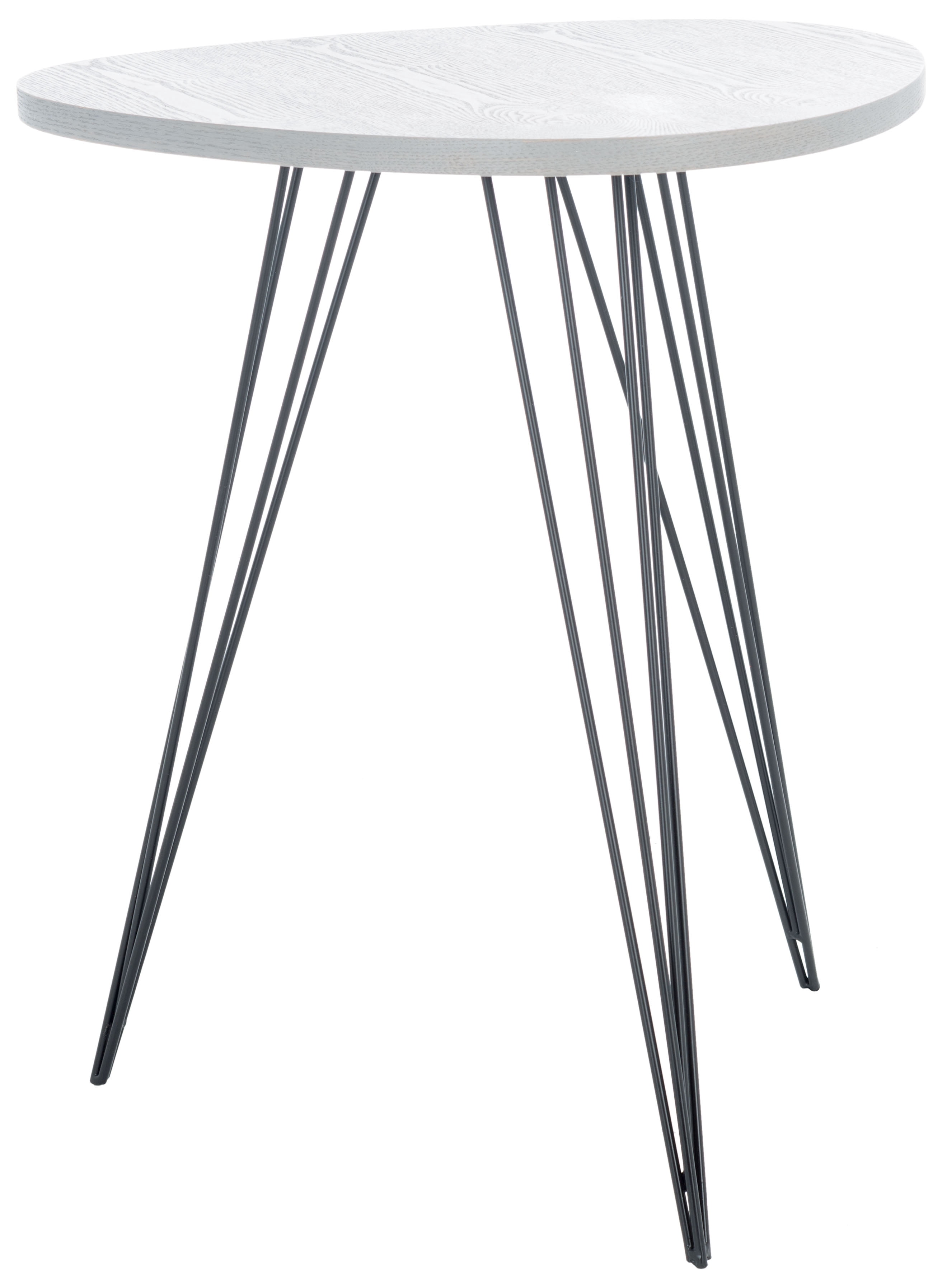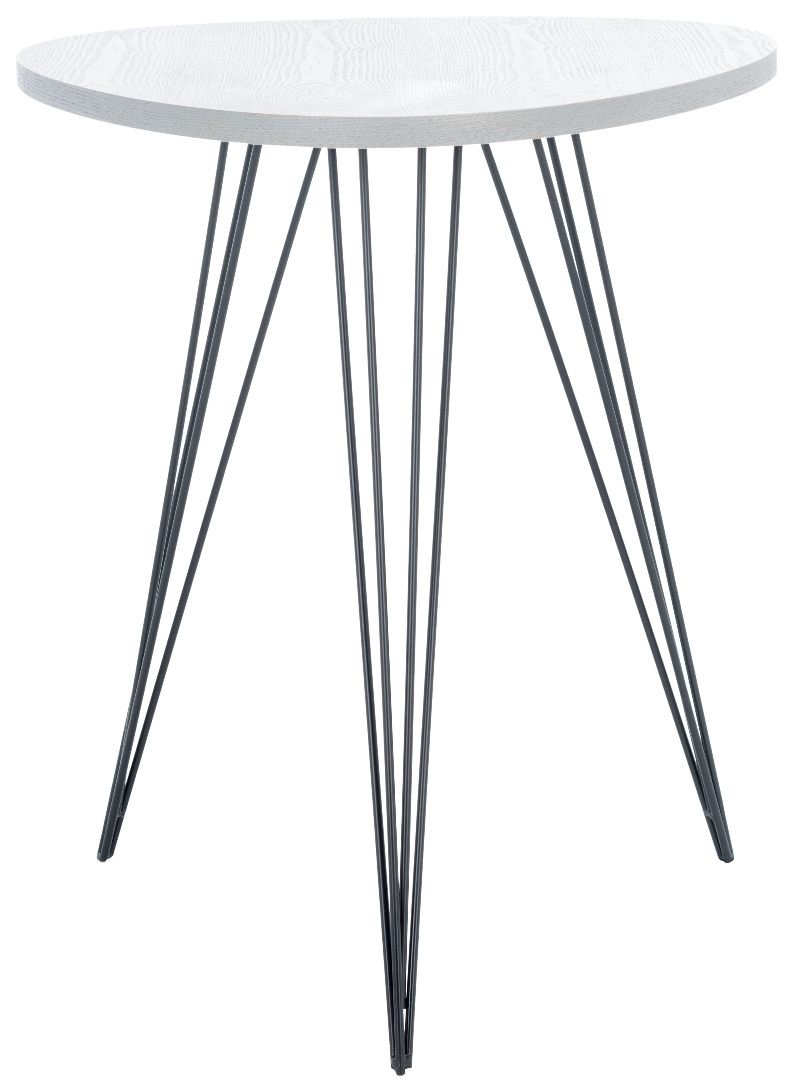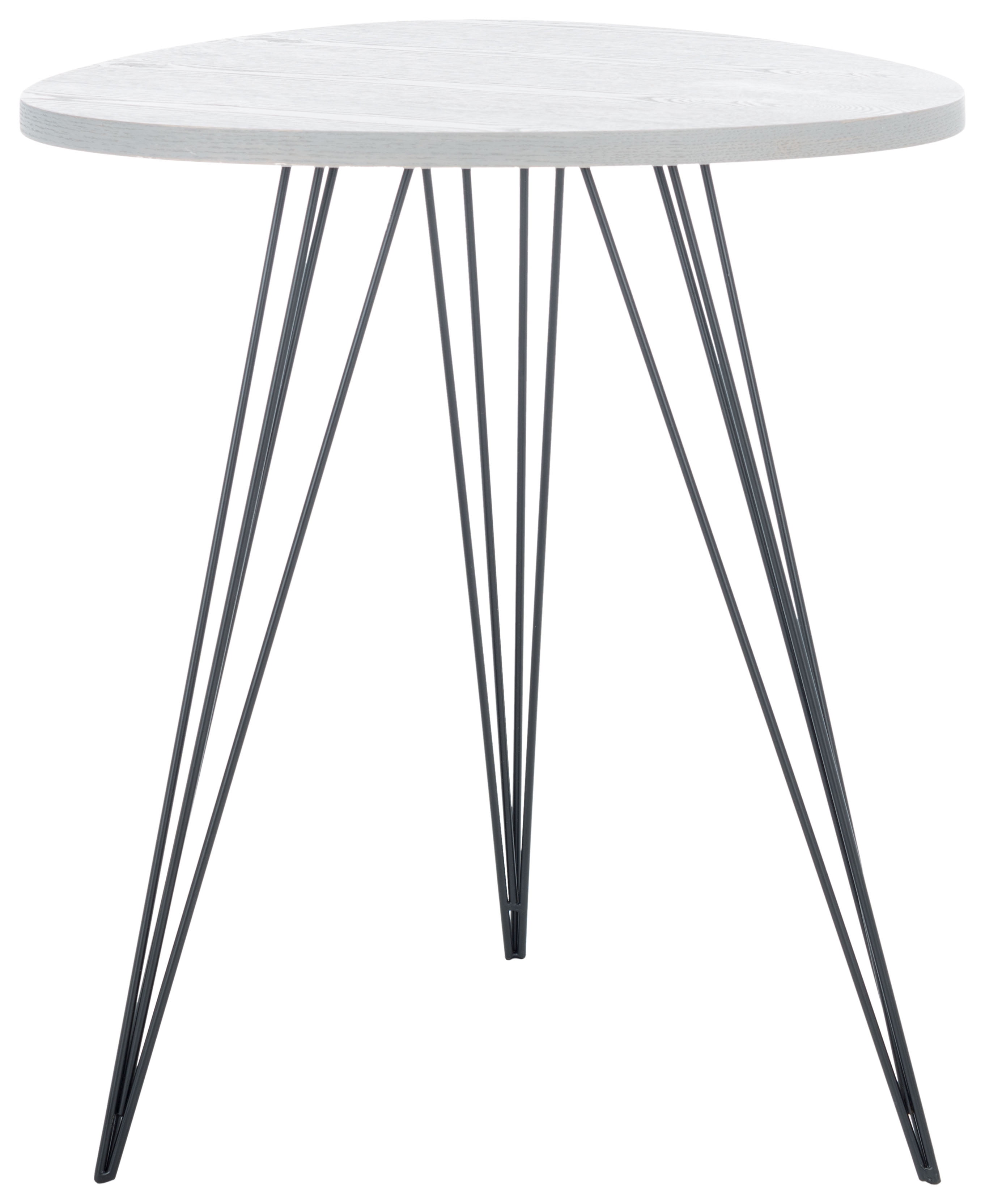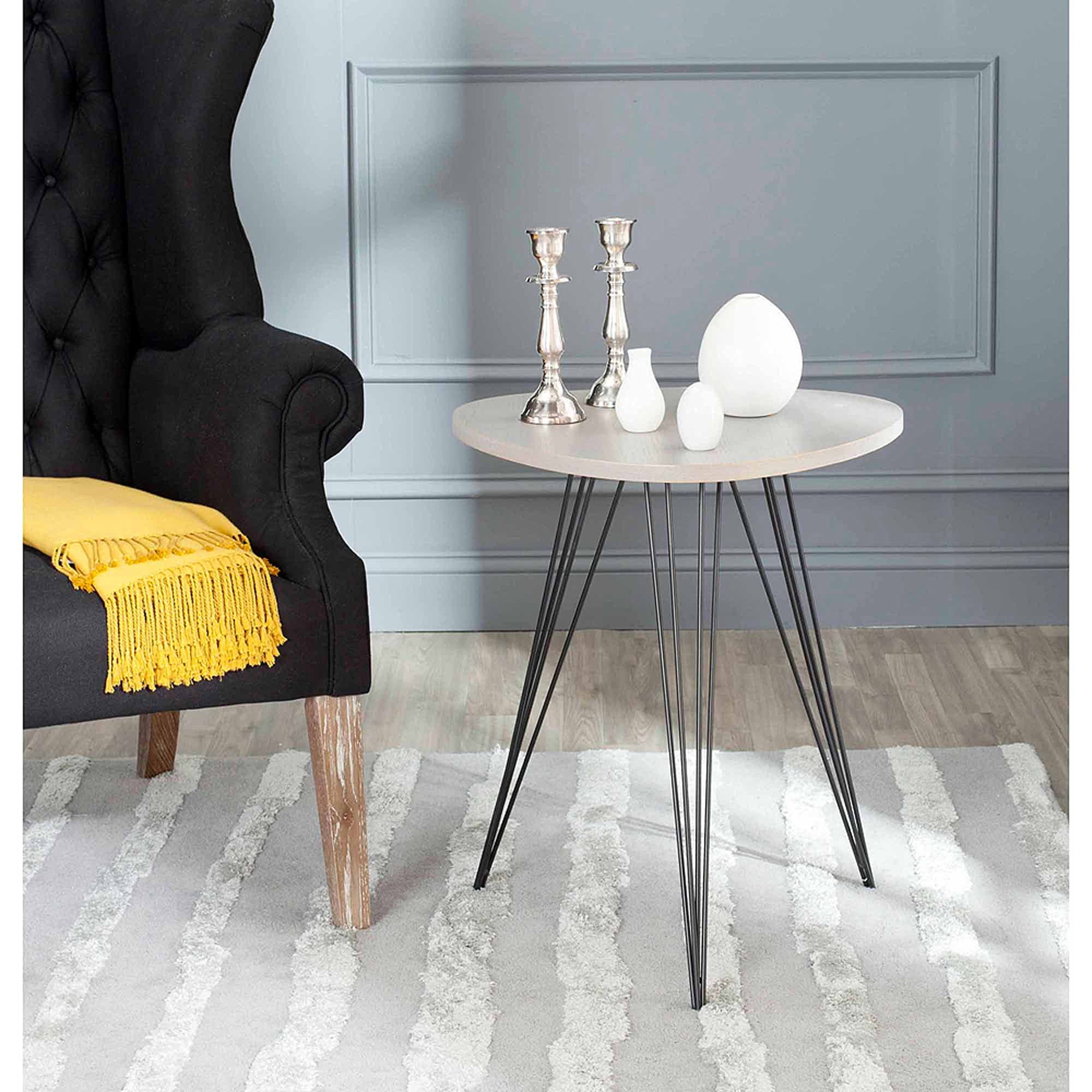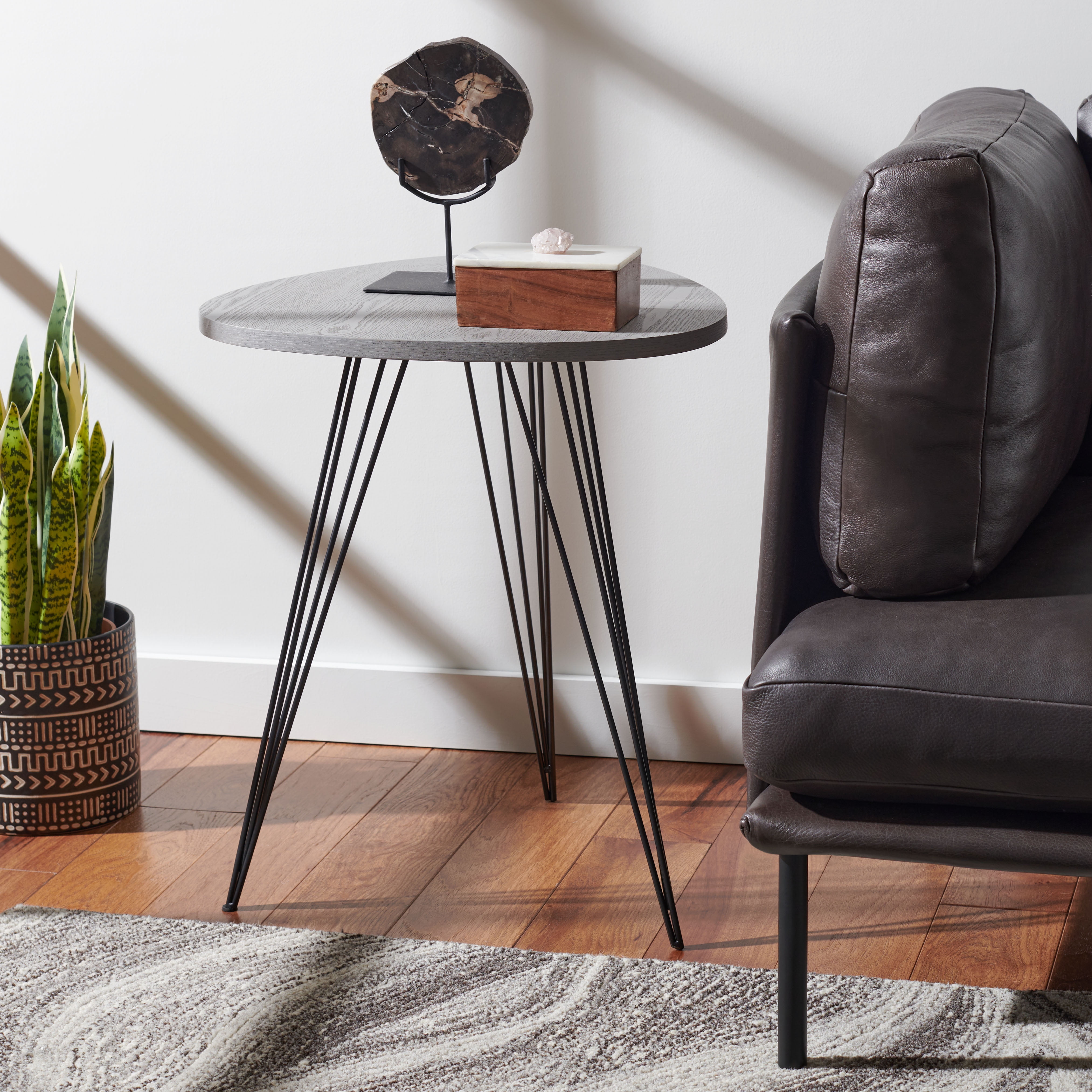 Shop SAFAVIEH at . Save Money. Live Better. SAFAVIEH Wolcott Retro Mid-Century Side Table, Grey/Black Contrasting colors and textures pack a punch in the chic and contemporary Wolcott Side Table. A grey wood grained lacquer top and triad of black iron hairpin legs make an open, airy statement in crowded rooms. This table is perfect beside a sofa or armchair. For over 100 years, SAFAVIEH has set the standard for finely crafted rugs and home furnishings. Begin your rug, furniture, lighting, outdoor, and home decor search and discover over 100,000 SAFAVIEH products today.