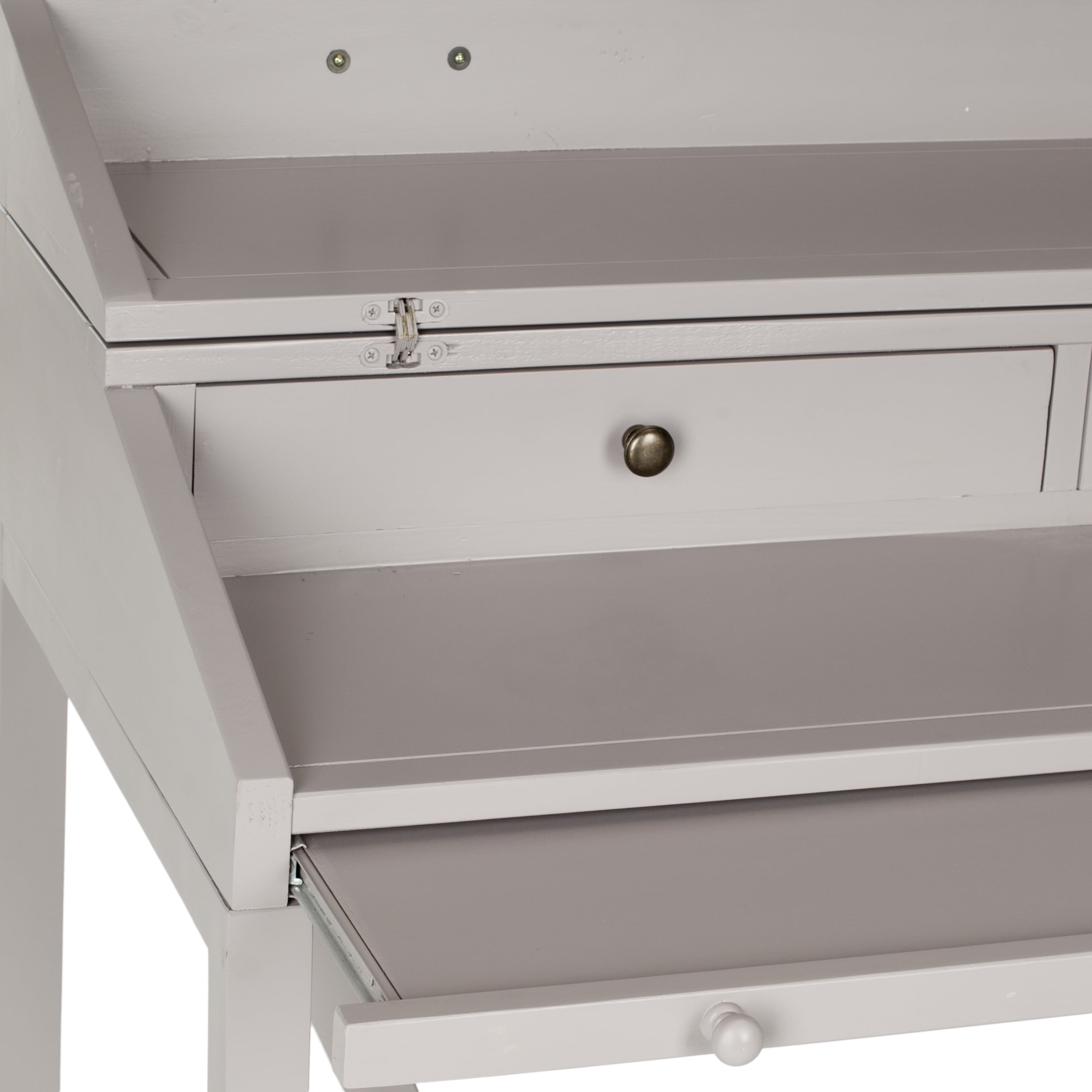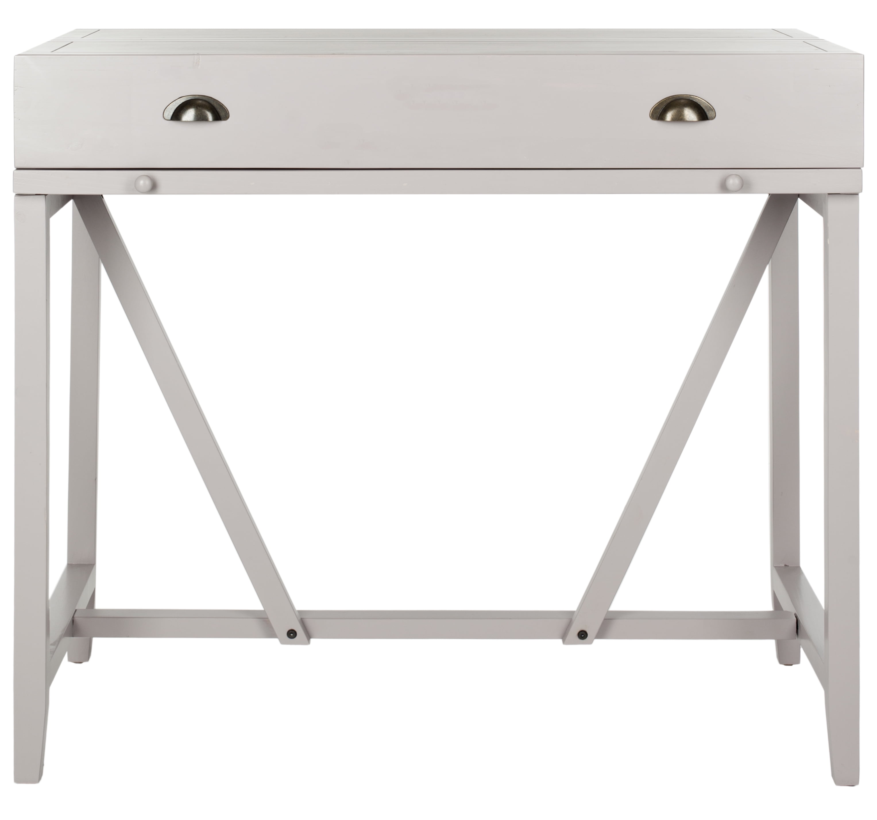 Contemporary design adds a chic look to your home Durable pine wood frame for long lasting longevity Minor assembly needed Color: Quartz Grey Item Dimension: 40.2 in. W x 22 in. D x 36 in. H Drawer: 17.9 in. W x 10.6 in. D x 3 in. H Shelf: 38.4 in. W x 18.9 in. D Shelf Pulls Out 8.3 in. Height Of Writing Shelf: 29.20 in. Leg Height: 29.3 in. Item Weight: 52.9 lbs Weight Capacity: 40 lbs Wood is a natural material with variations of color shade, configuration, streaks, and grain structure. Each individual piece of Safavieh furniture has characteristic markings that will differ from photo and showroom samples. Regular attention and maintenance of fine furniture can ensure its beauty for years to come. Always use felt pads under all articles to prevent discoloration or softening of the lacquer. Plastic and rubber bases on items can discolor wood. Accessories in life style photo(s) not included Please note: The images and product dimensions on our website are as accurate as possible. Due to differences in computer monitors, some furniture colors may vary slightly. Lengths and widths may vary from the published dimensions. We do our best to provide you with an exact measurement, but please be advised that some variation exists. Dust regularly with a soft, dry cloth. Never use oiled or treated cloths on lacquered finishes. Some finishes can be wiped with a damp (not wet) cloth, followed at once by rubbing with a dry cloth to remove fingerprints and smudges. For persistent spots, gently clean with a soft cloth and a solution of water and mild soap, make sure to wipe dry. Use adhesive felt pads, coasters and placemats to protect your furniture.