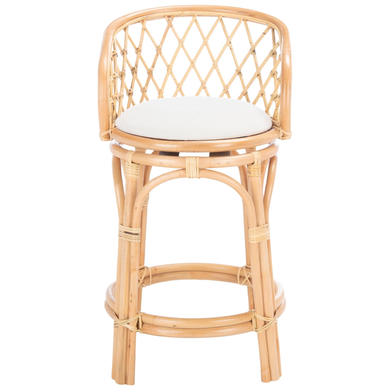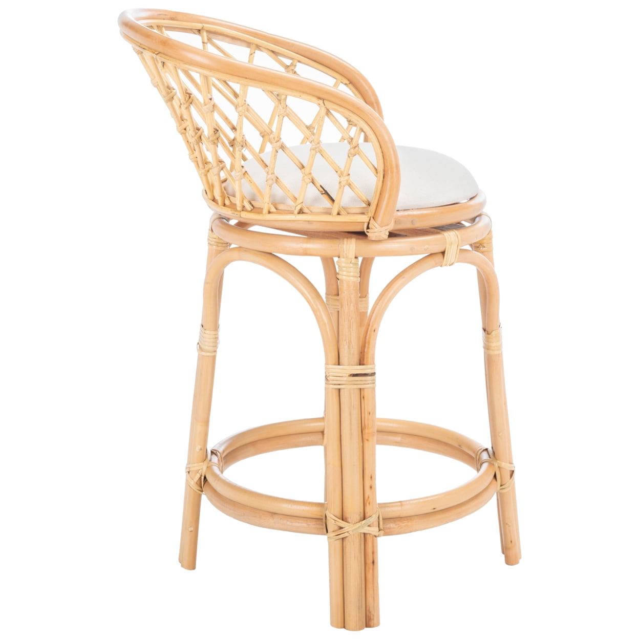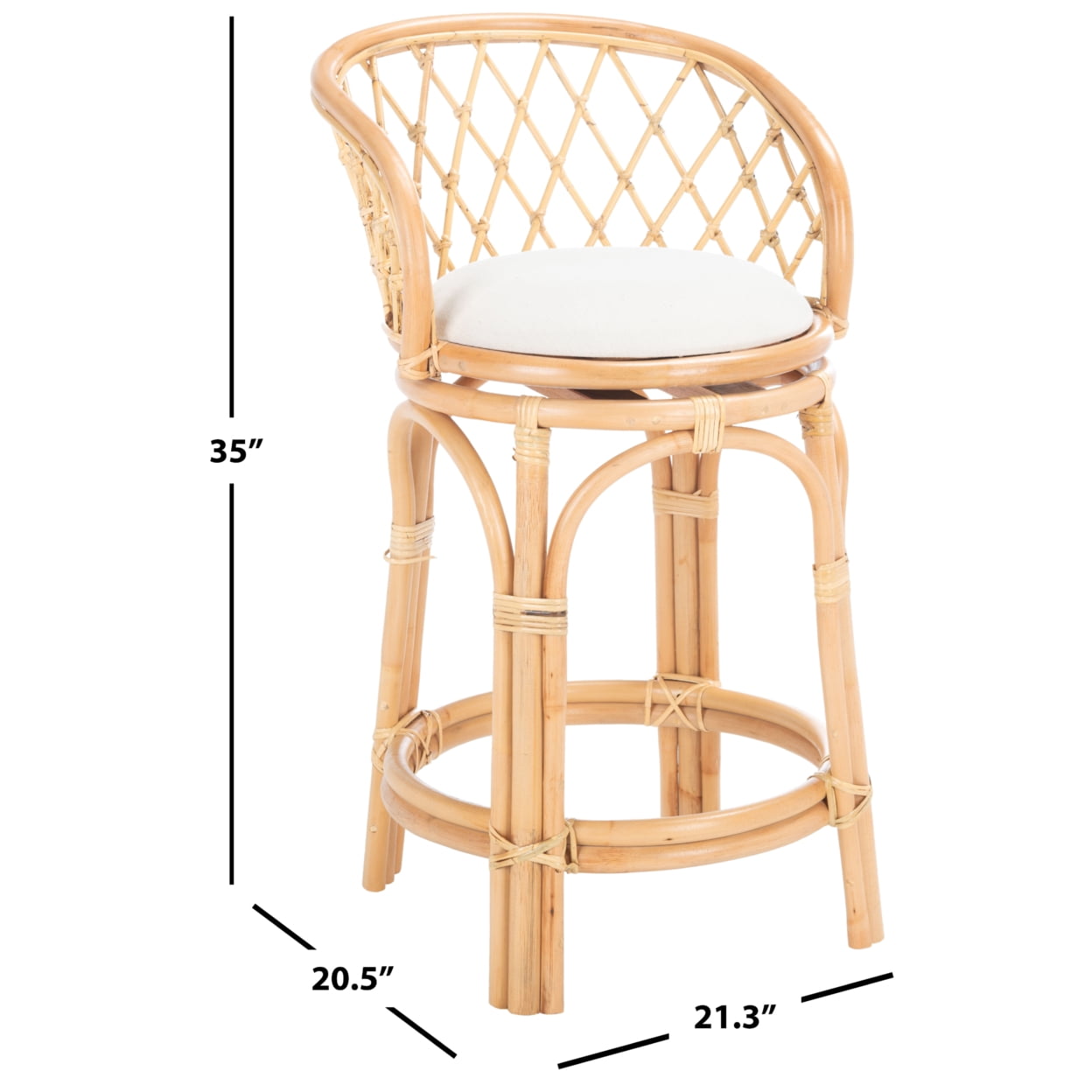 Shop Safavieh at . Save Money. Live Better. SAFAVIEH Yuta Rattan Counter Stool with Cushion, Natural/White (21.3 in. W x 20.5 in. D x 35 in. H) Transform your décor into a tropical bungalow with this Yuta Counter Stool. Yuta’s natural woven rattan perfectly displays Yuta’s fine craftsmanship, its open latticed back and subtly curved frame giving any room a touch of airy appeal. A white linen cushion completes the look with style and comfort.