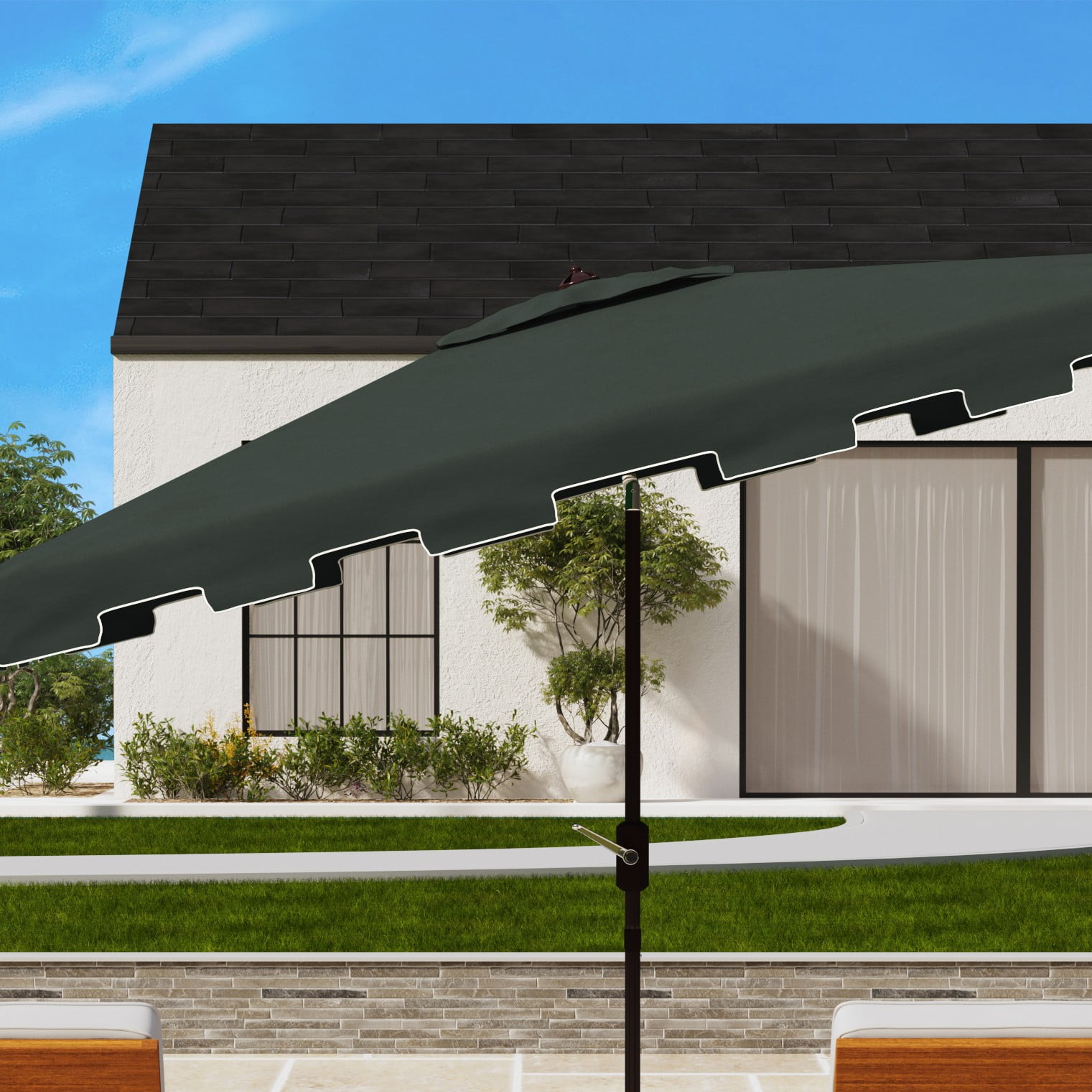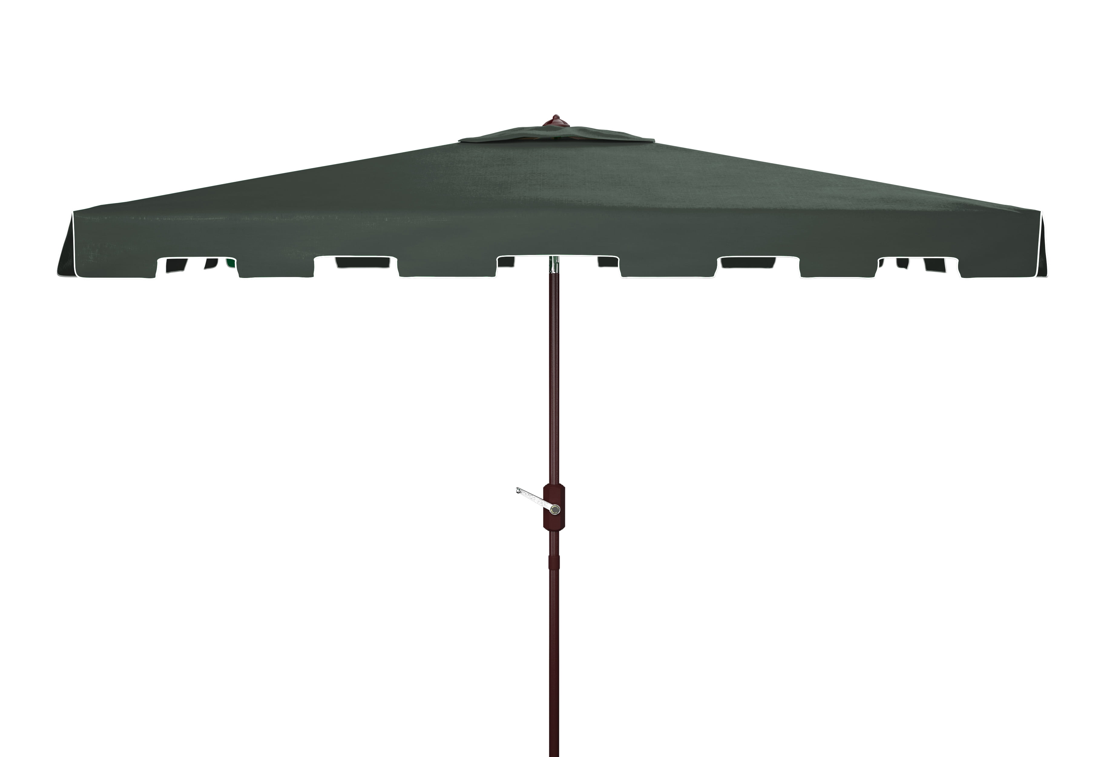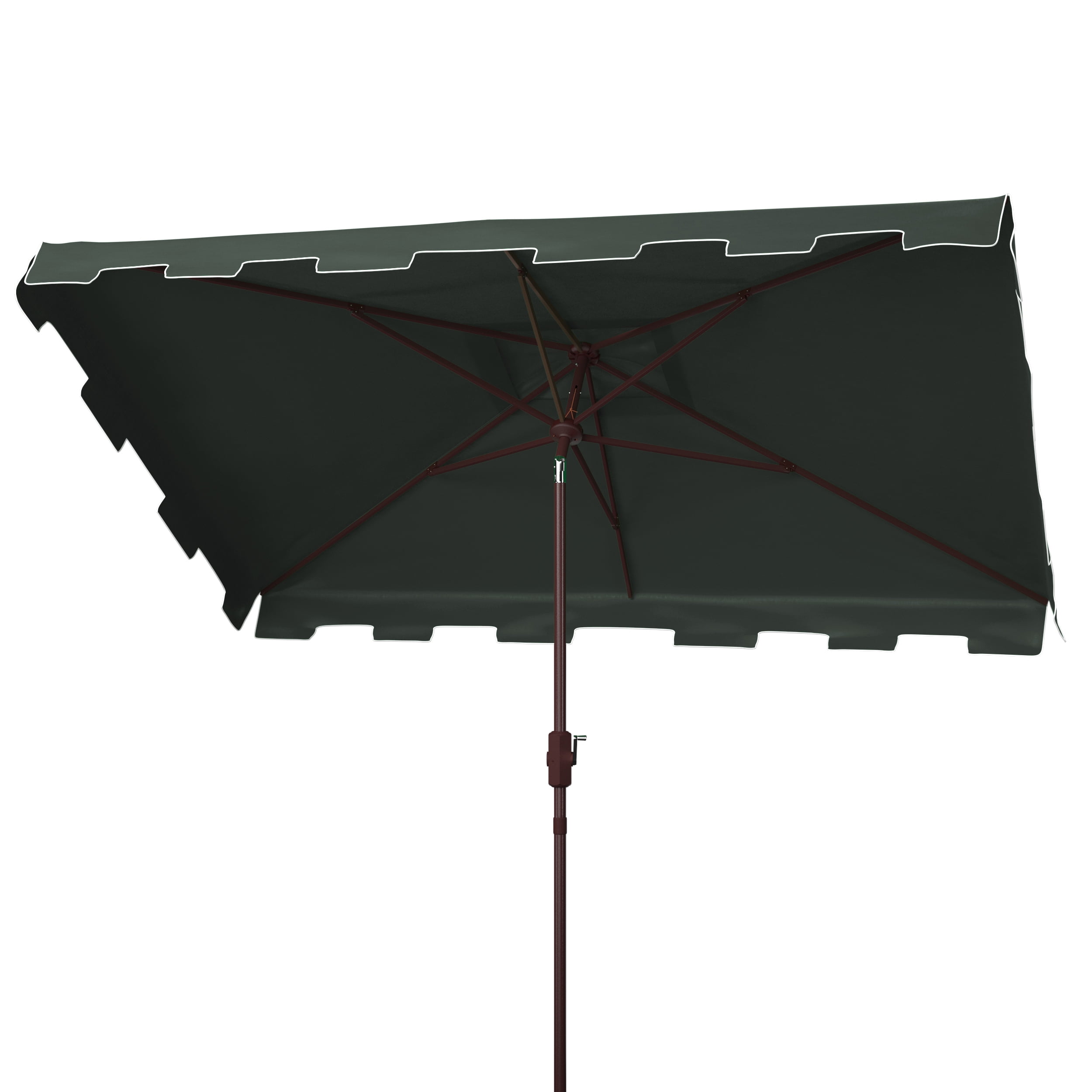 SAFAVIEH Zimmerman 6.5′ X 10′ Market Crank Patio Umbrella, Dark Green/White