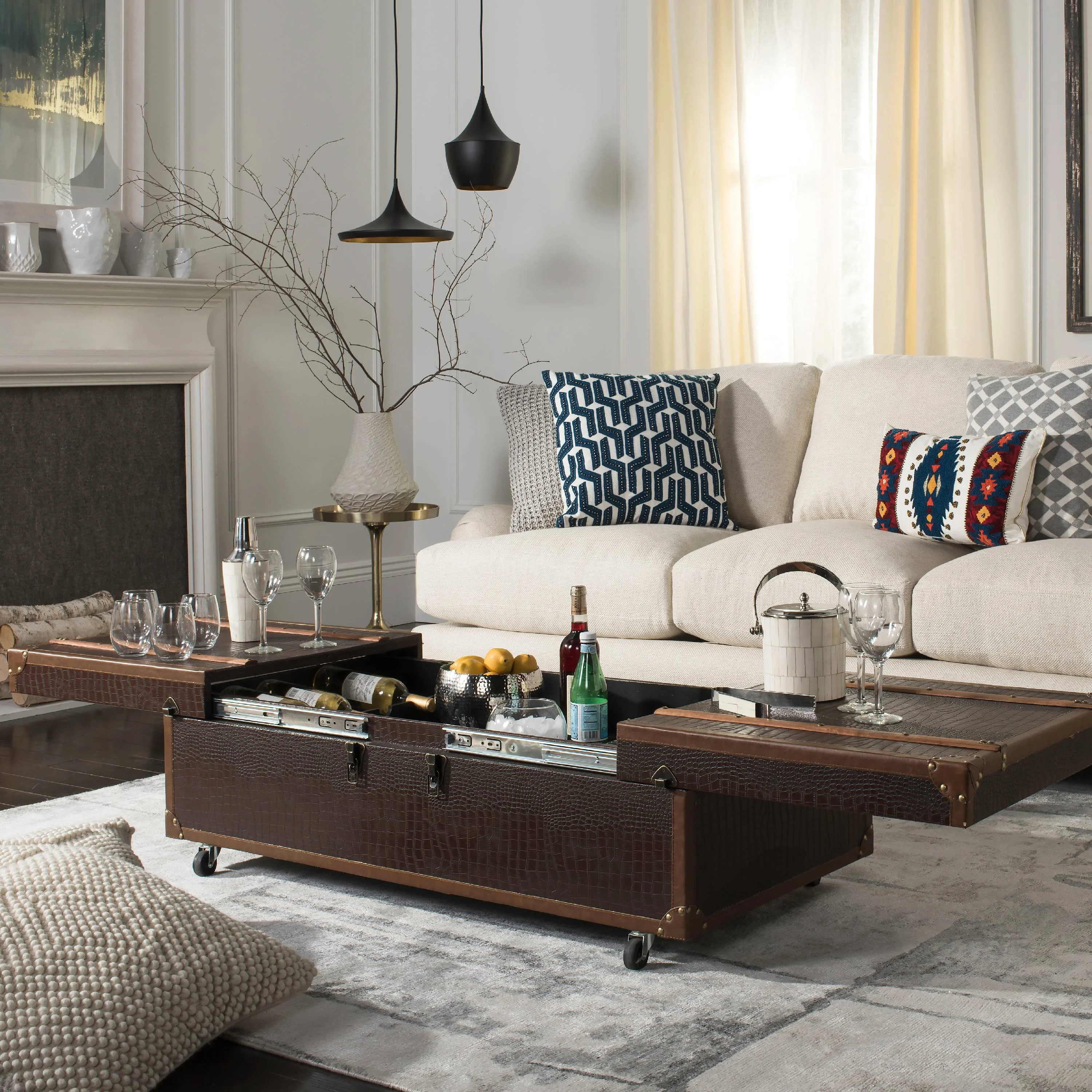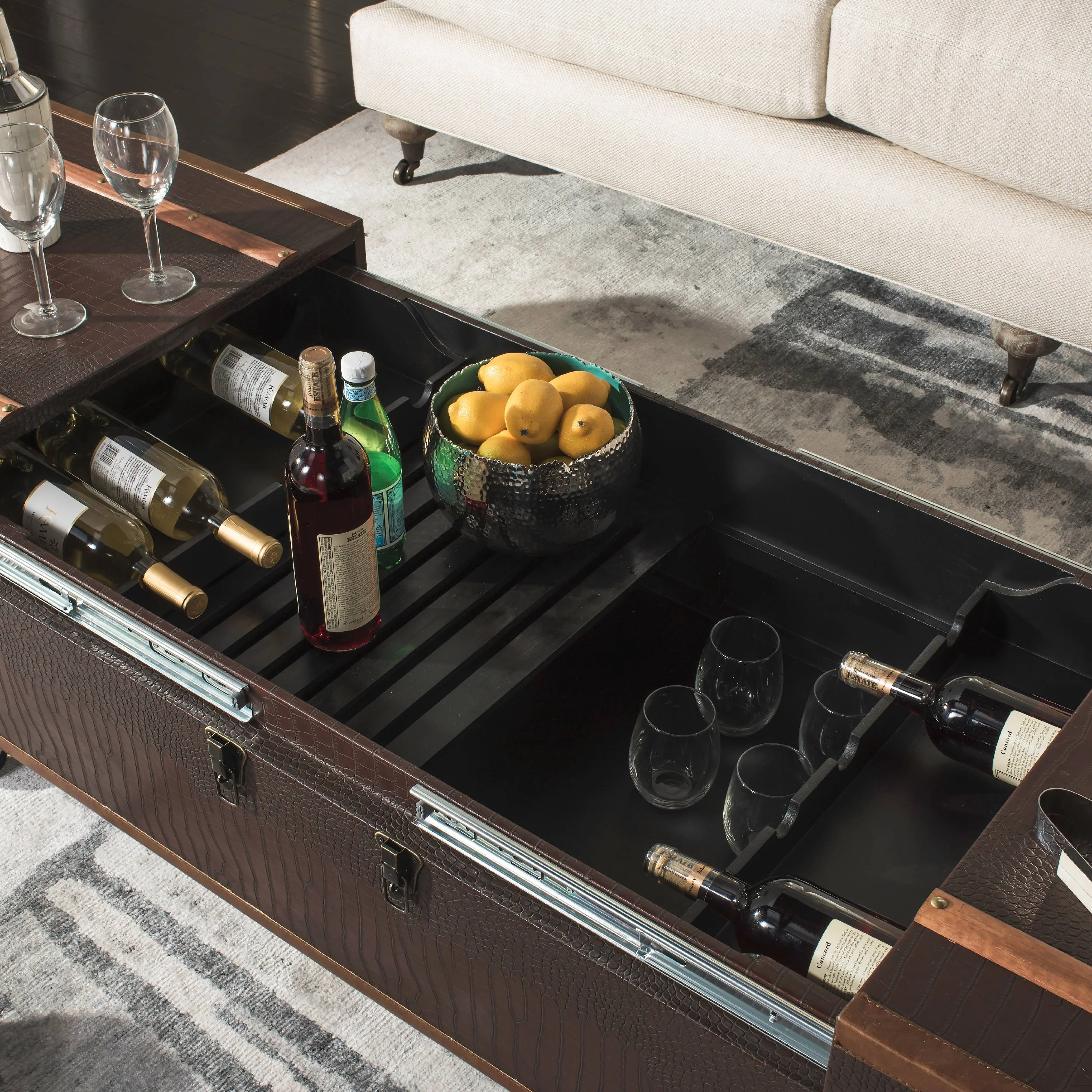 SAFAVIEH Zoe Modern Animal Print Storage Coffee Table with Wine Rack, Brown