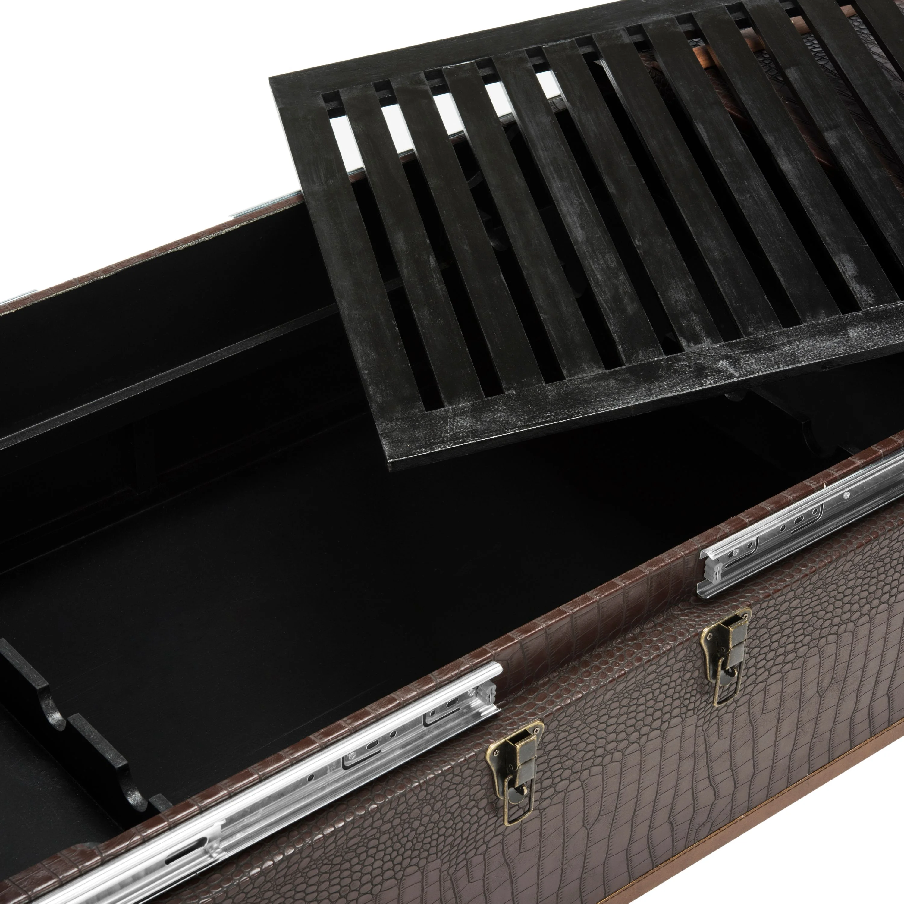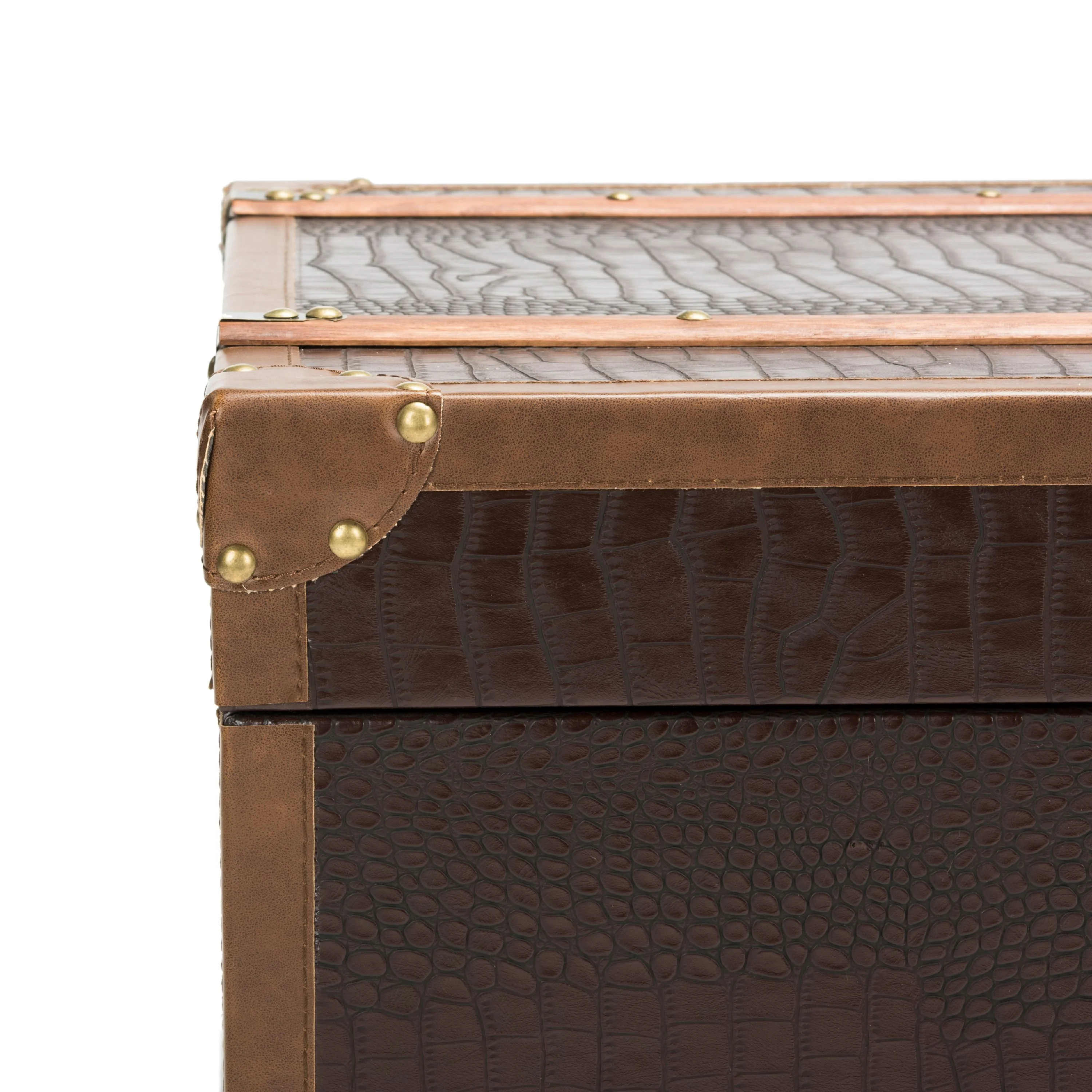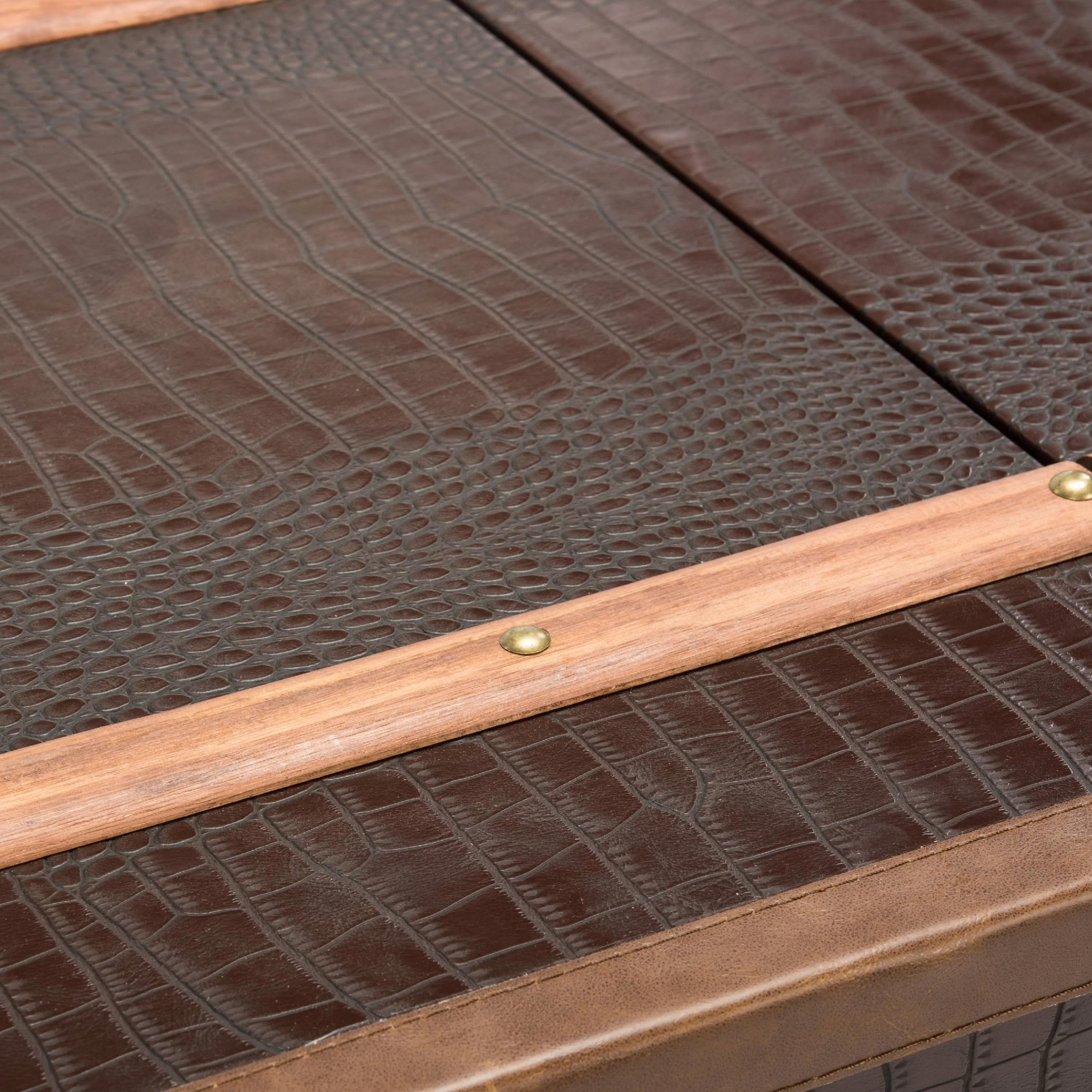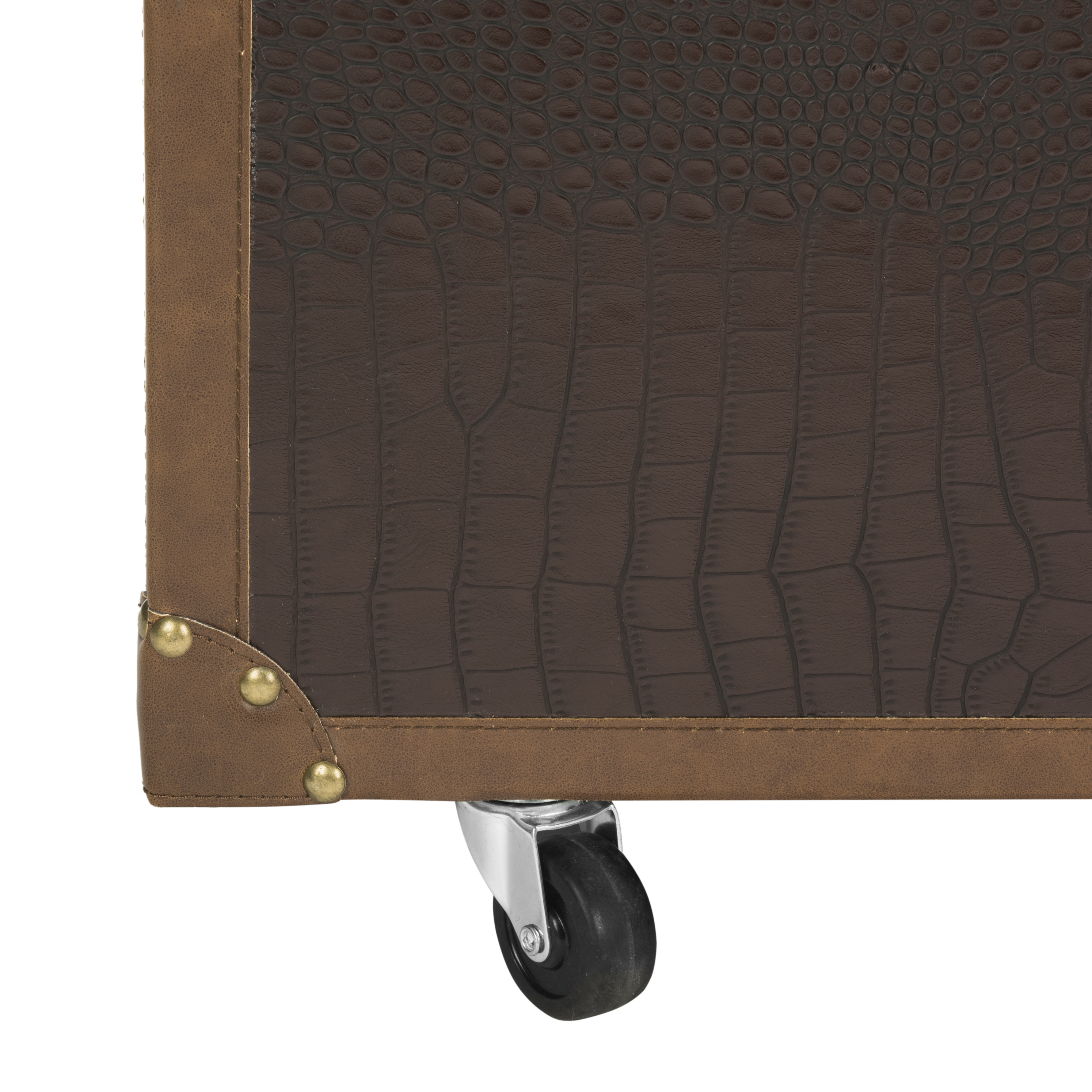 Contemporary design adds a chic look to your home Durable kembat wood frame for long lasting longevity No assembly needed Color: Brown Frame Color: Brown Table Top Color: Brown Finish Surface Treatment: Faux Leather Metal Color: Copper/Silver Assembled dimensions: 47.2 in. W x 23.6 in. D x 47.2 in. H Fabric Color: Brown Leg Height: 2.3 in. Drawer Dimensions: 10.6 x 19.3 Features 2 shelves for ample storage Item Weight: 67.5 lbs. Accessories in life style photo(s) not included Please note: The images and product dimensions on our website are as accurate as possible. Due to differences in computer monitors, some furniture colors may vary slightly. Lengths and widths may vary from the published dimensions. We do our best to provide you with an exact measurement, but please be advised that some variation exists. Dust regularly with a soft, dry cloth. Never use oiled or treated cloths on lacquered finishes. Some finishes can be wiped with a damp (not wet) cloth, followed at once by rubbing with a dry cloth to remove fingerprints and smudges. For persistent spots, gently clean with a soft cloth and a solution of water and mild soap, make sure to wipe dry. Use adhesive felt pads, coasters and placemats to protect your furniture.