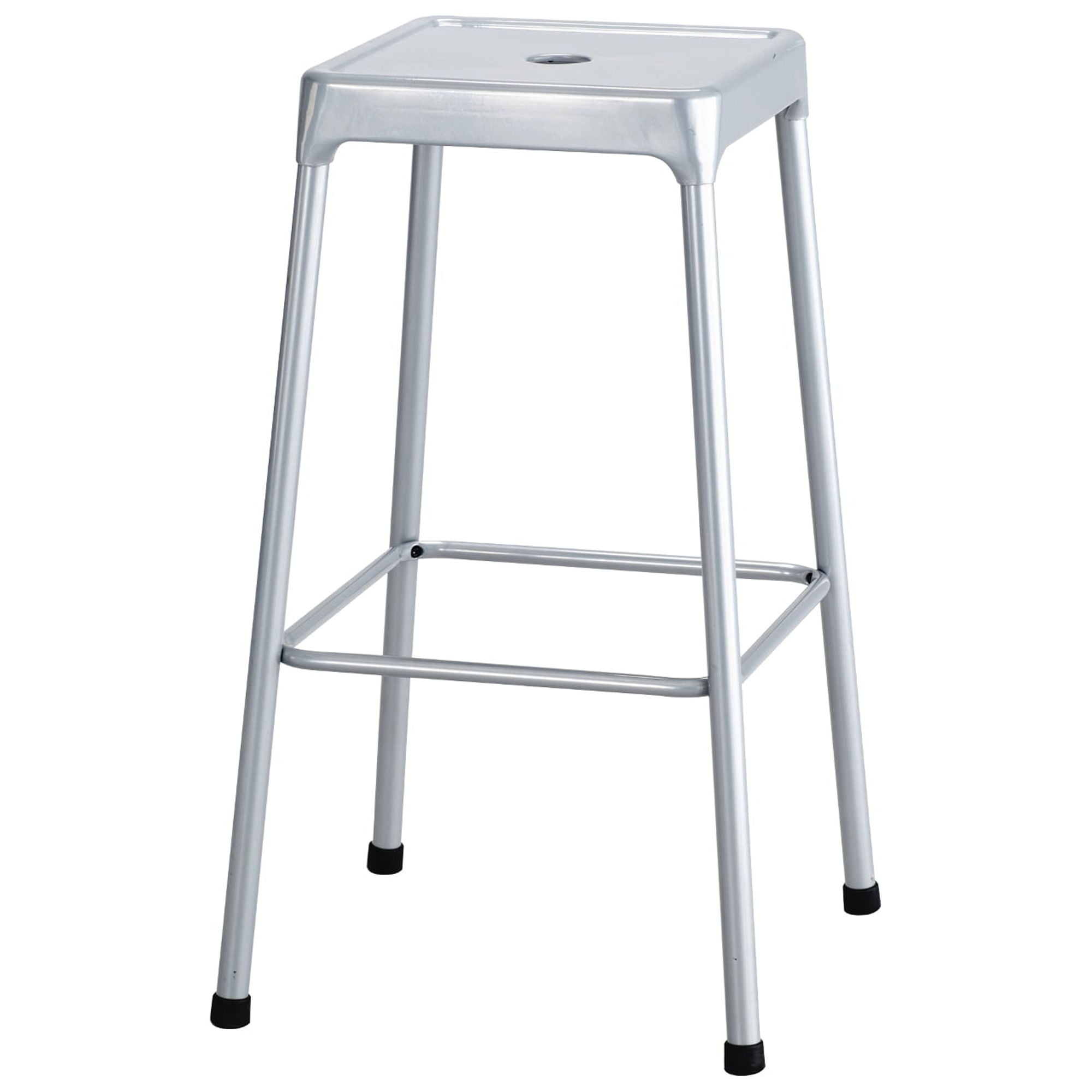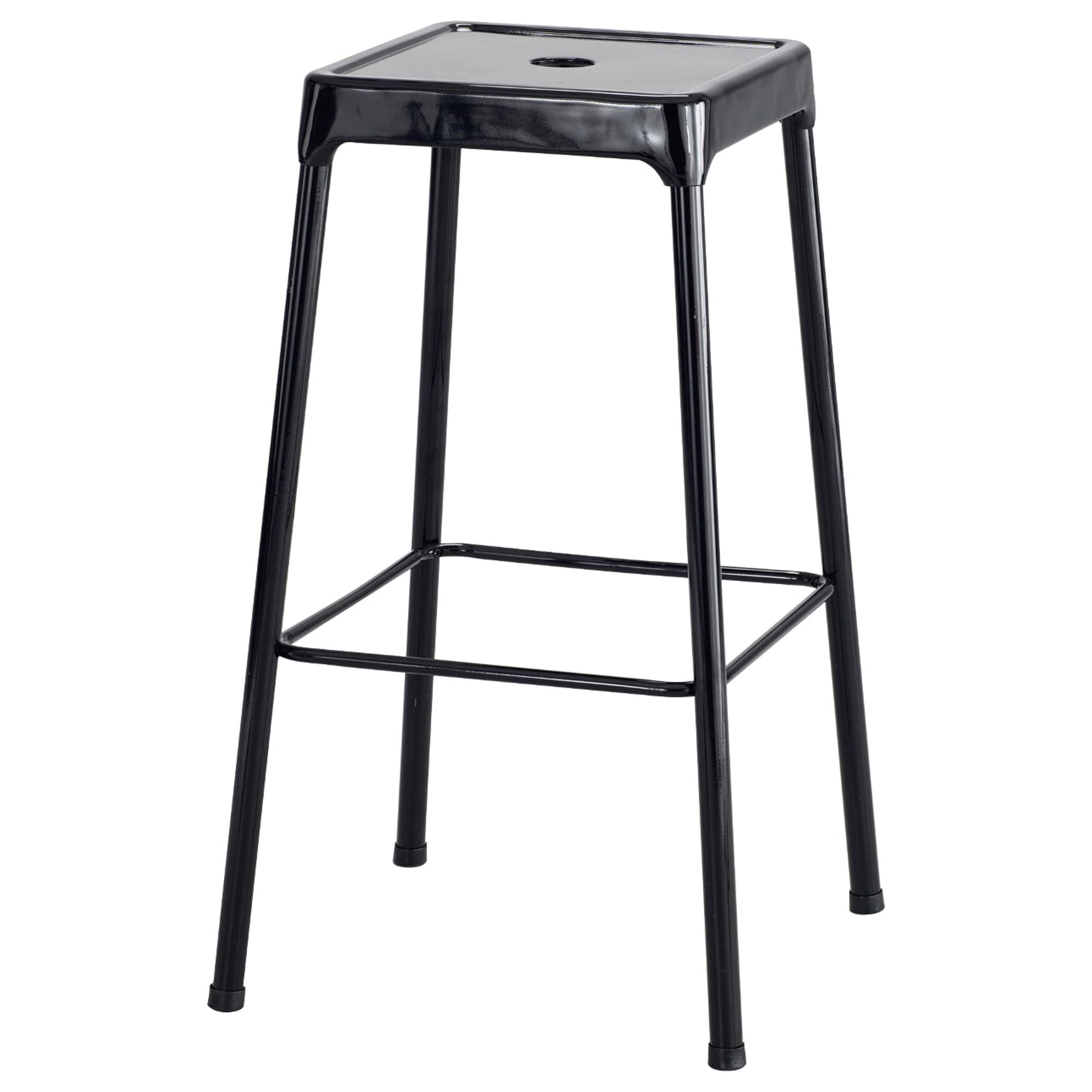 Sometimes, form and function work extremely well together. Such is the case with our Steel Stools. With solid steel construction, a built-in footring that may help reduce fatigue, nylon glides and a glossy powder coat finish for durability, these stools perform as great as they look. Features: Finish: Black Bar-height stool (29″H) Material: Nylon All steel construction Eco-friendly powder coat finish Glossy finish that is easy to clean Includes foot ring Nylon glides Ships RTA with easy assembly Stack 2-3 high Light and easy movable Use hole in seat to easily lift chair Comes with plastic leg cap and self-leveling feet Specifications: Product Weight: 9 lbs Upholstery Material: ABS (Acrylonitrile Butadiene Styrene) Product Dimensions: 29″ H x 17.75″ W x 17.75″ D Target Audience: All Ages Surface Material: unupholstered Assembly details: adult assembly required, tools not provided Maximum Seating Capacity: 1 Seat height maximum floor to seat top: 29 inches Seat height minimum floor to seat top: 29 inches Adjustability: non-adjustable Furniture Subtype: Bar stools Weight Capacity: 250 lbs.