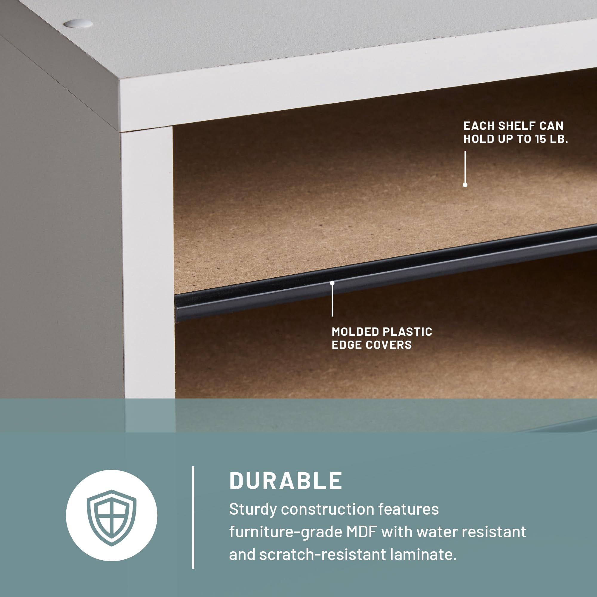 Versatility is very useful! Cabinetry is formed from compressed wood with laminate finish with a solid fiberboard back for strength and rigidity. Strong hardboard shelves form basic letter-size compartments that adjust to increase the size of individual compartments for storage of books, 3-ring binders, or personal mementos. Includes a metal rod adapter to store and organize CD’s in the bottom two compartments. Black plastic molding complements finish while doubling as a convenient labeling area (labels are included). Features: Tools Required: Yes Compartment Capacity: 15 lbs. Compartment Quantity: 36 Compartment Adjustability: 2 1/2″ increments Compartment Size: 9″w x 11 3/4″d x 2 1/2″h Material Thickness: 5/8″ Paint / Finish: Laminate Shelf Quantity: 32 Stackable: Yes, 3 high/up to 72 compartments Material(s): Corrugated Fiberboard (back), Furniture Grade Particleboard, Solid Fiberboard (back), Hardboard (shelves) Fits Paper Size(s): Letter Assembly Required: Yes Color: Grey Finished Product Dimensions: 39 1/4″w x 11 3/4″d x 24″h Finished Product Weight: 45 lbs.