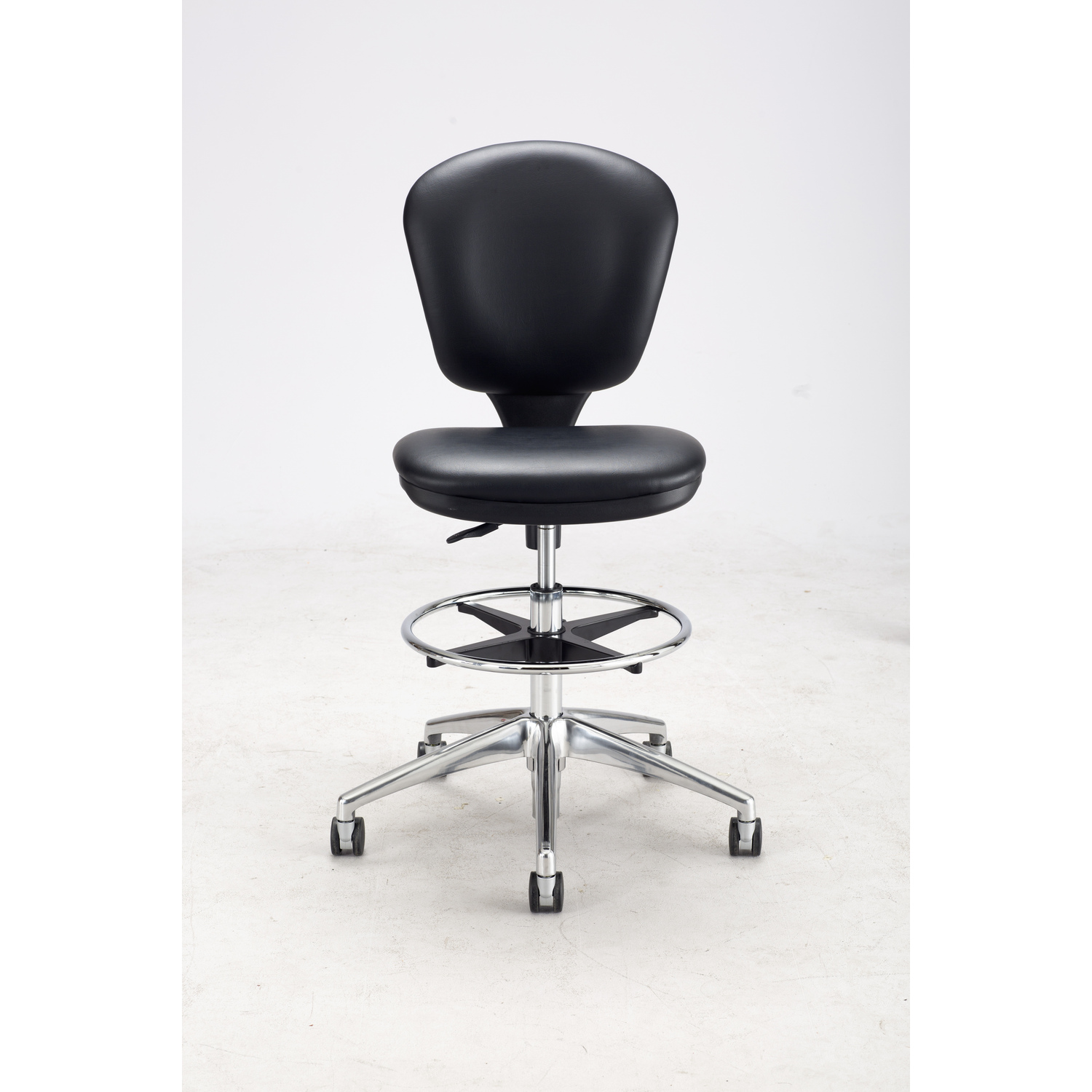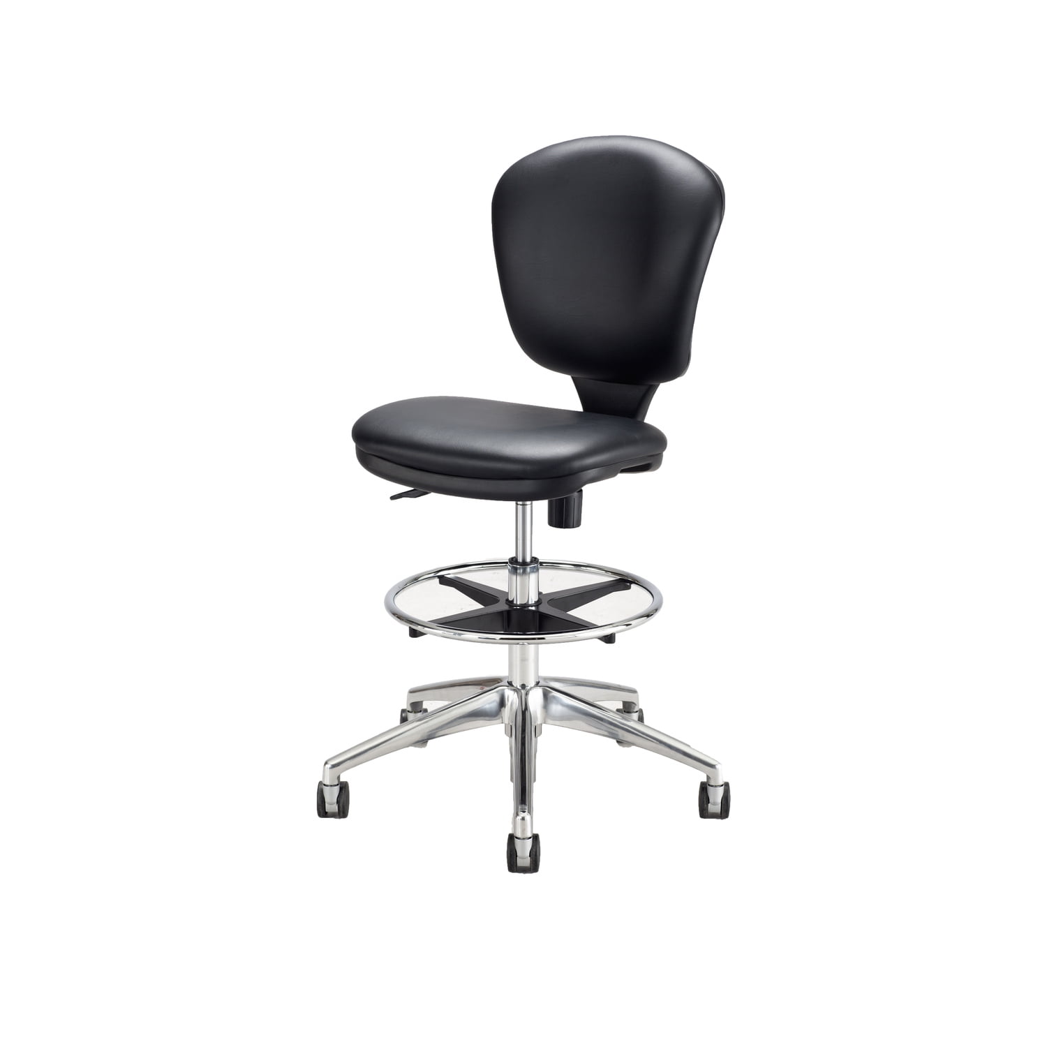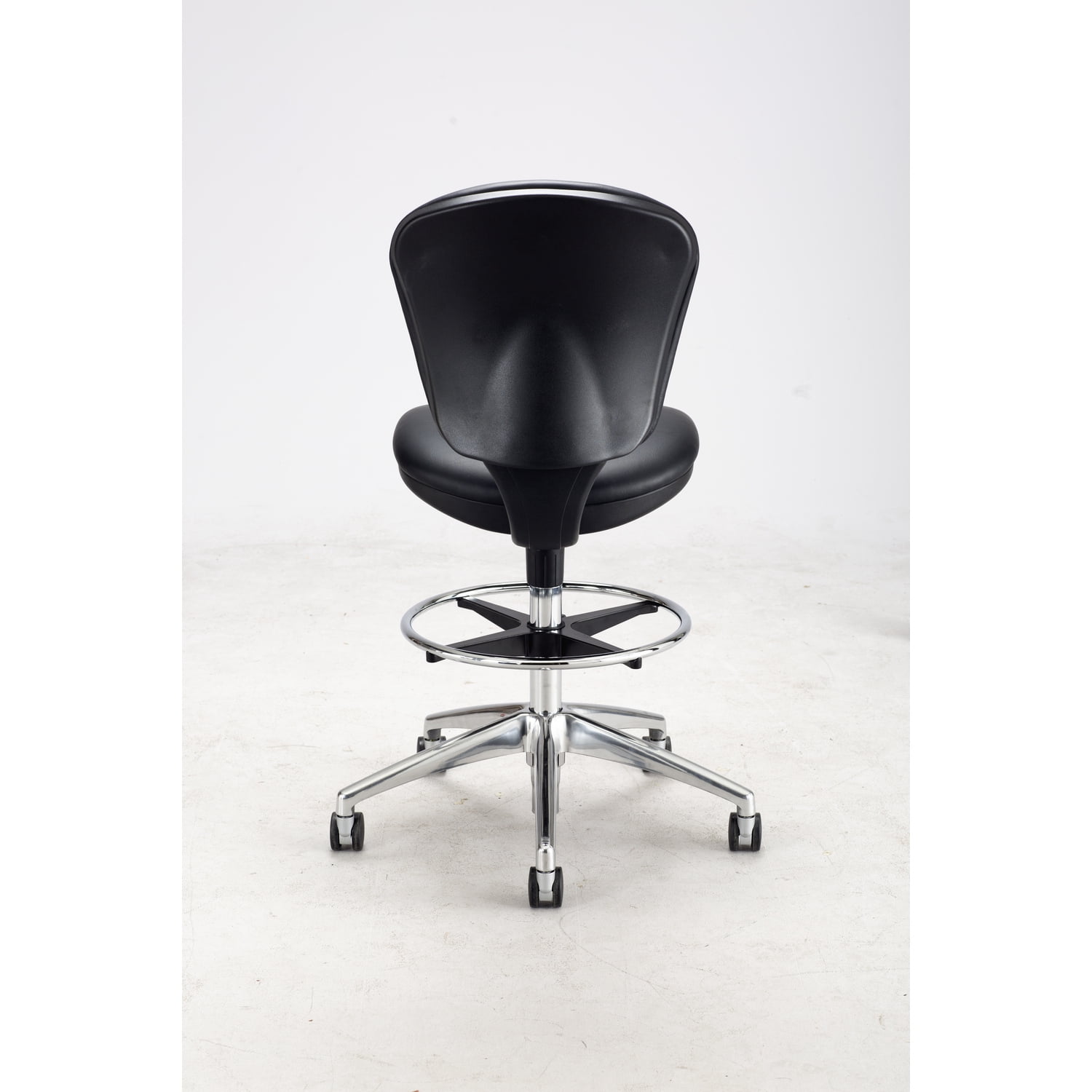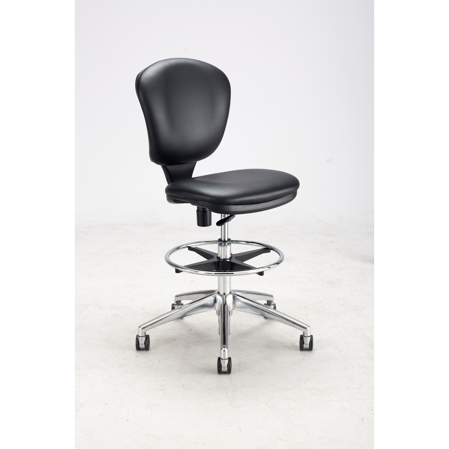 Drafting chair (extended height office chair) Form fitting contoured back and thickly cushioned seat and back Adjustable arm set (3495) sold separately Aluminum 26″ diameter, five-star base with polished finish Two-tone dual carpet casters 10-inch Height Range Adjustment Swivel mechanism with adjustable back tilt tension accommodates users of all sizes