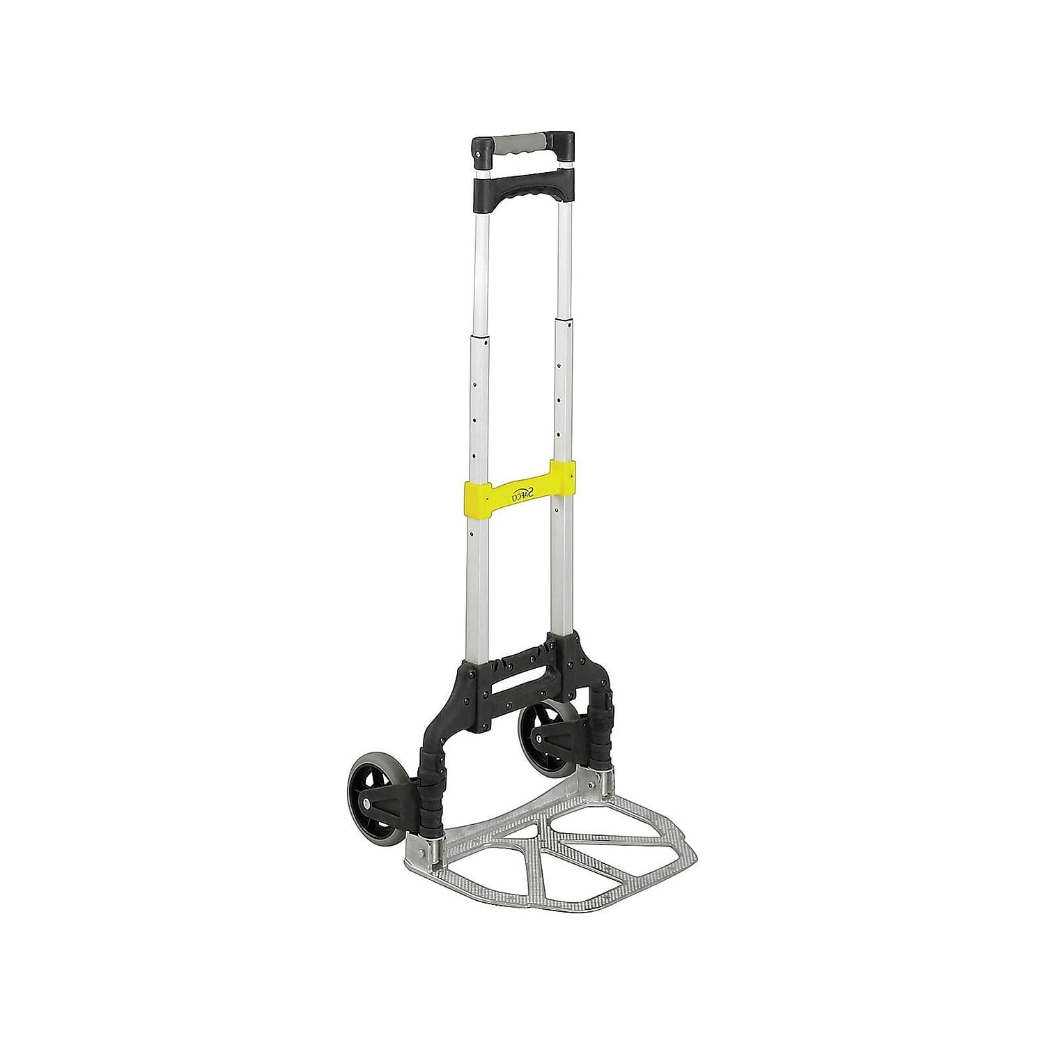 Material(s): Aluminum Weight Capacity: 110 lbs. Two 5″dia solid rubber wheels Foldable