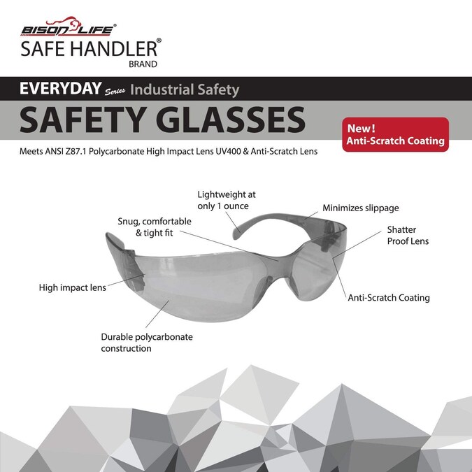 The SAFE HANDLER Crystal Full Color Safety Glasses are completely scratch and Impact resistant, giving you crystal clear vision all the time. With an incredibly long shelf life, these safety glasses are perfect for Industrial, construction, sports, Hunting, Fishing, Painting, and many more daily activities. Designed for both men and women, it offers you a high level of direct and peripheral eye protection from wood, metal, liquid, and other harmful elements. Built for all-around visibility and a high level of direct and peripheral eye protection from flying particles or debris. Exceeds ANSI Z87.1 standards. Deep, universal-fit temples provide full brow and side protection with large side shields. Including, but not limited to Industrial safety, dental industry, carpentry and woodworking, lab work, painting, sports, construction, etc. Available in assorted colors, fit adults, teens, and older children.