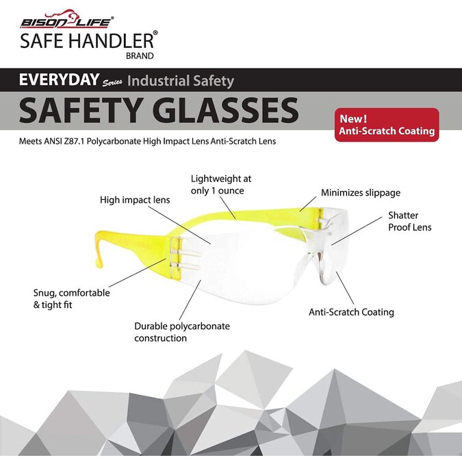 The SAFE HANDLER Crystal Safety Glasses from Safe Handler is design in eyewear safety, combining low-cost with all-around impact protection. These innovative and ergonomic glasses with a curved structure minimize slippage, and you can enjoy sports and outdoor activities at best performance with no unnecessary distractions or discomfort. Protect while featuring a clear, anti-scratch coating. The snug, comfortable and tight fit helps minimize slippage and provides complete brow protection. Perfect for Various Environments like Industrial safety, dental industry, carpentry and woodworking, etc. Available in pink color, One Size Fits most (144-Pairs).