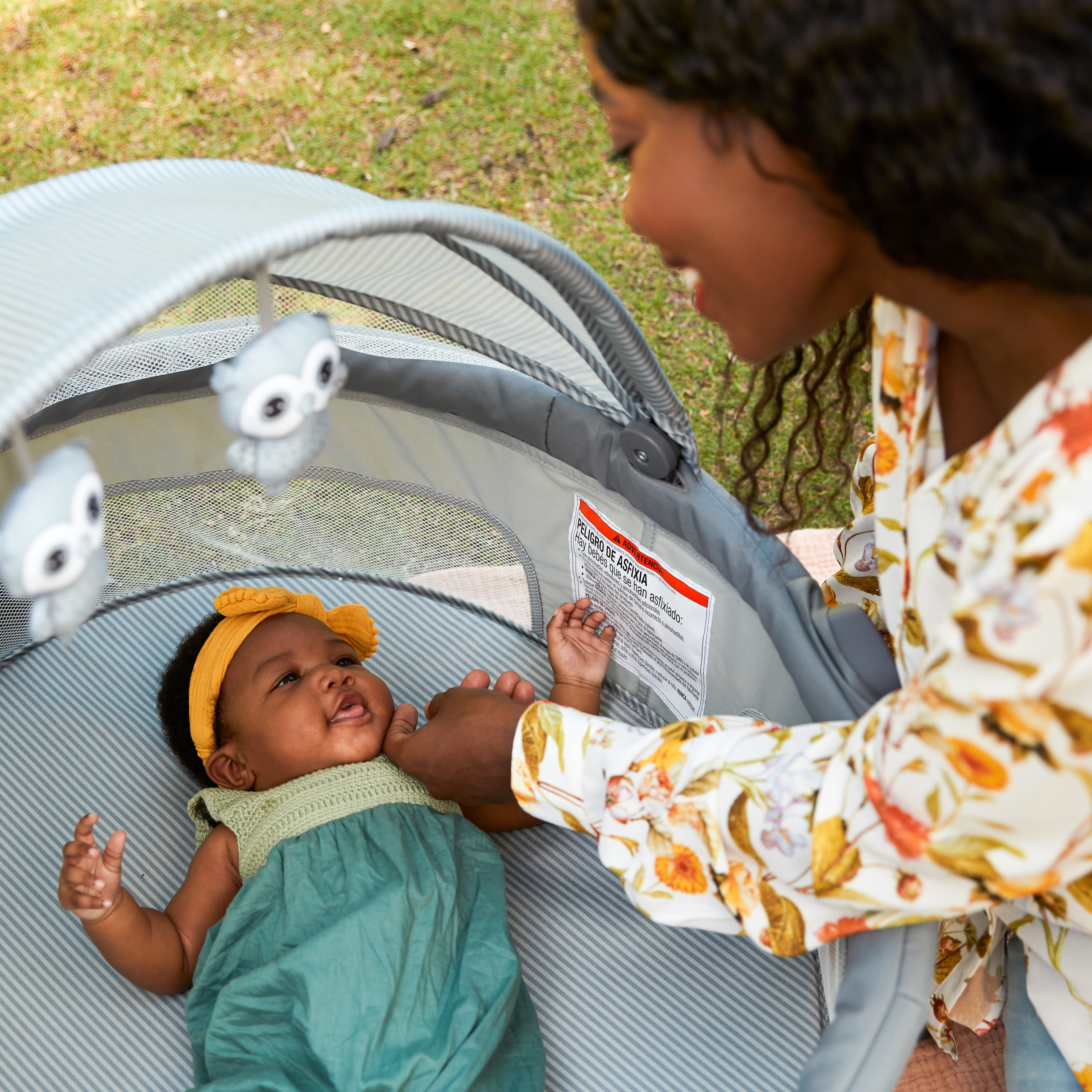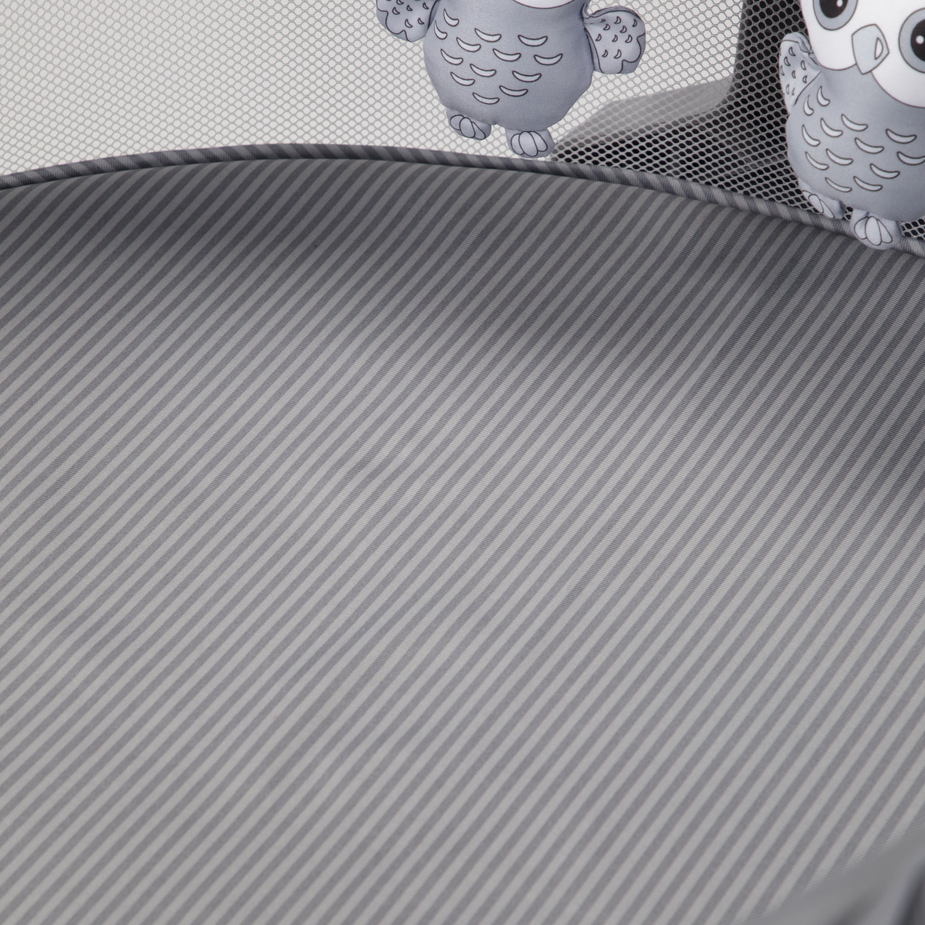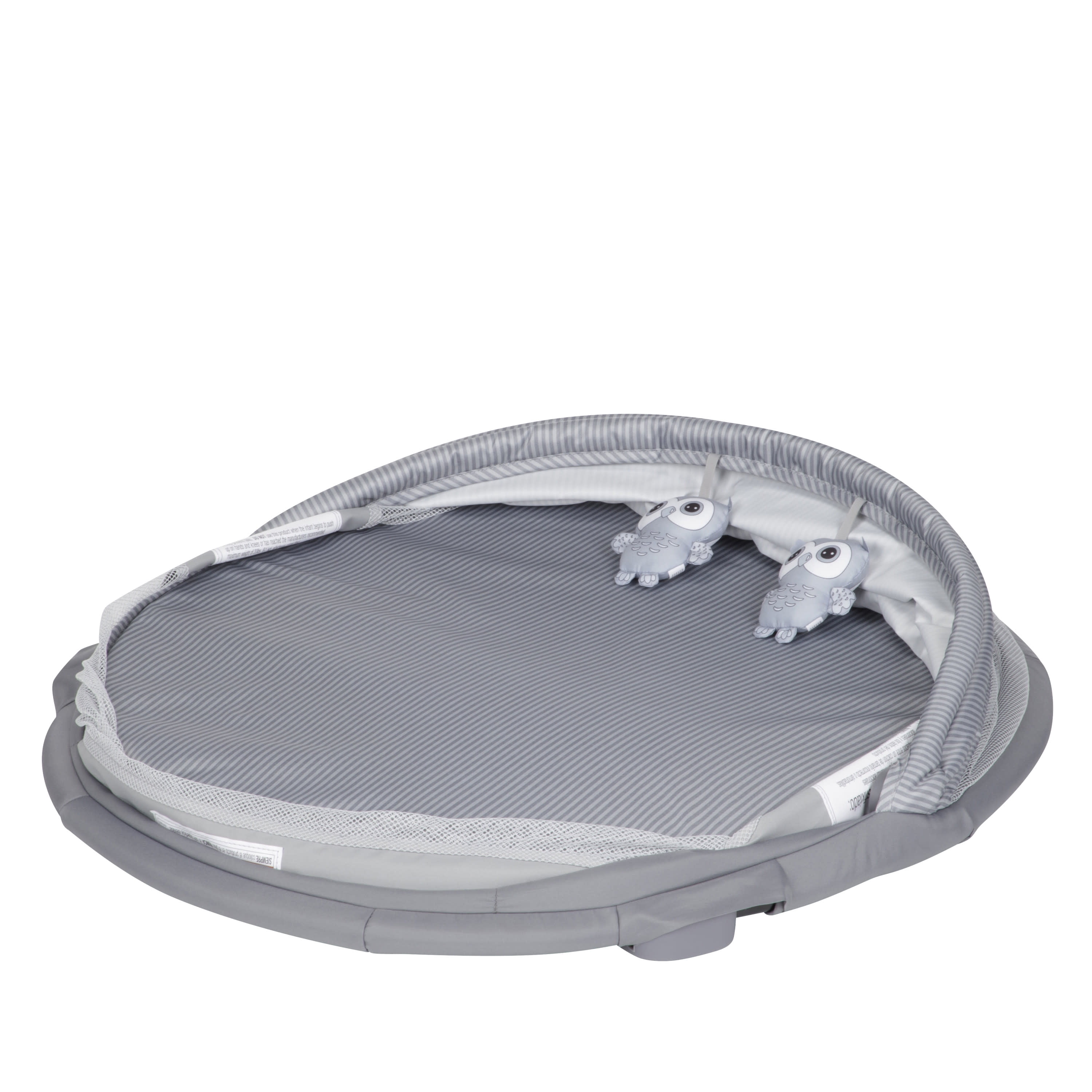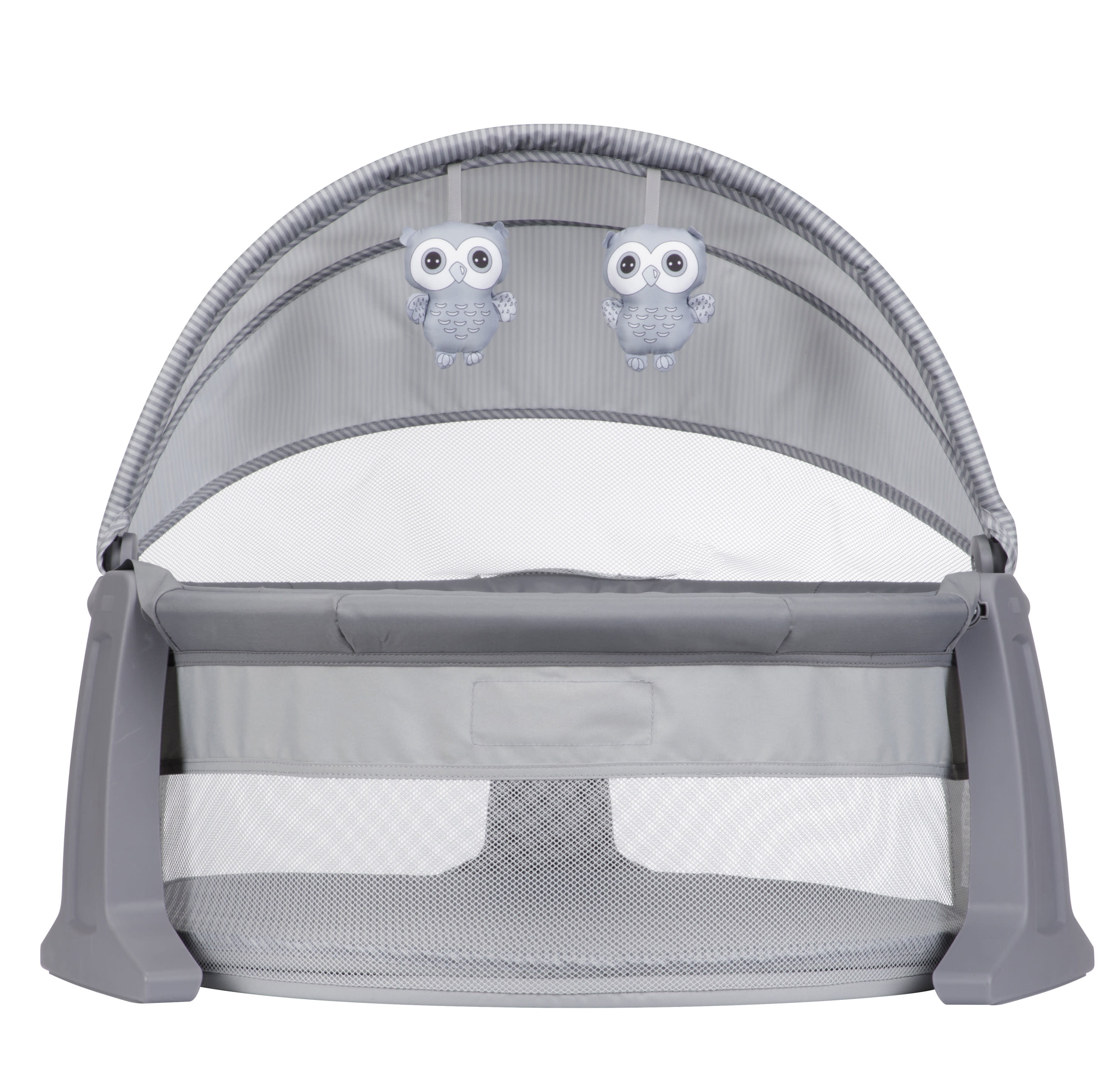 Foldable legs for stability Portable—great for travel and outdoors Semi canopy for breathability and coverage Comfortable mattress pad Plush hanging toys for entertaining infants Easy-to-remove mattress pad and spot clean with a damp cloth Fits babies up to 20 lbs. Designed with a firm, flat sleeping surface that meets the Consumer Product Safety Commission’s recommendations for safe sleep Color: Dreamscape Assembled dimensions: 9.46 x 24.03 x 29.76 Assembled weight: 7.94 lb