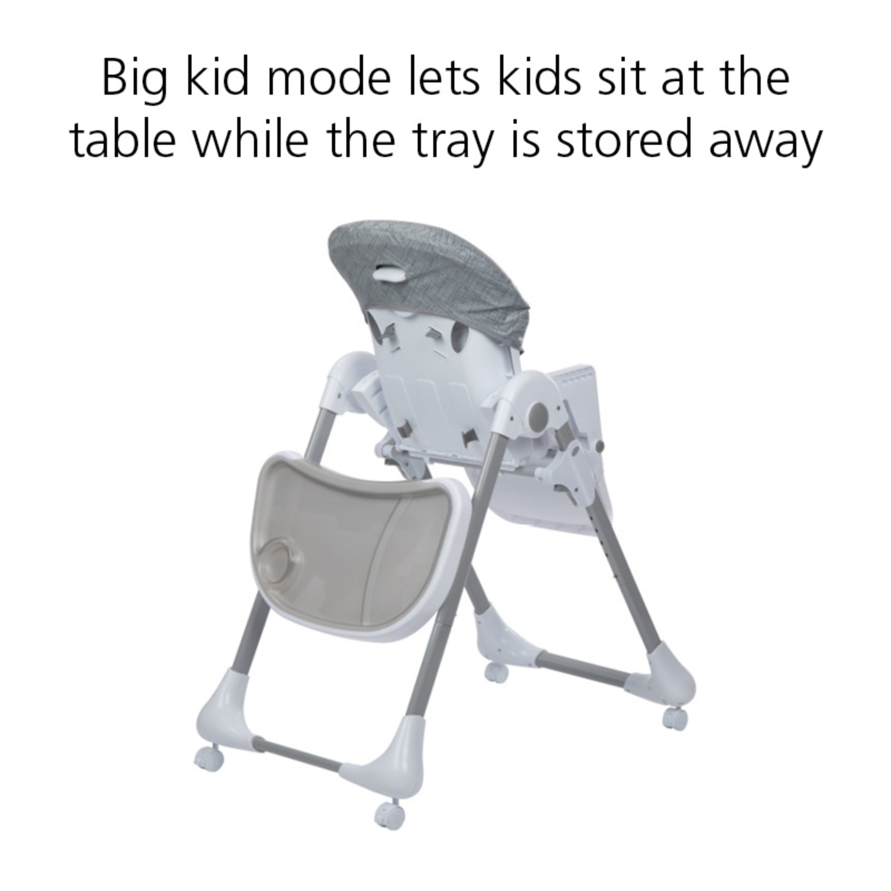 The Safety 1st Grow and GoTM 3-in-1 High Chair is a simple, yet versatile, parent’s must-have designed to grow with your little one. It can easily be used in three ways: infant recline, toddler high chair, and child seat. These 3 modes of use take your baby from their first spoonful of solid food, to starting to feed themselves, to rolling up to the grown-up table for meals with the family. The Safety 1st Grow and Go 3-in-1 High Chair creates comfort and stability as your little one gets bigger. With its 3 recline positions, 6 height positions, and the adjustable footrest, you can easily find the right fit for your kiddo’s changing stages of development. Mealtime messes are easy to clean up, too. When snacks and meals are over, quickly wipe up the mess, toss the insert tray in the dishwasher, and easily remove the seat cover for a deeper clean. When not in use, you can quickly stow the high chair or take it on the go. It folds compactly for you to store self-standing, or to take with you for the weekend at Grandma and Grandpa’s house. Wherever you are, with the Safety 1st Grow and Go 3-in-1 High Chair, you can enjoy making mealtime memories.