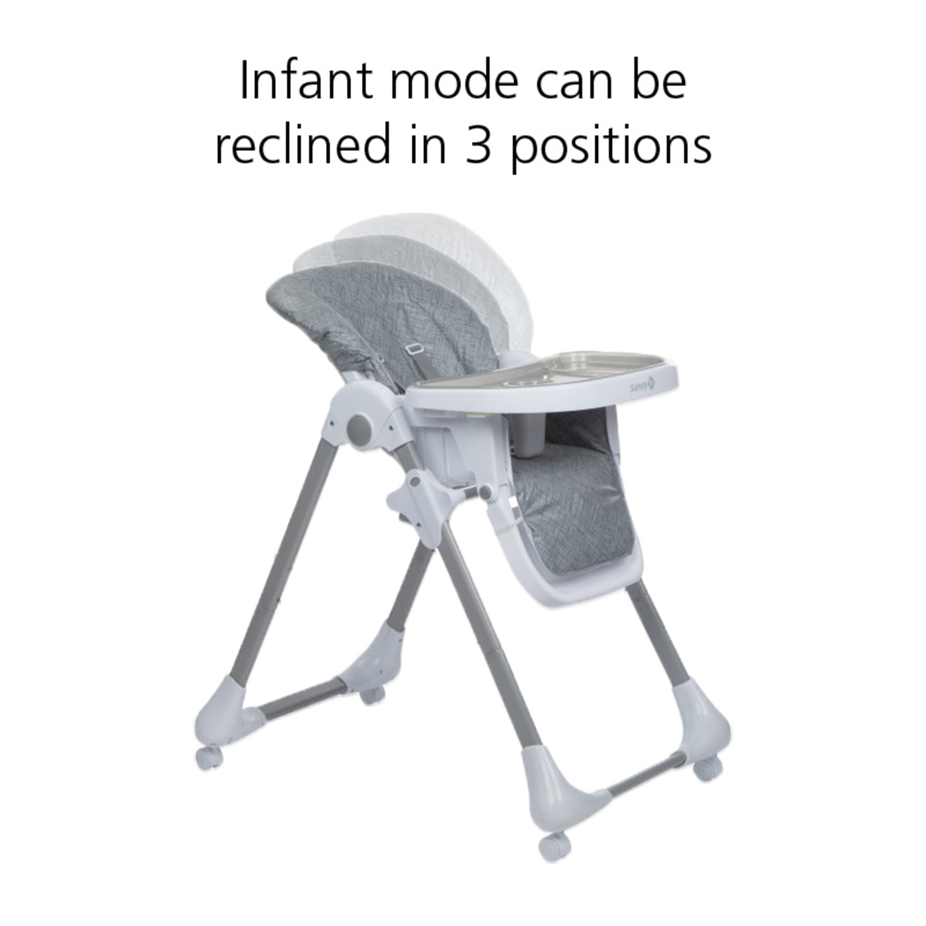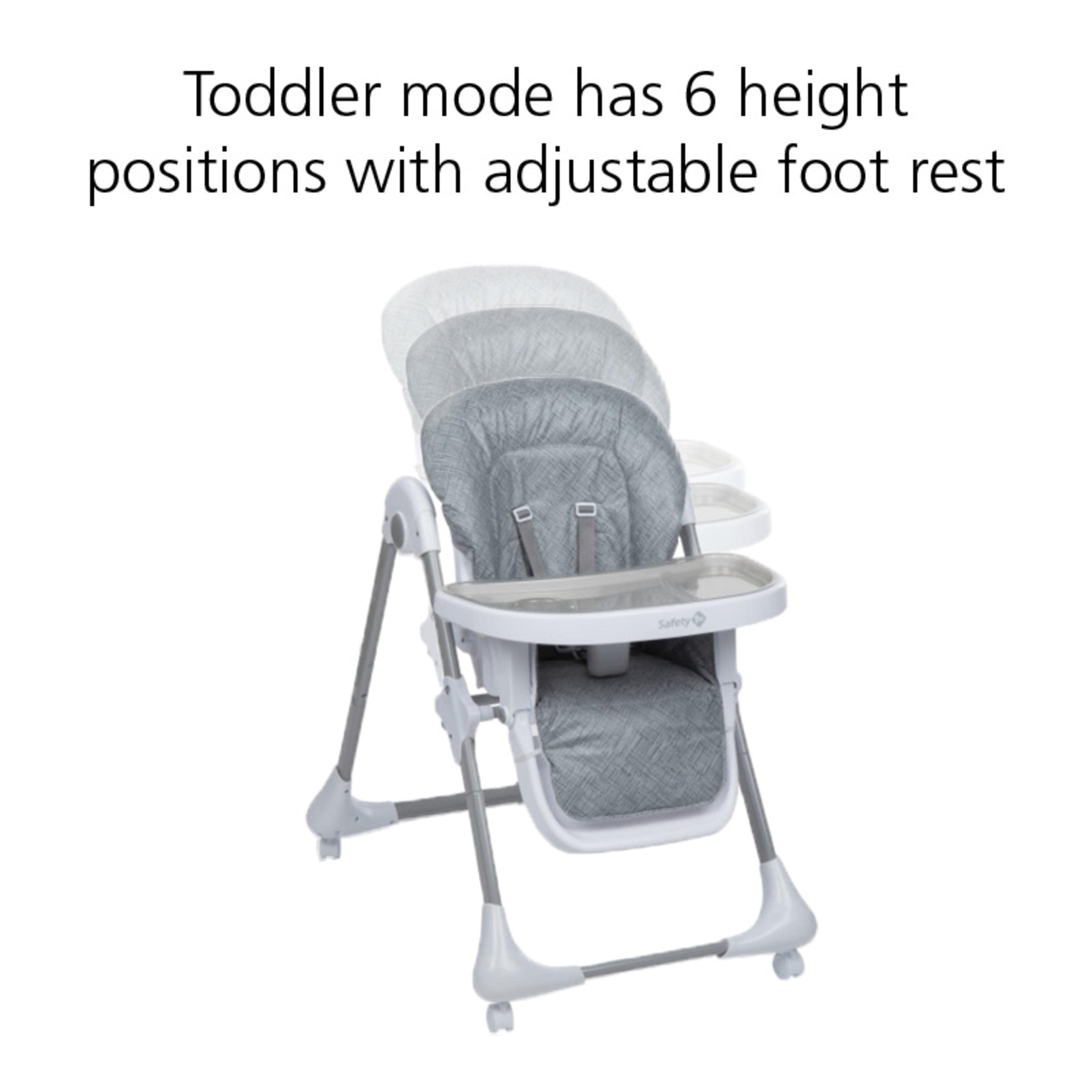 Safety 1st 3-in-1 Grow and Go High Chair, Birchbark, Toddler 3 Modes of Use: Infant Recliner, Toddler High Chair, and Child Seat Grows with your child: 3 recline positions, 6 height positions, adjustable footrest Easy-to-remove, dishwasher-safe insert tray Seat cover removes for a quick and thorough wipe down Compact fold, and stands on its own for storage 5-point harness 4 wheels lock for stability
