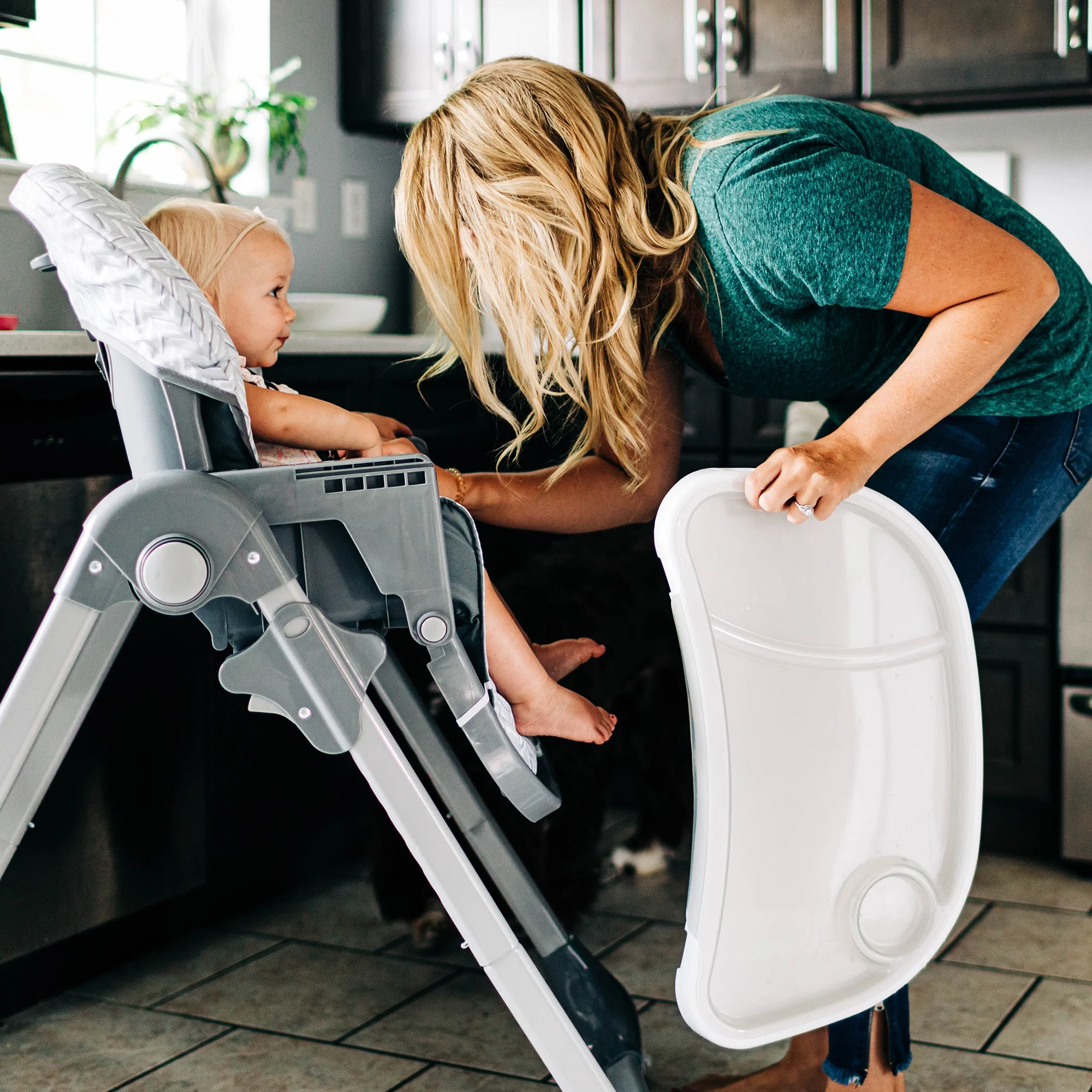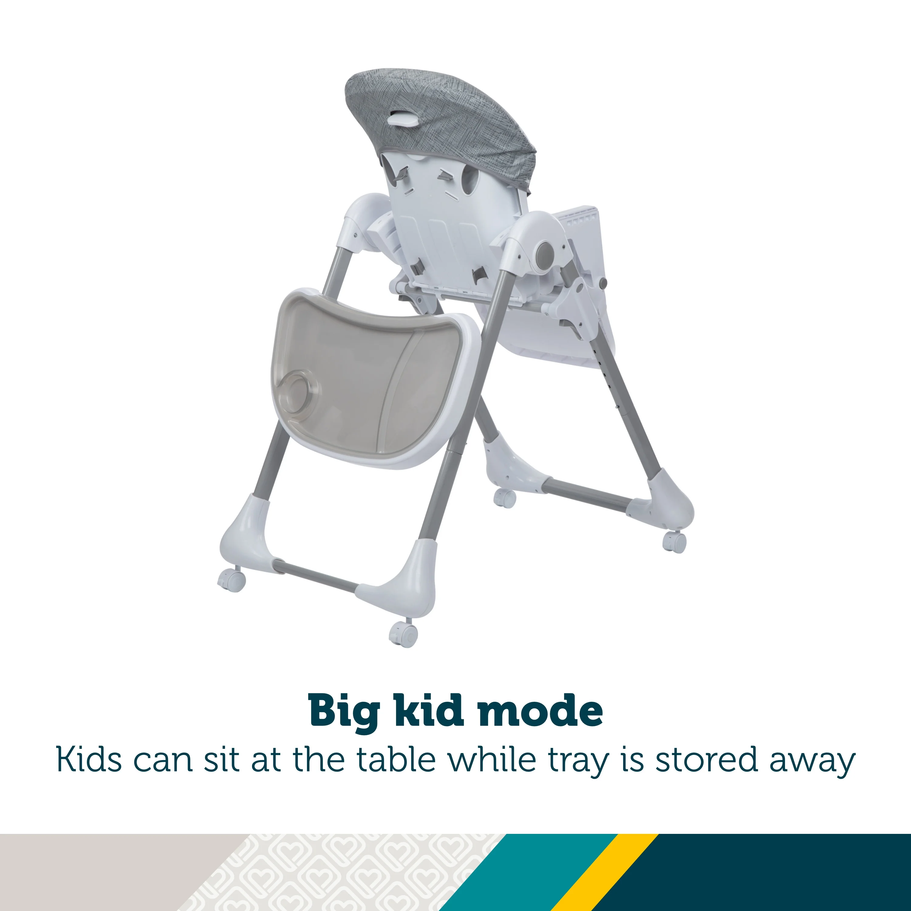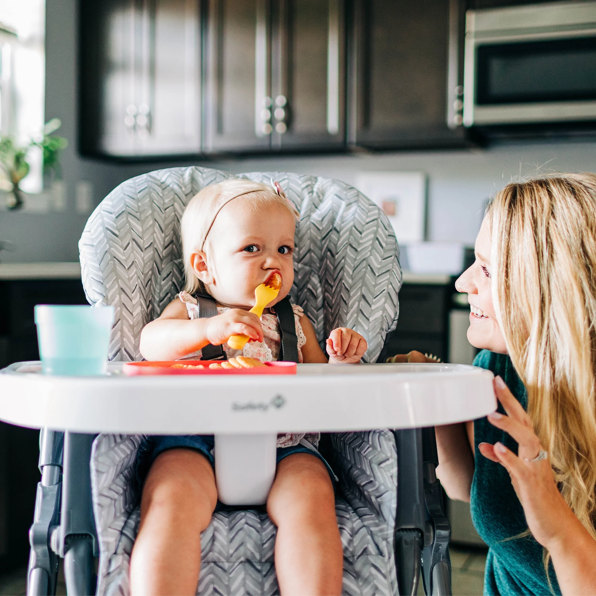 The Safety 1st Grow and GoTM 3-in-1 High Chair is a simple, yet versatile, parent’s must-have designed to grow with your little one. It can easily be used in three ways: infant recline, toddler high chair, and child seat. These 3 modes of use take your baby from their first spoonful of solid food, to starting to feed themselves, to rolling up to the grown-up table for meals with the family. The Safety 1st Grow and Go 3-in-1 High Chair creates comfort and stability as your little one gets bigger. With its 3 recline positions, 6 height positions, and the adjustable footrest, you can easily find the right fit for your kiddo’s changing stages of development. Mealtime messes are easy to clean up, too. When snacks and meals are over, quickly wipe up the mess, toss the insert tray in the dishwasher, and easily remove the seat cover for a deeper clean. When not in use, you can quickly stow the high chair or take it on the go. It folds compactly for you to store self-standing, or to take with you for the weekend at Grandma and Grandpa’s house. Wherever you are, with the Safety 1st Grow and Go 3-in-1 High Chair, you can enjoy making mealtime memories.