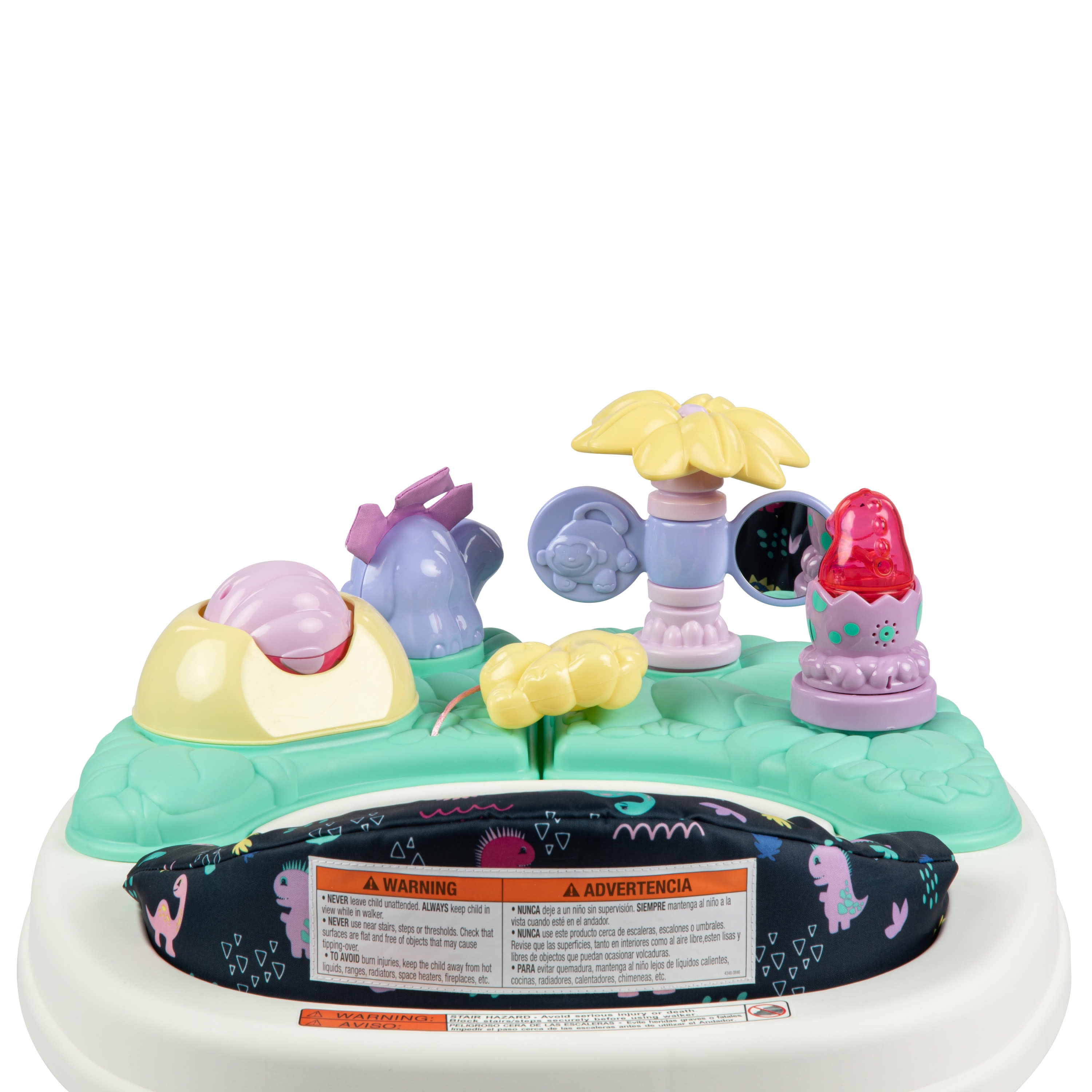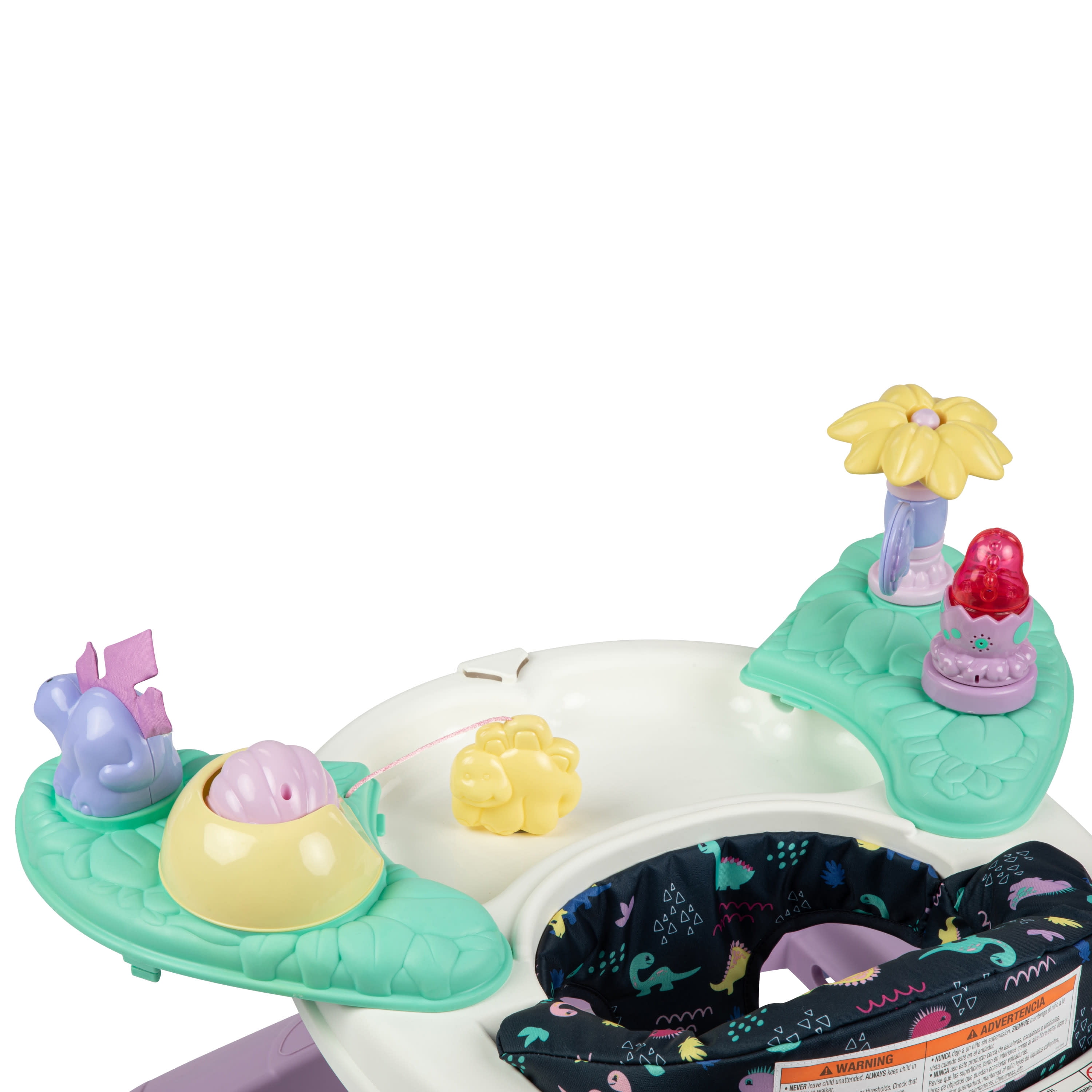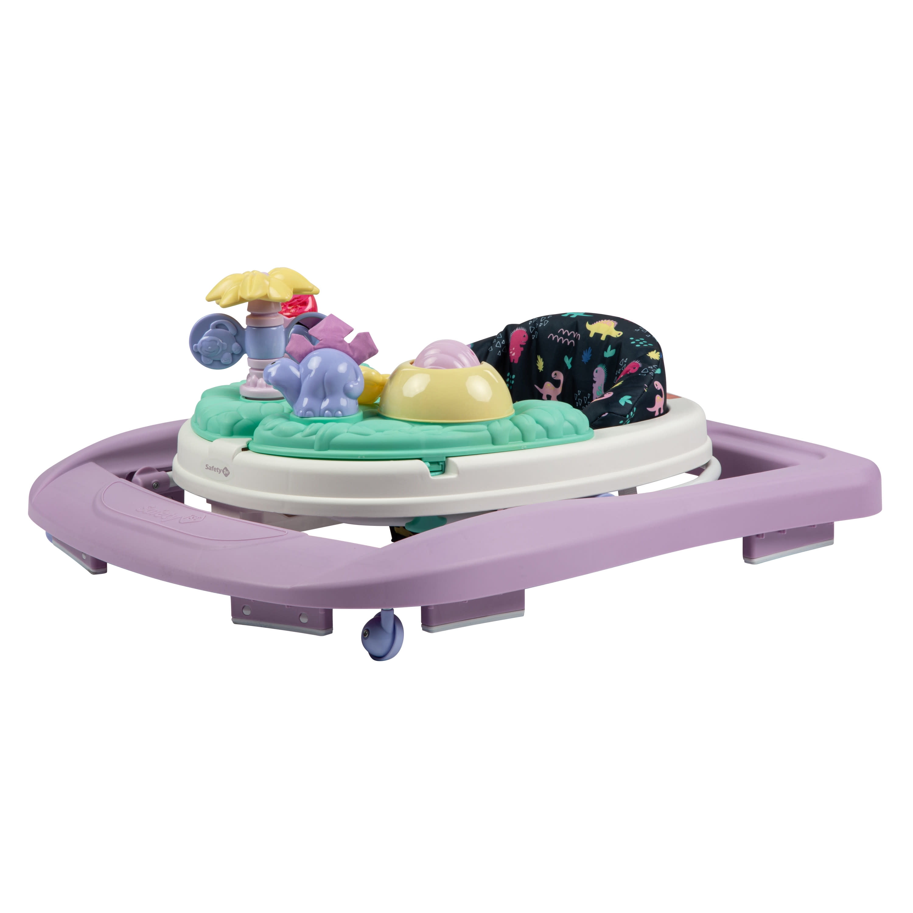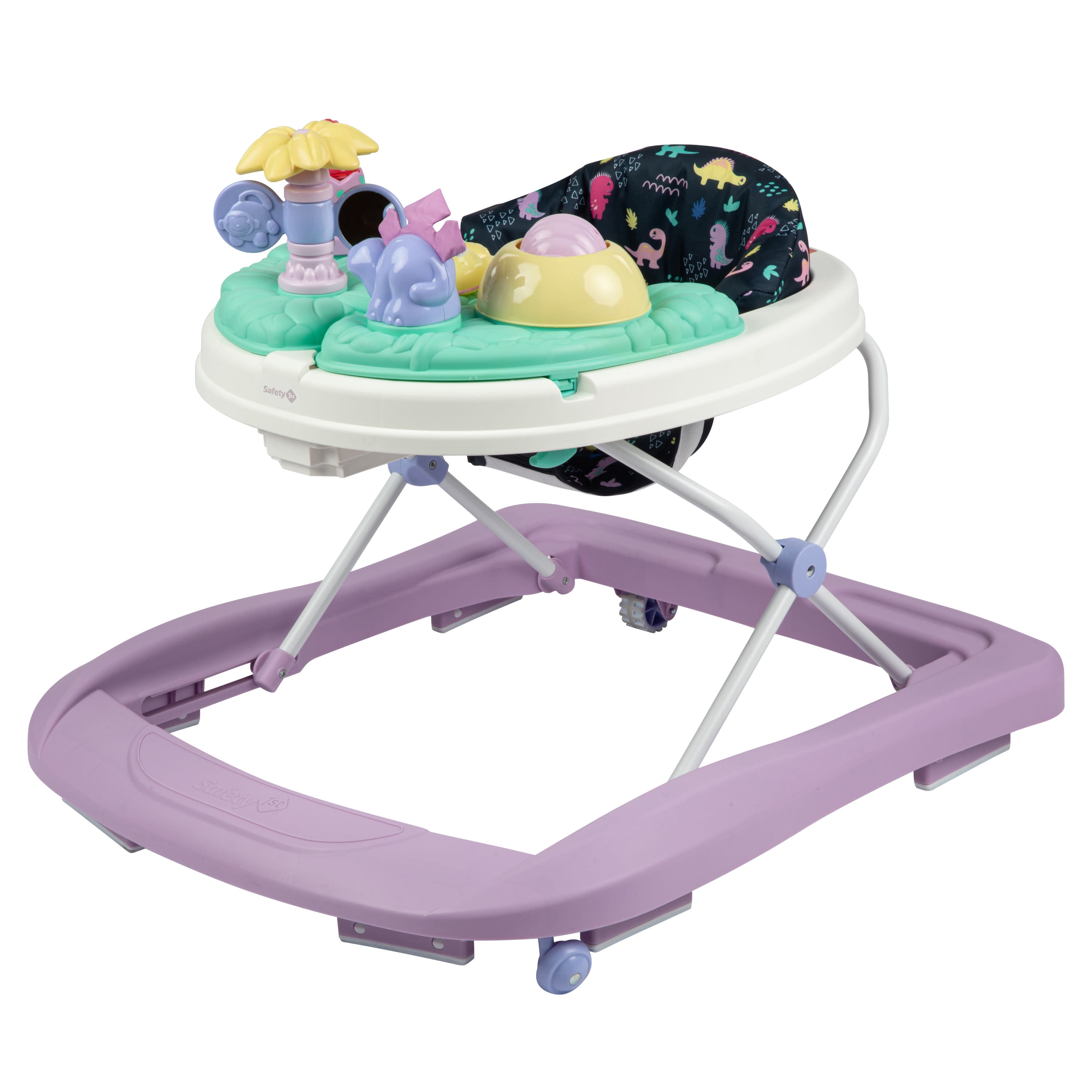 Safety 1ˢᵗ Baby-Saurus Musical Walker, Roar-Ella Variety of activities with 5 toys plus 12 songs and sounds Two swing-open activity trays Compact fold for easy storage and portability Extra-comfy, machine washable seat pad Large snack/play tray 3 heights for the right support as child grows