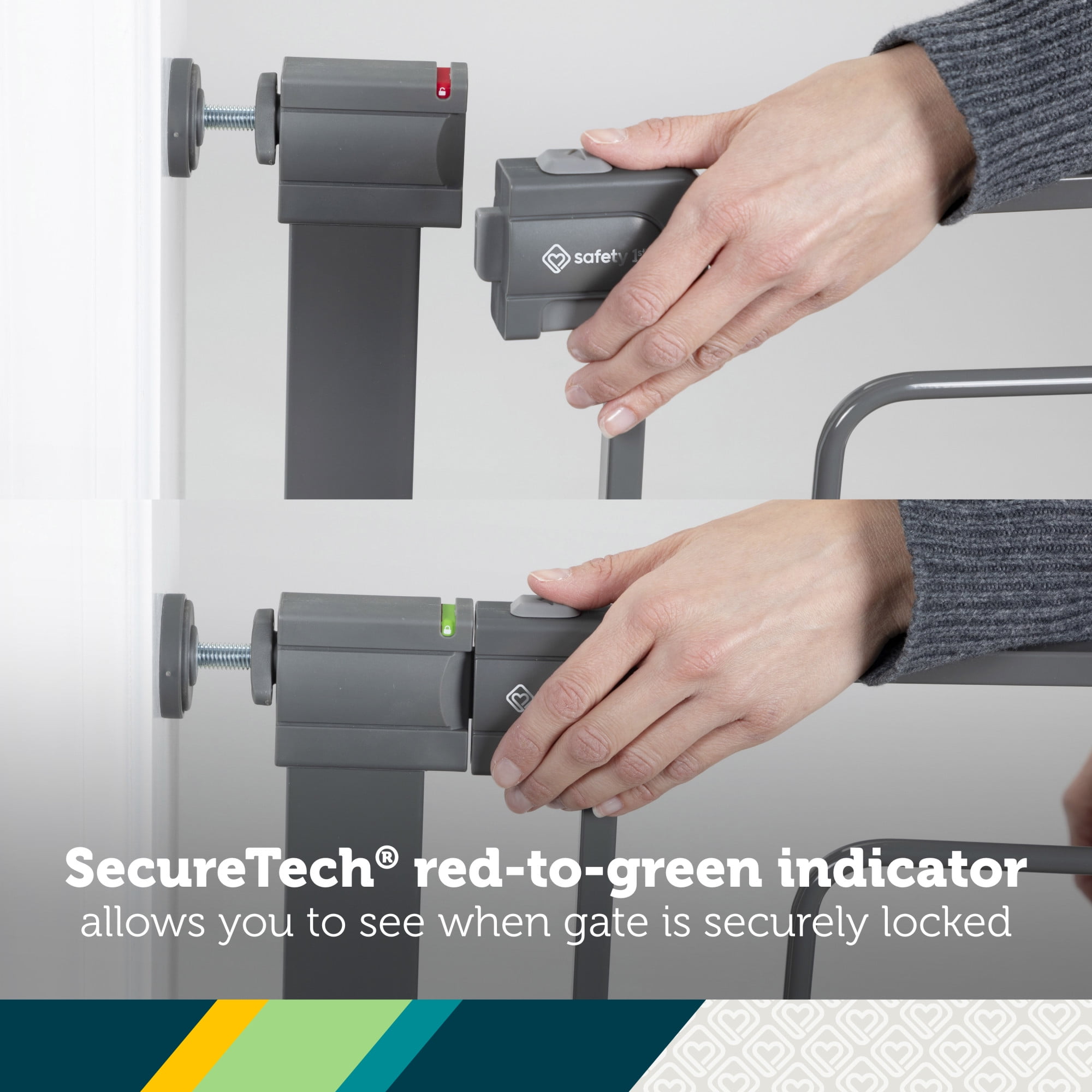 Now that your baby is on the move, the Safety 1st Contemporary Tall-and-Wide Gate makes it easy to create child-friendly spaces within your home. It has a modern finish that blends with your home décor. This gate makes installation quick and easy, using only one screw. The additional width and height fit many different sizes of doorways, hallways, and at the bottom of the stairs. Great for homes with pets as well. The Contemporary Tall-and-Wide Gate features SecureTech®, Safety 1st’s red-to-green indicator on the top rail that allows you to see when your gate is securely locked. When the gate is uninstalled, the frame may appear bent. This is normal. The frame is constructed in this manner to provide pressure to remain in place when installed properly. Safety 1st believes parenting should have fewer worries and more joyful moments. As the first and only leader in child safety, Safety 1st is here to give you peace of mind so you can spend less time worrying and more time enjoying every first you experience with your child.