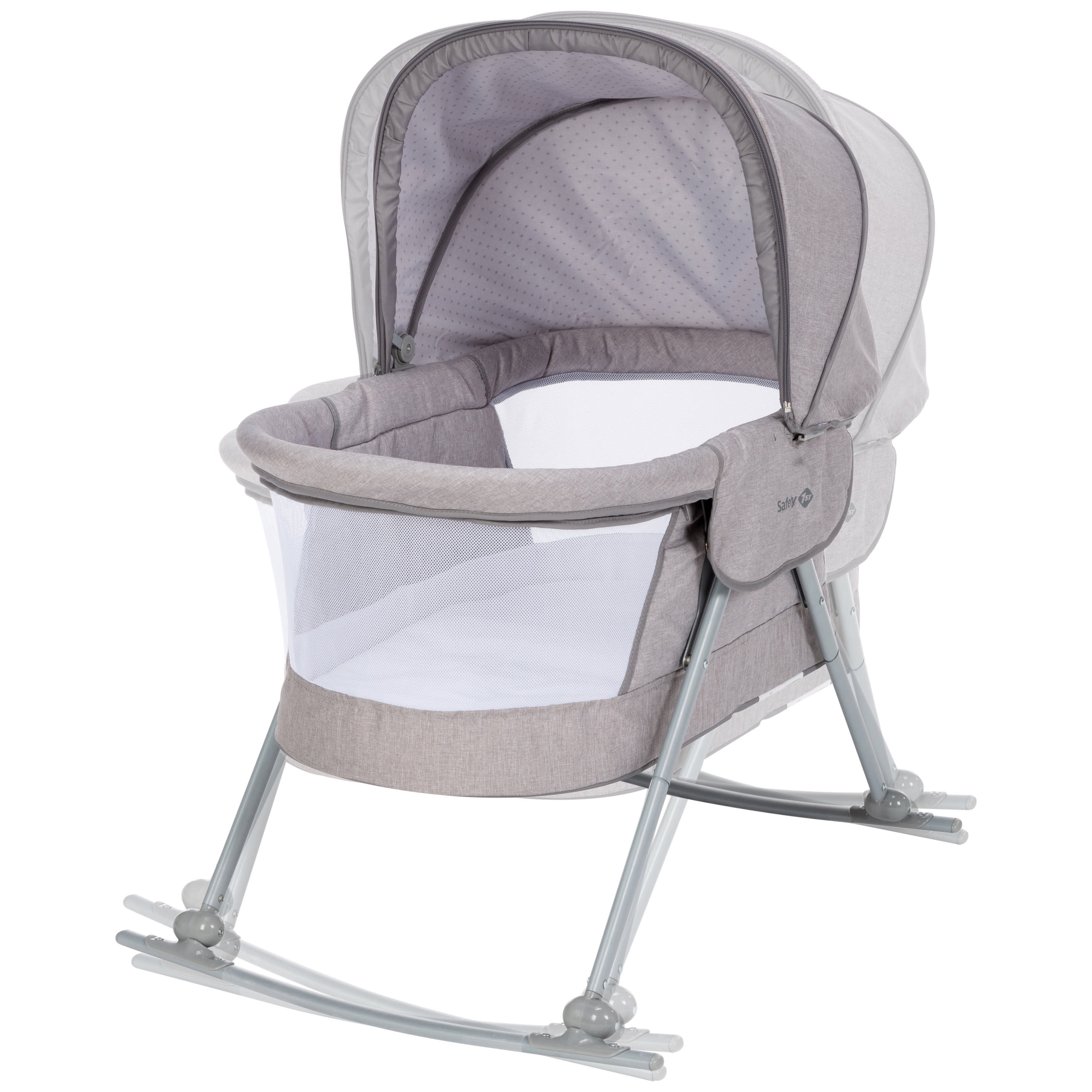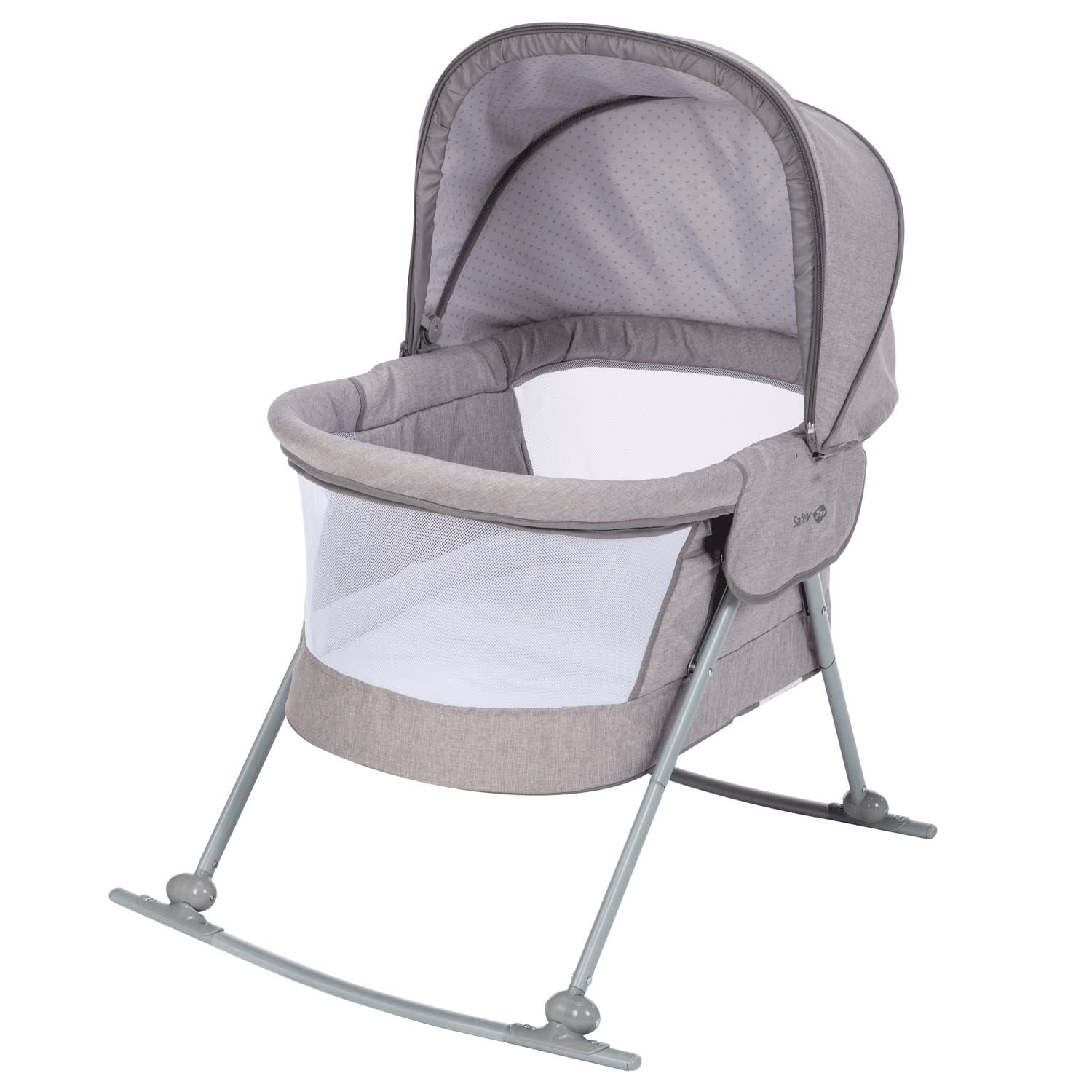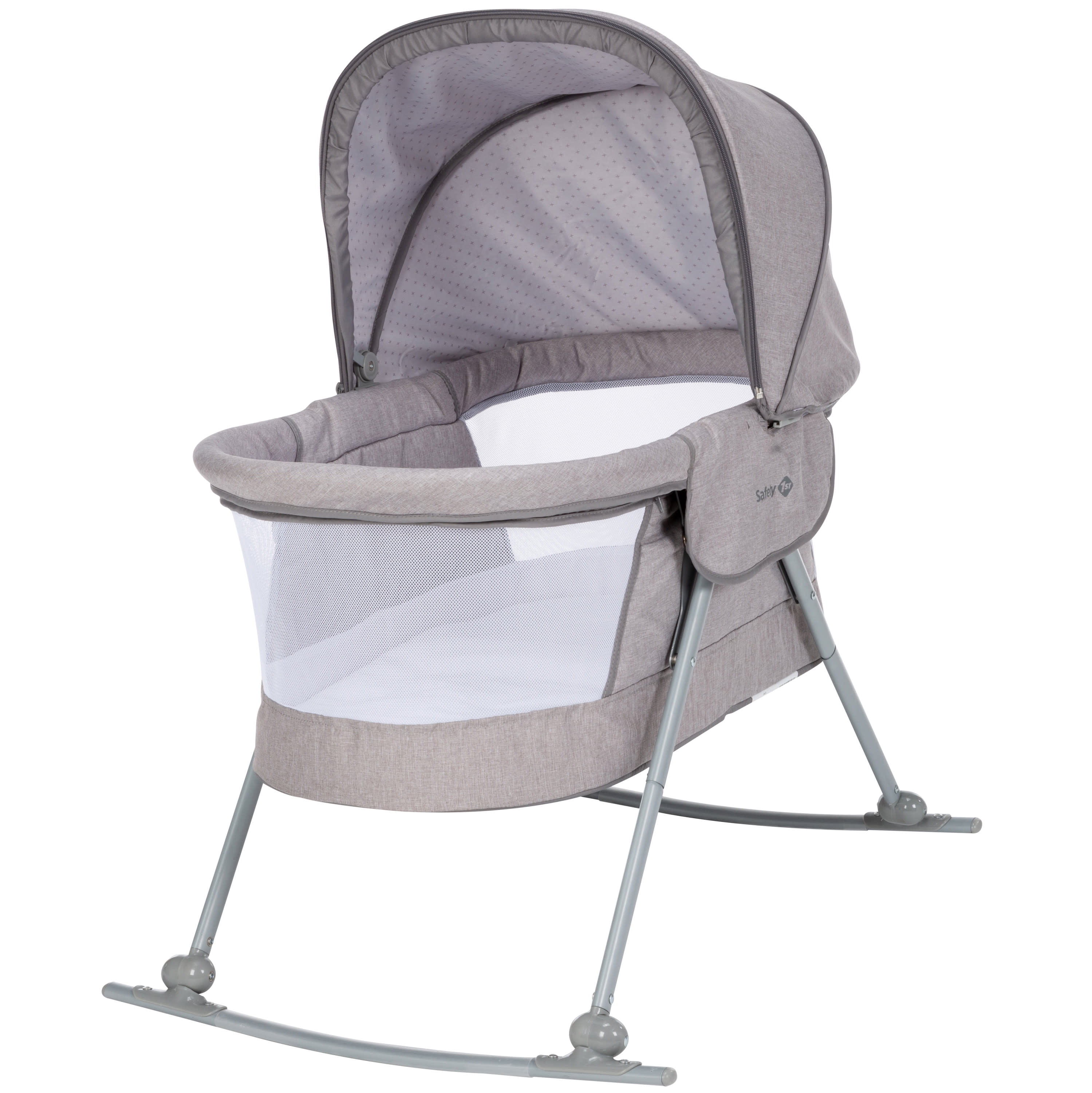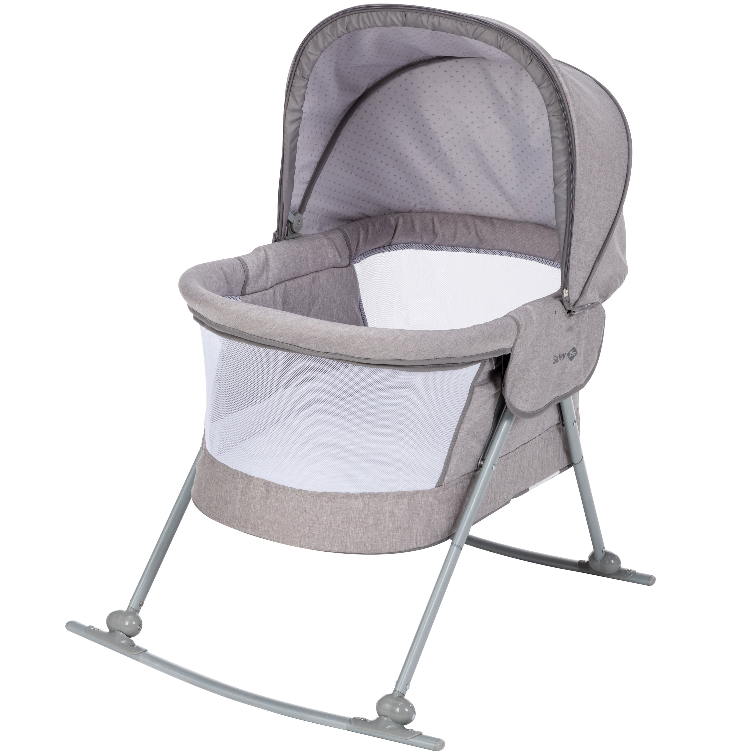 Safety 1ˢᵗ Nap and Go Rocking Baby Bassinet, Star Gazer Designed for sleep and JPMA certified Portable rocking bassinet is perfect for day trips or weekend travels Lays flat and rocks side to side to gently lull baby to sleep Retractable canopy for sunshade can be removed completely Bug net rolls up and stores in a zippered pocket on the canopy Folds compactly for both travel and storage Carry bag included for traveling Mesh sides provide breathability and allow for easy monitoring of baby For children from birth to 20 lbs. Color Category: Gray Designed with a firm, flat sleeping surface that meets the Consumer Product Safety Commission’s recommendations for safe sleep