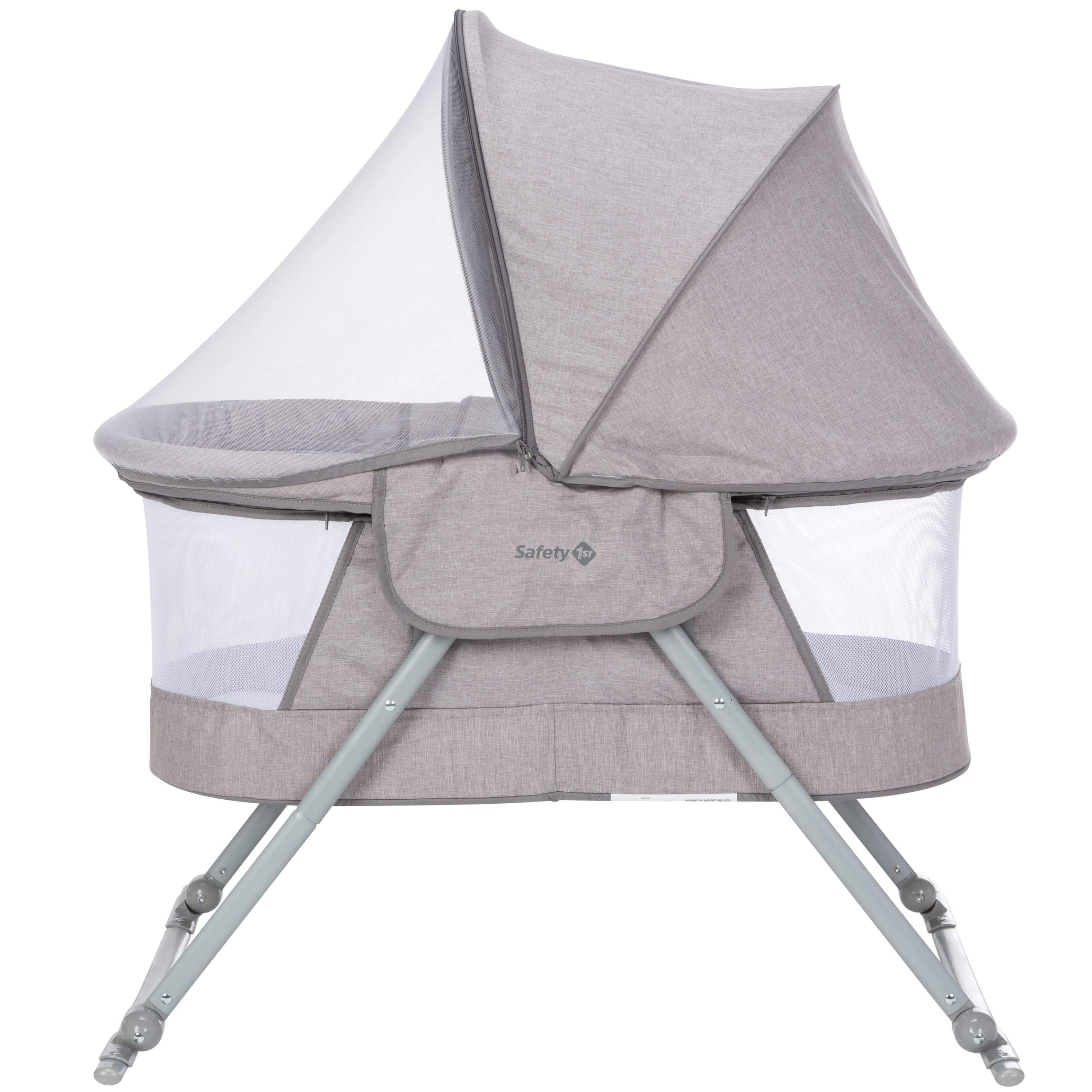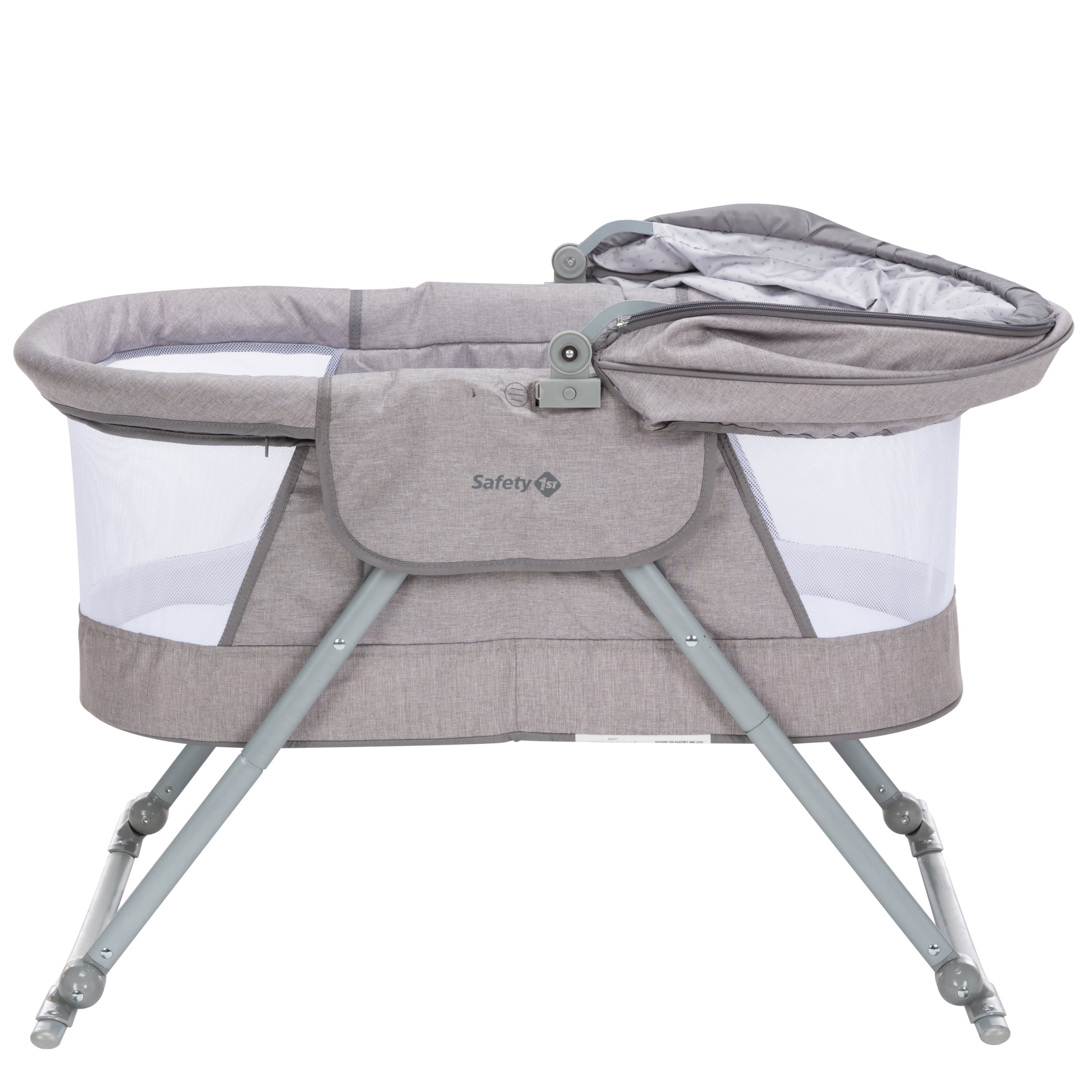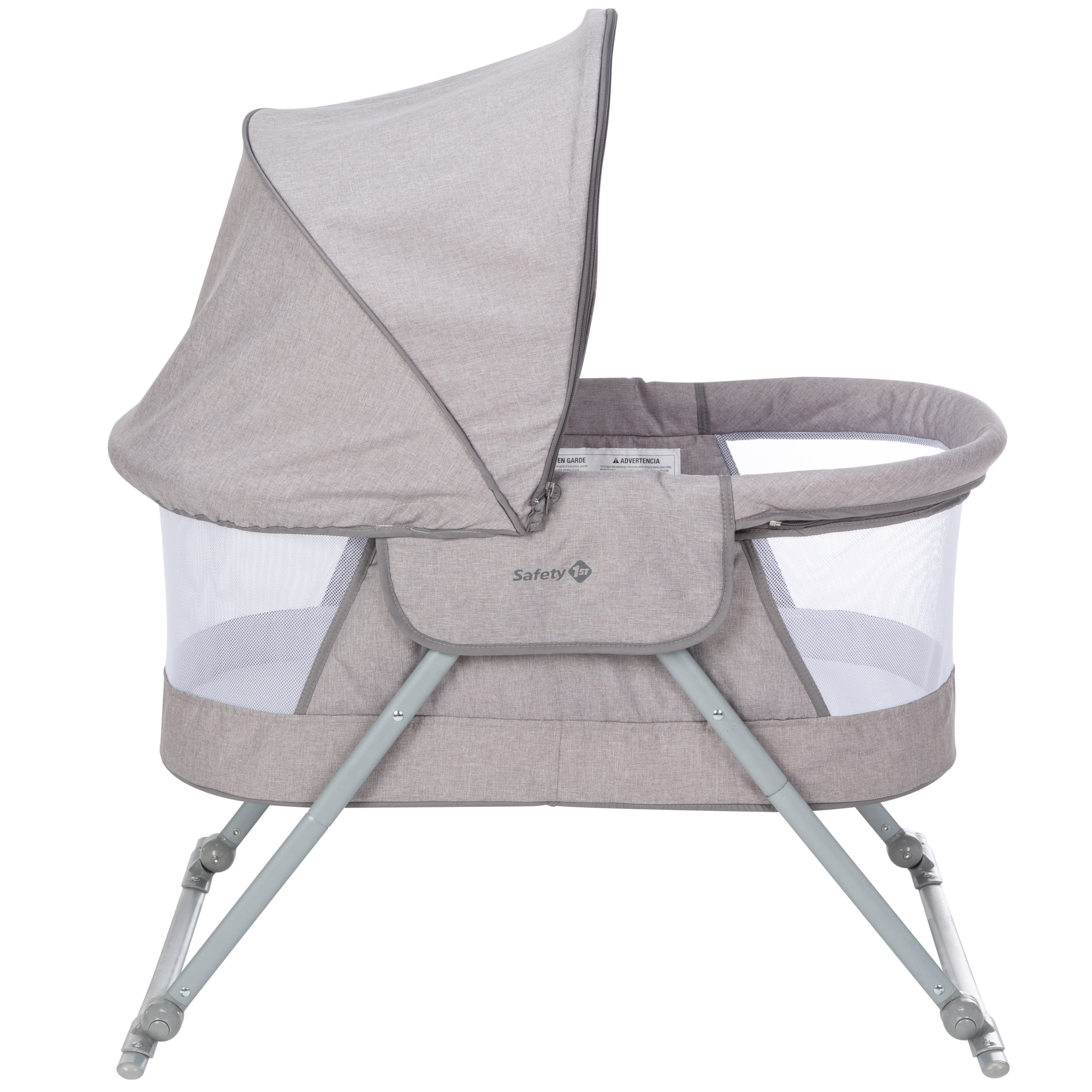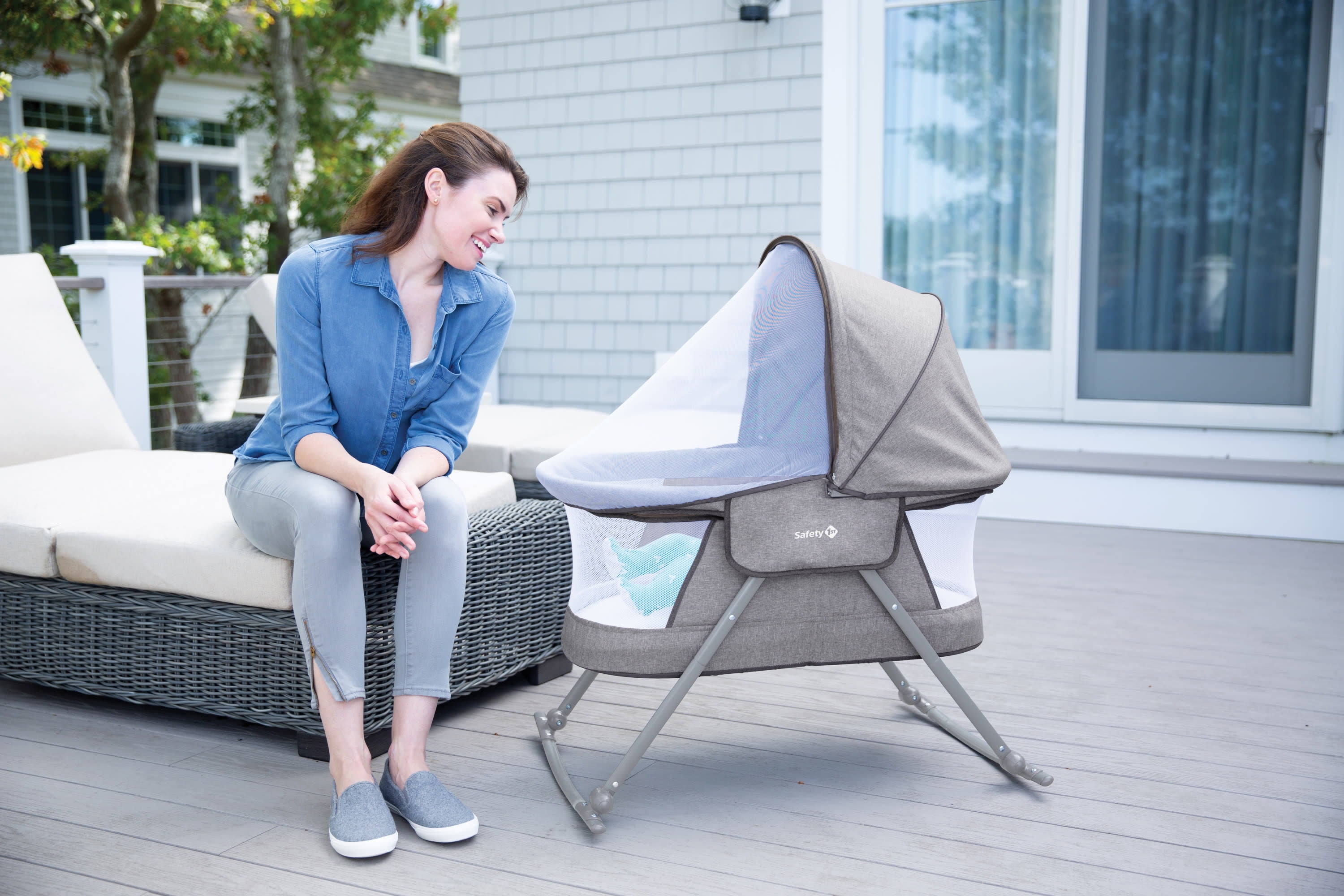 Safety 1ˢᵗ Nap and Go Rocking Baby Bassinet, Star Gazer Designed for sleep and JPMA certified Portable rocking bassinet is perfect for day trips or weekend travels Lays flat and rocks side to side to gently lull baby to sleep Retractable canopy for sunshade can be removed completely Bug net rolls up and stores in a zippered pocket on the canopy Folds compactly for both travel and storage Carry bag included for traveling Mesh sides provide breathability and allow for easy monitoring of baby For children from birth to 20 lbs. Color Category: Gray Designed with a firm, flat sleeping surface that meets the Consumer Product Safety Commission’s recommendations for safe sleep