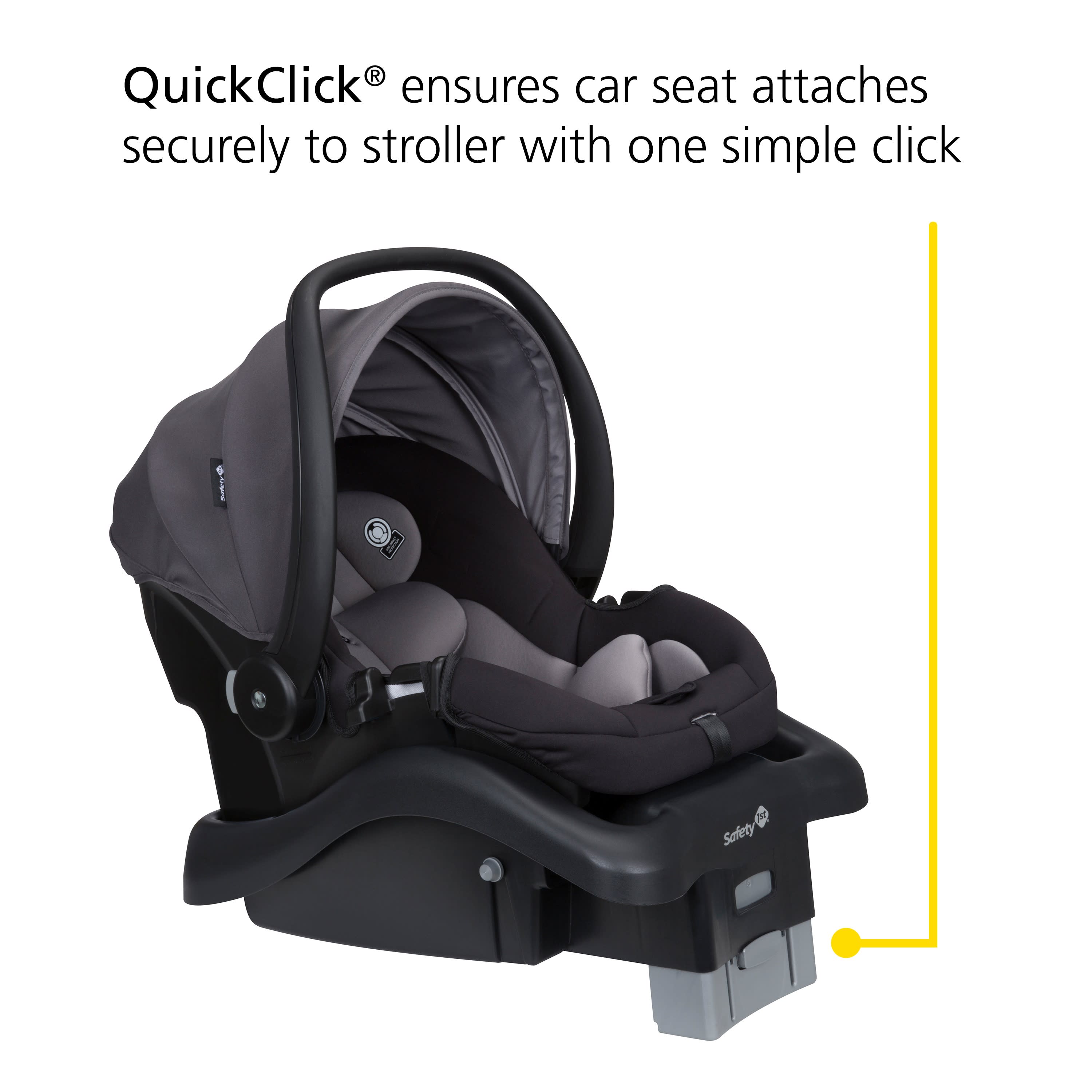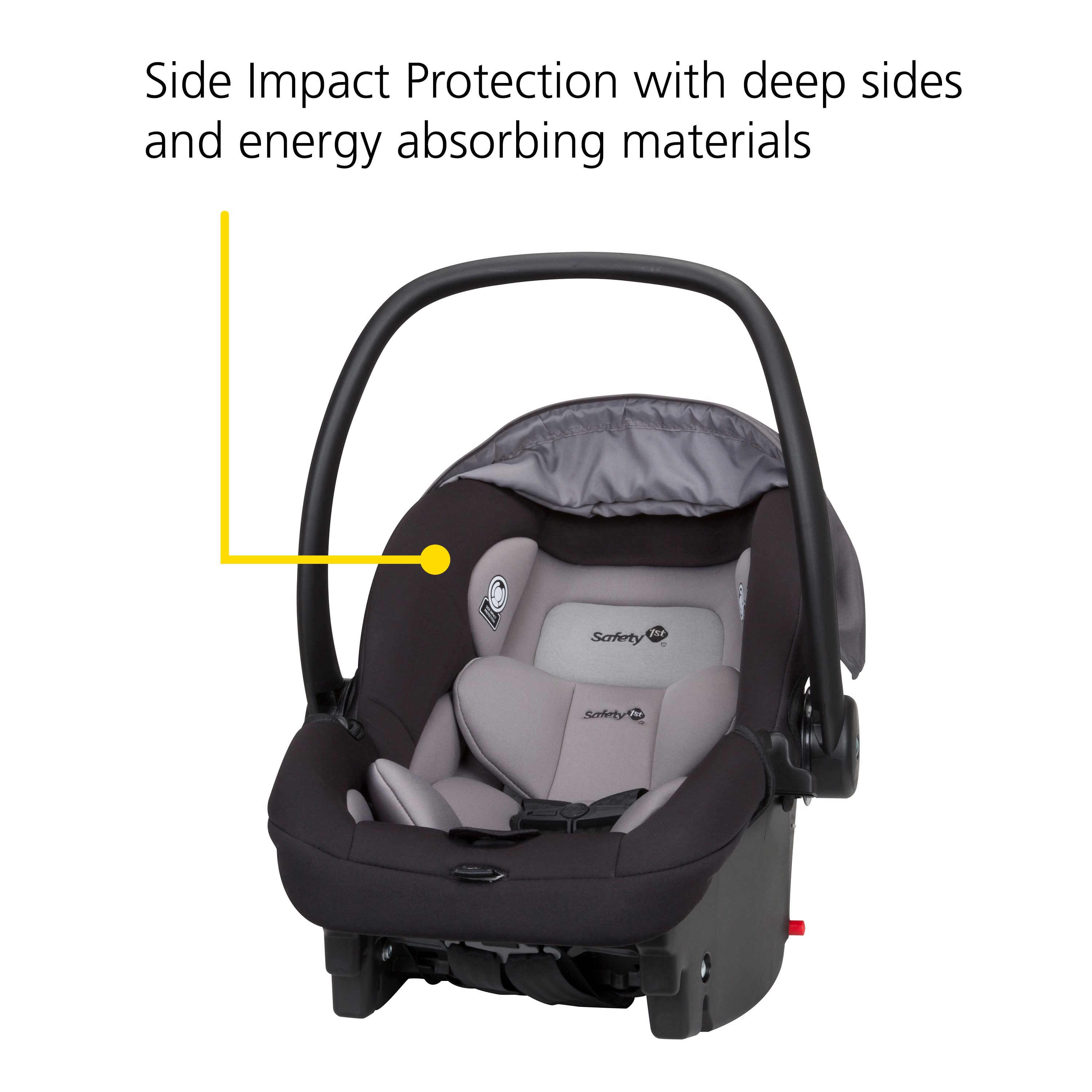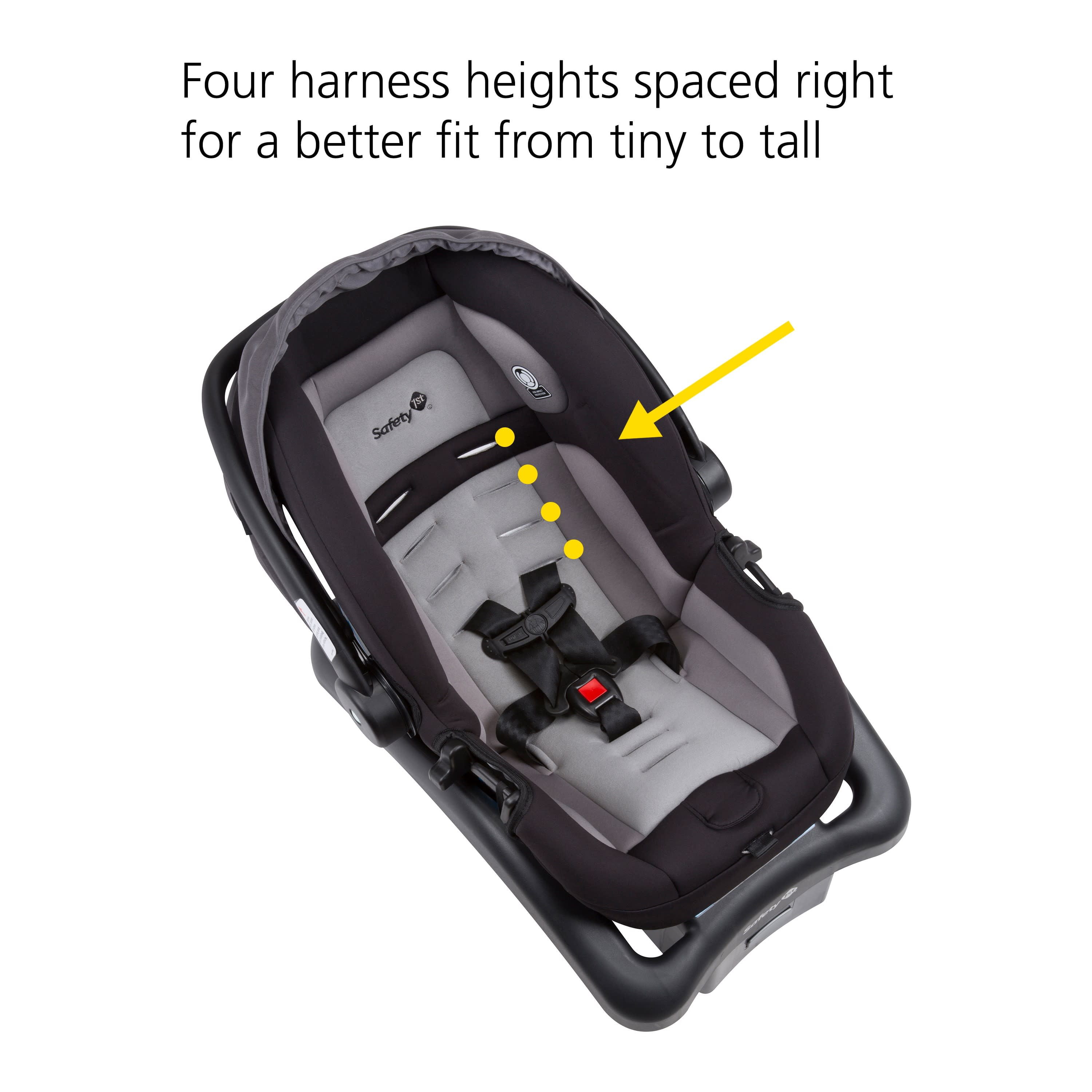 Provide your baby with a superior fit for superior safety while traveling with the onBoard™ LT infant car seat. The 4 harness heights are spaced right to give your child a better fit all the way from 4-30 lbs. (32″ or less). The buckle adjusts in two ways so that you can customize not only the length, but also the buckle’s position on your child. Smaller babies get the extra support they need with head and body inserts that can be removed as they grow. The seat has also been designed for a better reclined body position to give your baby a safer ride. The seat is also designed to be easier for parents to use. It’s a lightweight infant car seat that can accommodate a baby up to 30 lbs., making it much easier to carry. The harness adjusts easily from the front of the seat with a simple pull for a secure fit for your child, and the base height adjusts for the right fit to your car. The car seat is compatible with all strollers that feature QuickClick. This allows you to securely attach the infant car seat to your stroller with one simple click, making it easy to use the car seat and a stroller together as a travel system. Getting the seat clean is simple too, thanks to a seat pad that is both machine washable and dryer safe. With the onBoard™ LT infant car seat, travel is safer and more comfortable. Safety 1st believes parenting should have fewer worries and more joyful moments. As the first and only leader in child safety, Safety 1st is here to give you peace of mind so you can spend less time worrying and more time enjoying every first you experience with your child.