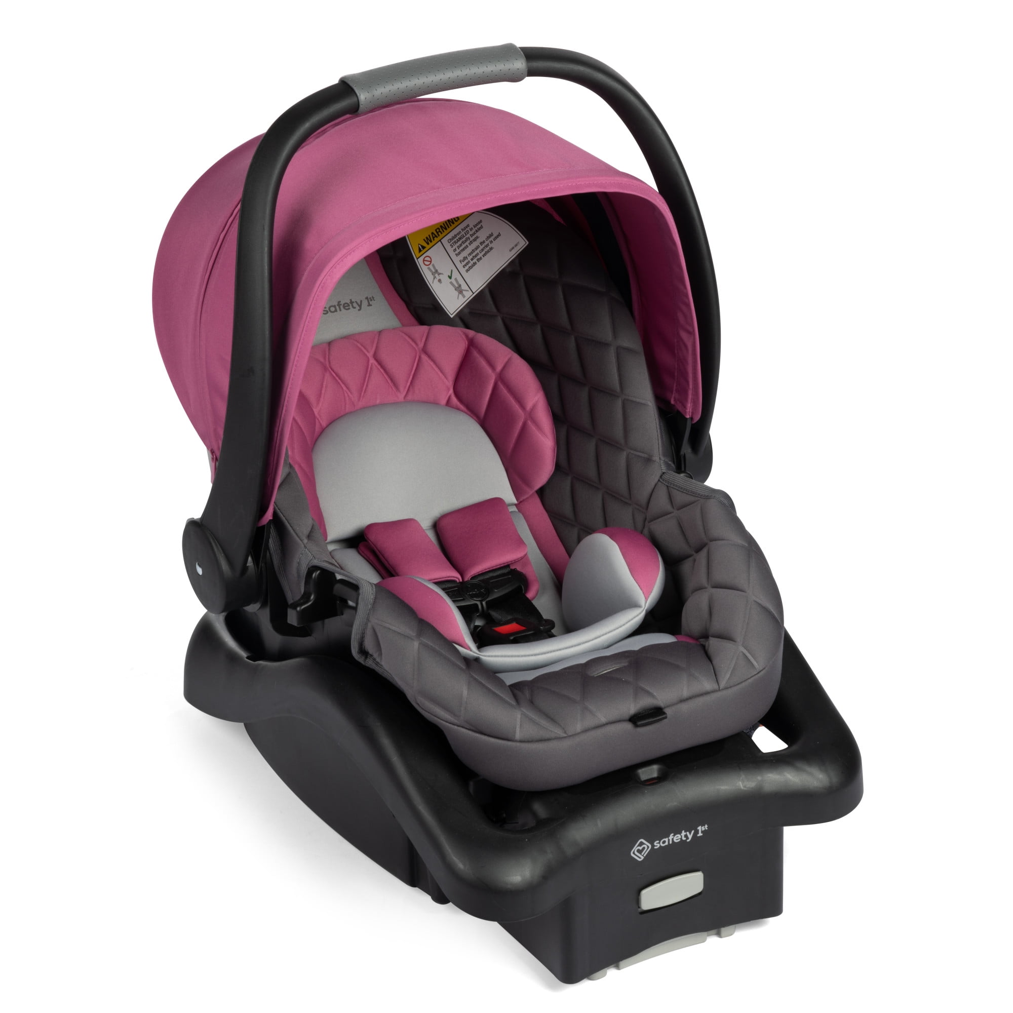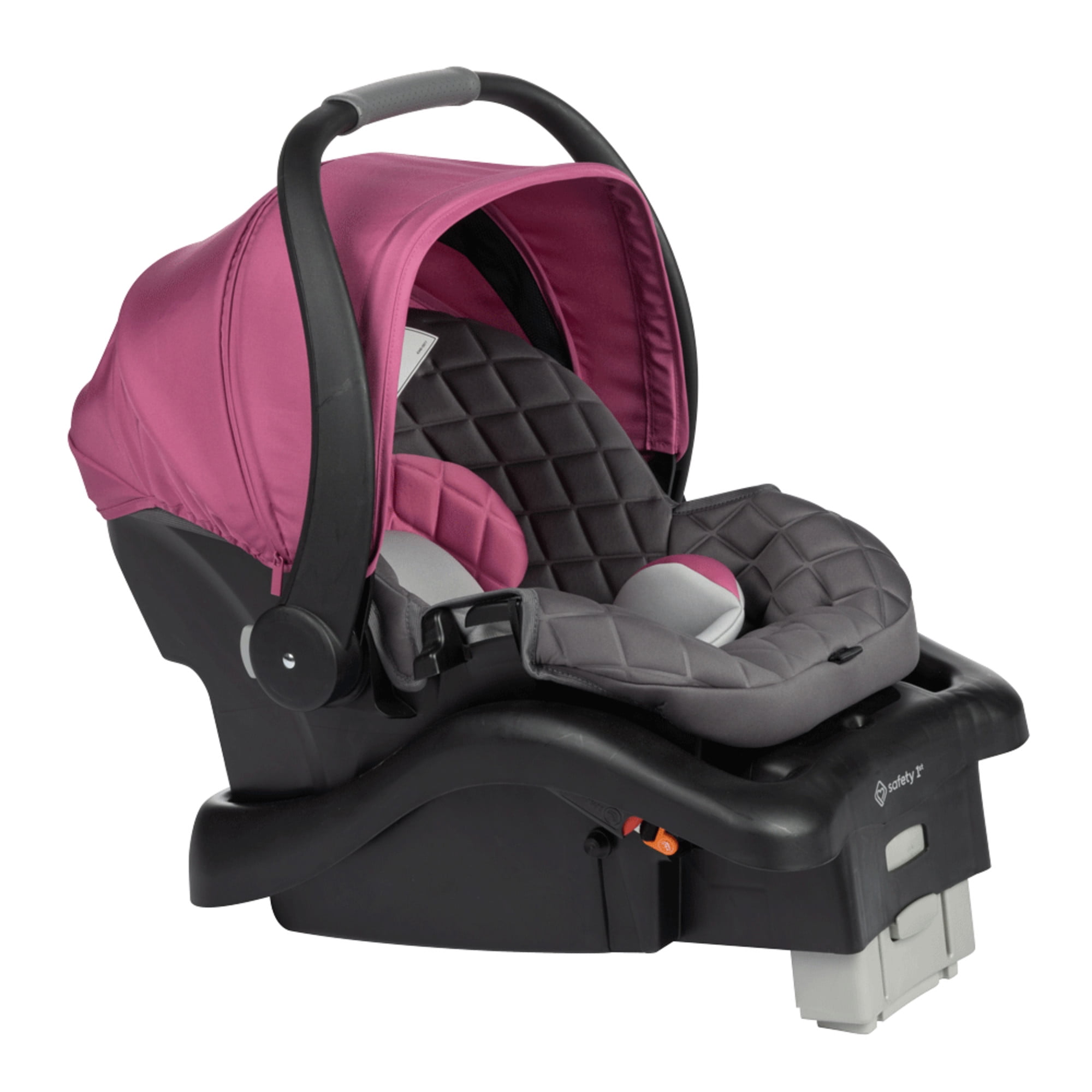 Provide your baby with a safe and comfortable ride with the Safety 1st onBoard™ Insta-Latch™ DLX Car Seat. The best part of the car seat base is how quick and easy it is to install with the Safety 1st onBoardTM Insta-LatchTM connectors. The SecureTech™ red-to-green indicators on the seat’s base allow you to see when your base is secured from the LATCH or vehicle belt. To give you the confidence of knowing that the base is correctly installed, the tab turns from red to green. Since every car is different, you can also adjust the base height for the right fit to your car. The 4 harness heights are designed to give your child a better fit from 4–30 lbs. (and less than 32″). The harness adjusts easily from the front of the seat with a simple pull to securely fit your child. The buckle adjusts in two ways so that you can customize the length and the buckle’s position on your child. Your baby will be nice and comfortable relaxing in the soft fabrics and plush padding. On sunny days, the zippered mesh extension on the canopy offers additional shade, and lets you peek in on your little one without retracting the canopy. Smaller babies get the extra support they need with head and body inserts that can be removed as they grow. Safety 1st believes parenting should have fewer worries and more joyful moments. As the first and only leader in child safety, Safety 1st is here to give you peace of mind so you can spend less time worrying and more time enjoying every first you experience with your child.