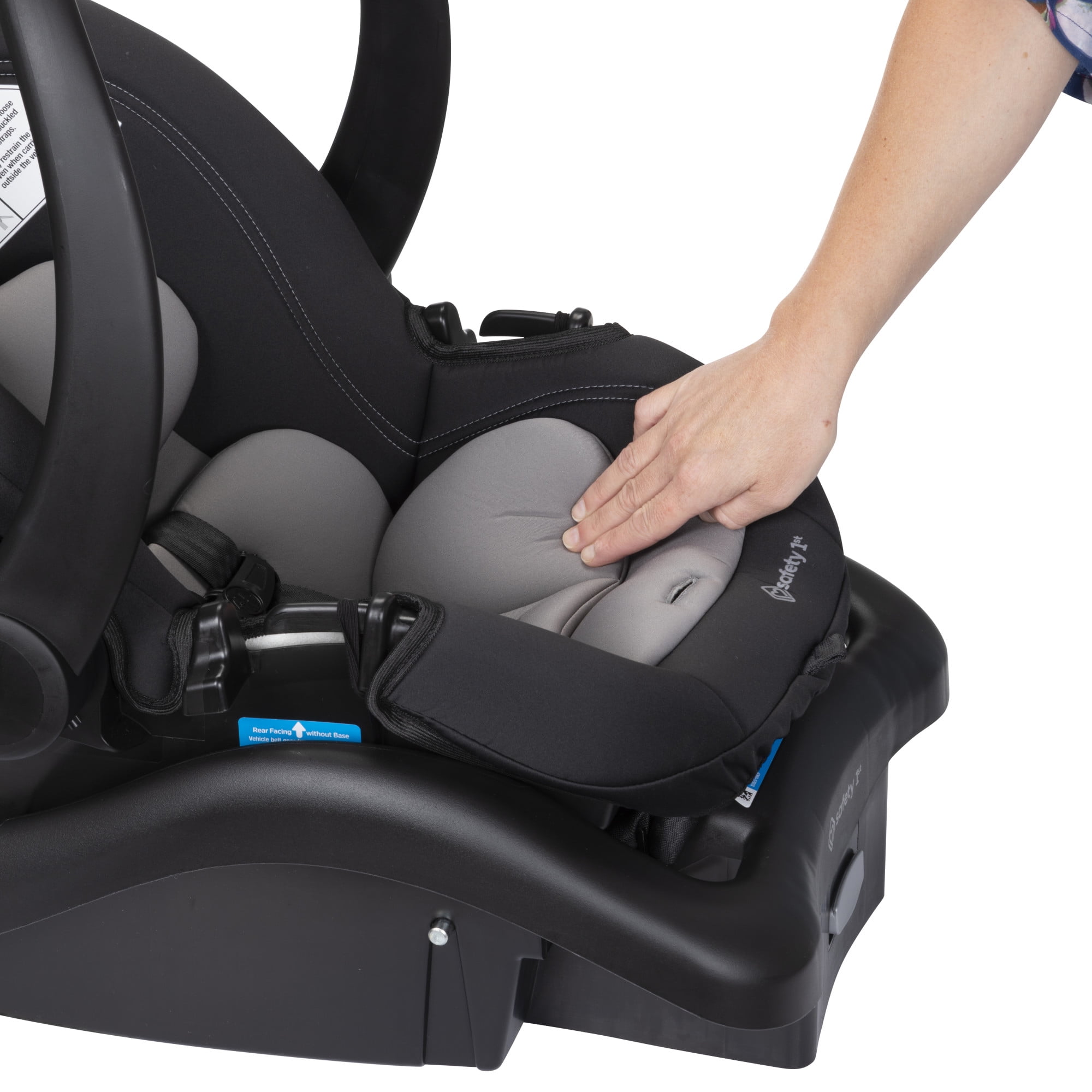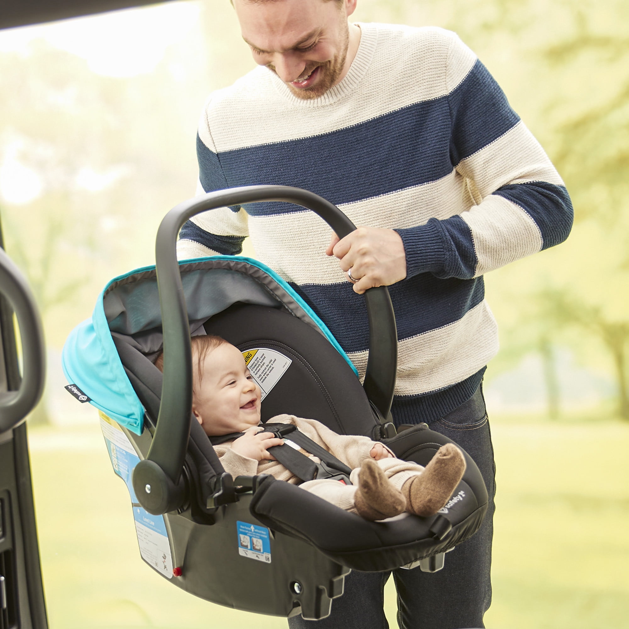Give baby a comfortable, secure fit with the ultra-lightweight onBoard™ FLX Infant Car Seat. Weighing less than 8 lbs., this seat is so easy to carry. The 4 harness heights are spaced just right to give your child a better fit from 4–30 lbs. and up to 32″. The buckle adjusts two ways so that you can customize not only the length, but also the buckle’s position on your child. Smaller babies get the extra support they need with head and body inserts that can be removed as they grow. The seat is also designed with a reclined body position for a more secure ride. The harness adjusts easily from the front of the seat with one simple pull, and the base height adjusts for the right fit in your car. The car seat is compatible with all Safety 1st strollers that feature QuickClick™, which allows you to attach the infant car seat to your stroller with one simple click, making it easy to use the car seat and a stroller together as a travel system. Safety 1st believes parenting should have fewer worries and more joyful moments. As the first and only leader in child safety, Safety 1st is here to give you peace of mind so you can spend less time worrying and more time enjoying every first you experience with your child.