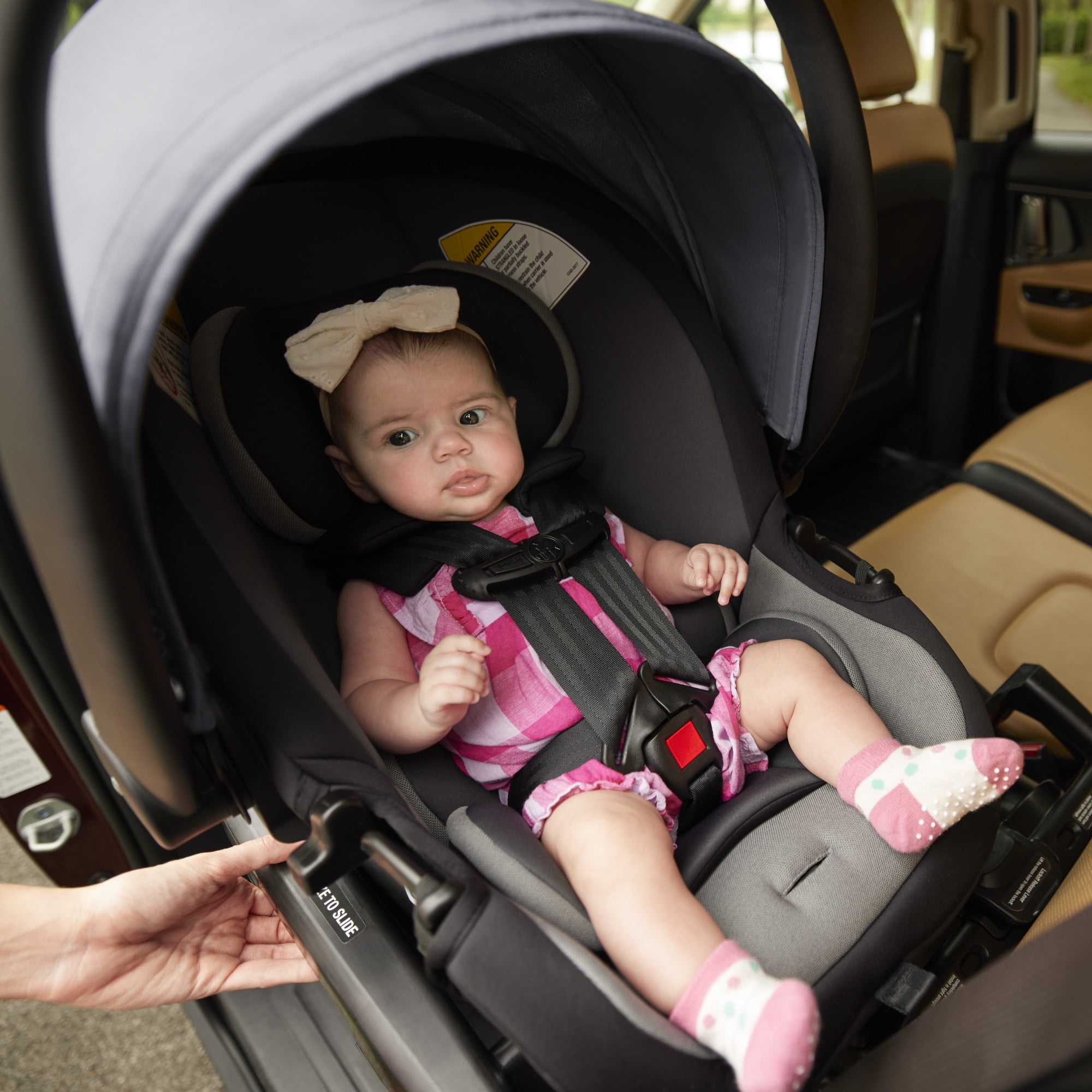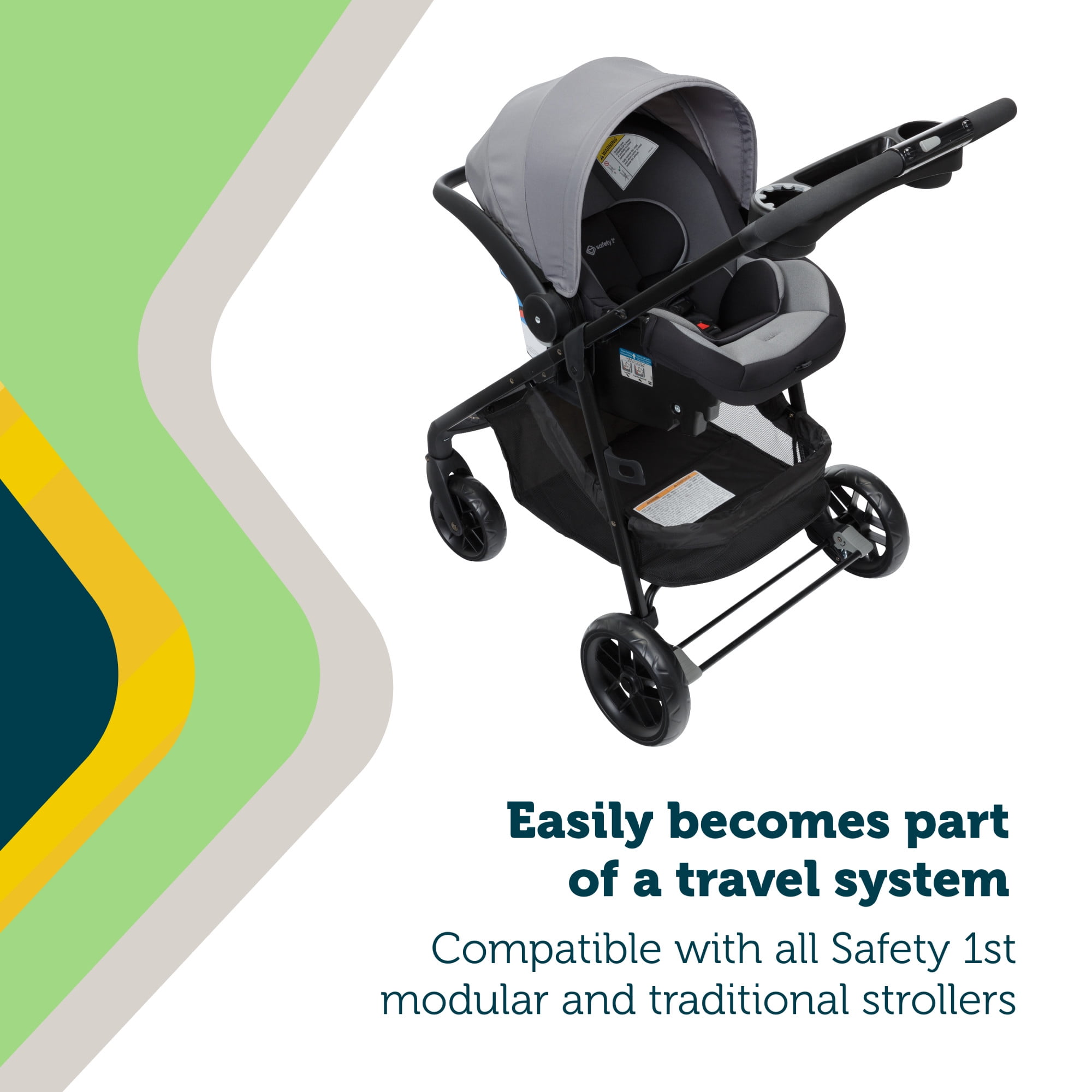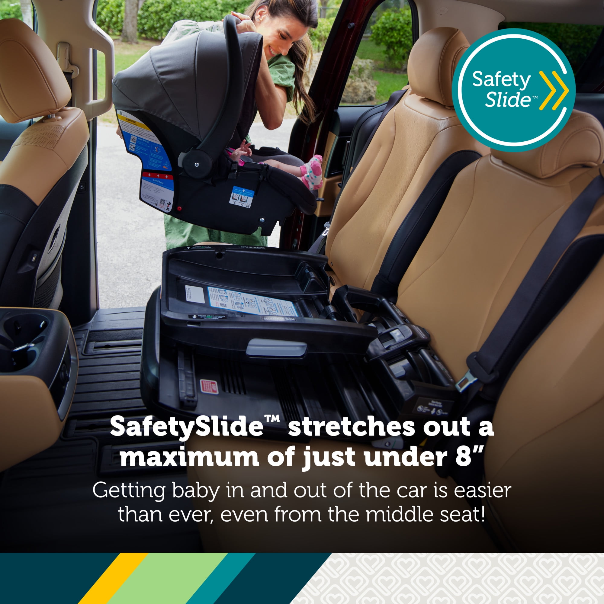 Features SafetySlide™ technology—the innovative design of the car seat’s base eases back strain and eliminates head bumps, making it easy to get baby in and out of the car—simply slide, lift, and go SafetySlide™ stretches out a maximum of just under 8″ on either side of your car, even from the middle seat (distance varies depending on the width of the vehicle’s back seat) The SecureTech™ red-to-green indicators on the seat’s base allow you to see when your base is locked in place when using the SafetySlide™ feature Enjoy quick, easy installation every time without having to tighten the connectors manually—you can easily attach the base to the vehicle seat in just seconds with the rigid LATCH connectors Quick, easy installation every time without having to tighten the connectors manually—easily attach and tighten the base to the vehicle seat with the rigid LATCH connectors SecureTech™ technology red-to-green visual indicators show when your seat belt has tension Built-in vehicle belt lock-off arm helps you get a secure fit during installation when using the vehicle belt instead of the rigid LATCH Ultra-lightweight design at just under 8 lbs. Fits children from 4–30 lbs. and less than 32″ Meets federal Side Impact standard Rigorously crash and side-impact tested to meet safety standards Machine-washable and dryer-safe seat pad Adjustable base for the right fit in your car LATCH equipped and airplane ready Compatible with all Safety 1st modular and traditional strollers to easily become part of a travel system