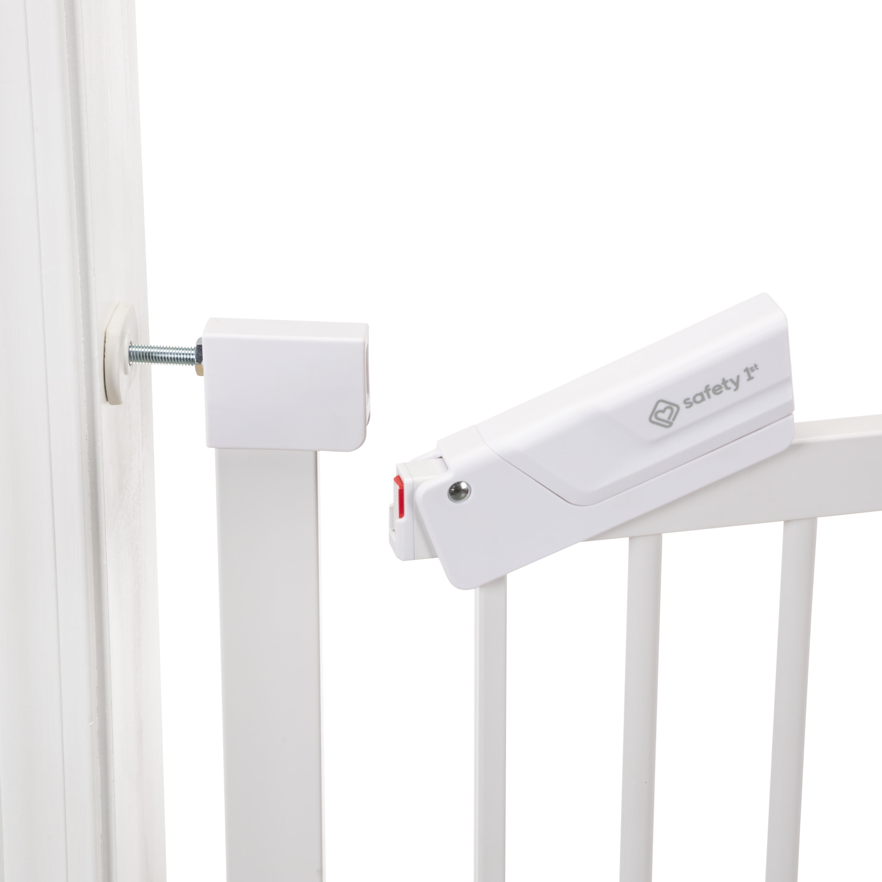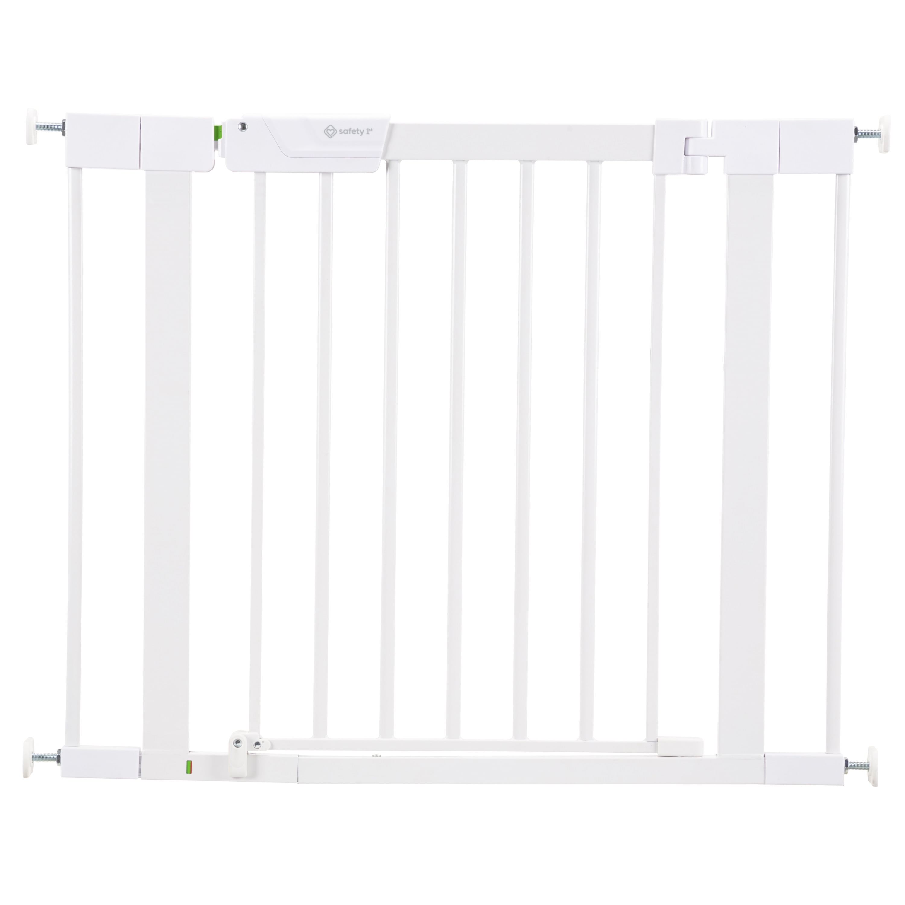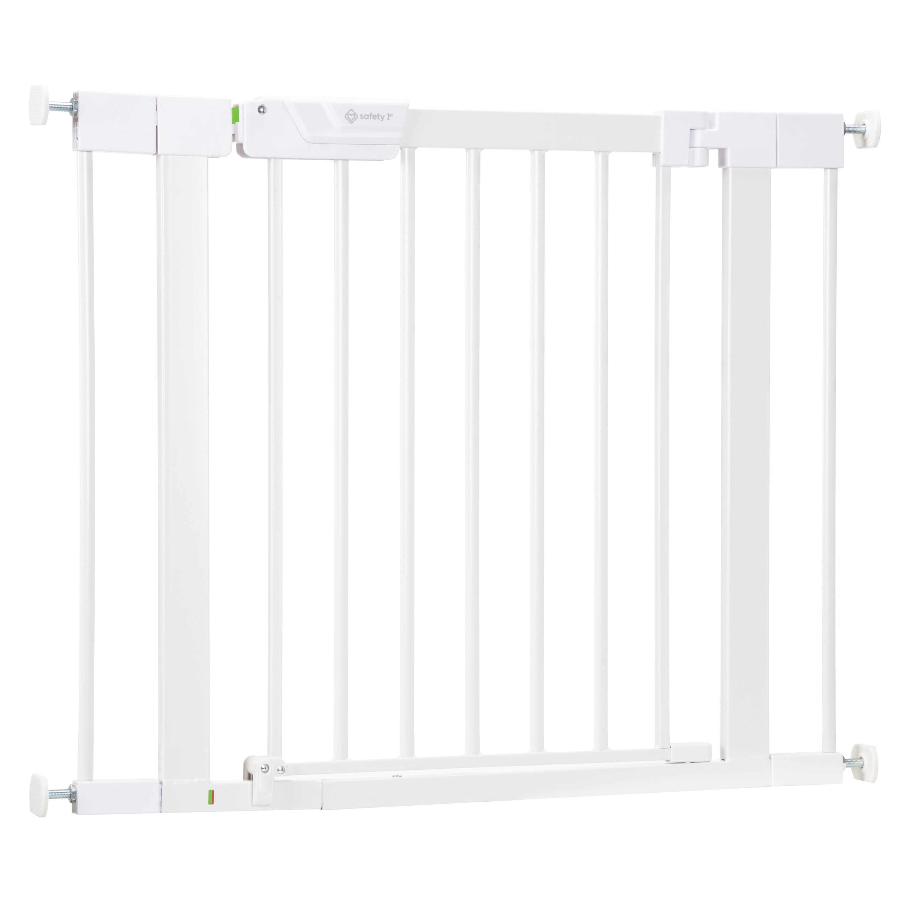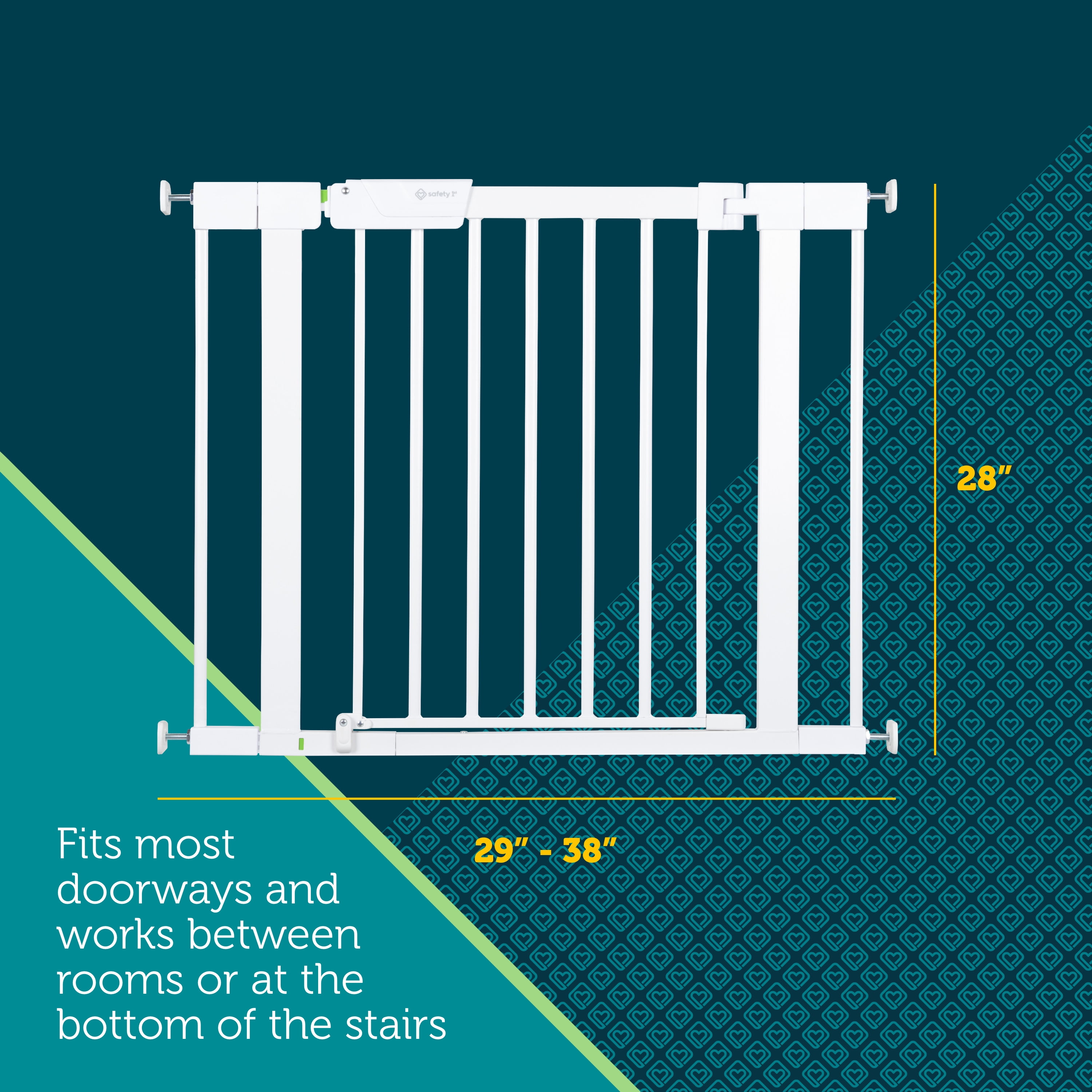 Safety 1st Pressure-Check Gate with SecureTech, White Visual red-to-green SecureTech™ indicators let you know if the gate is correctly latched and properly pressurized The innovative design eliminates the need for added hardware or drilling into the wall. Gate handle easily lifts and unlocks with one hand Fits most doorways and works between rooms or at the bottom of the stairs TO PREVENT FALLS, NEVER use pressure-installed gates at the top of stairs 28″ high and 29″–38″ wide JPMA certified and meets CPSC requirements Perfect for children 6–24 months and great for pets, too
